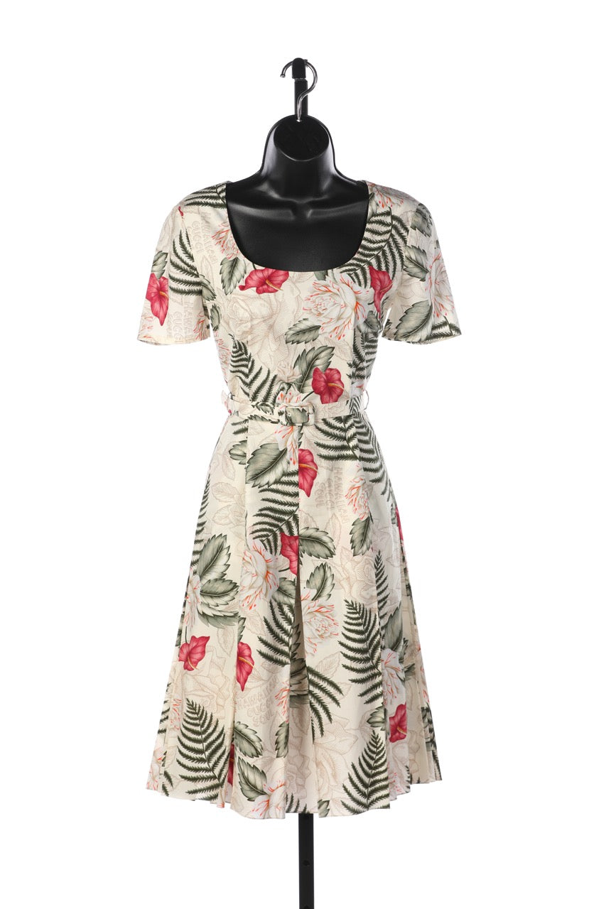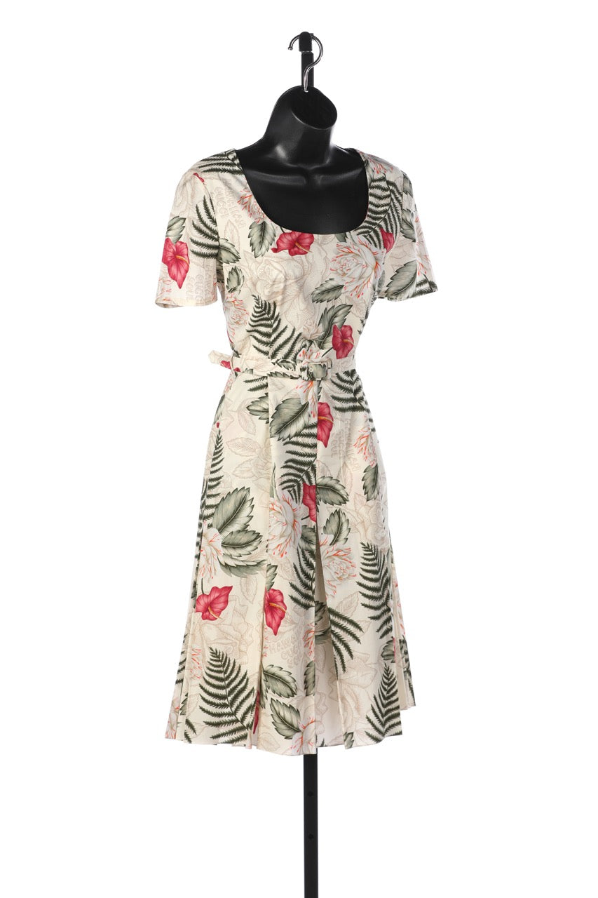 Gucci White w Red & Green Floral Short Sleeve Square-Neck "Hawaiian Dream Dress" NWT