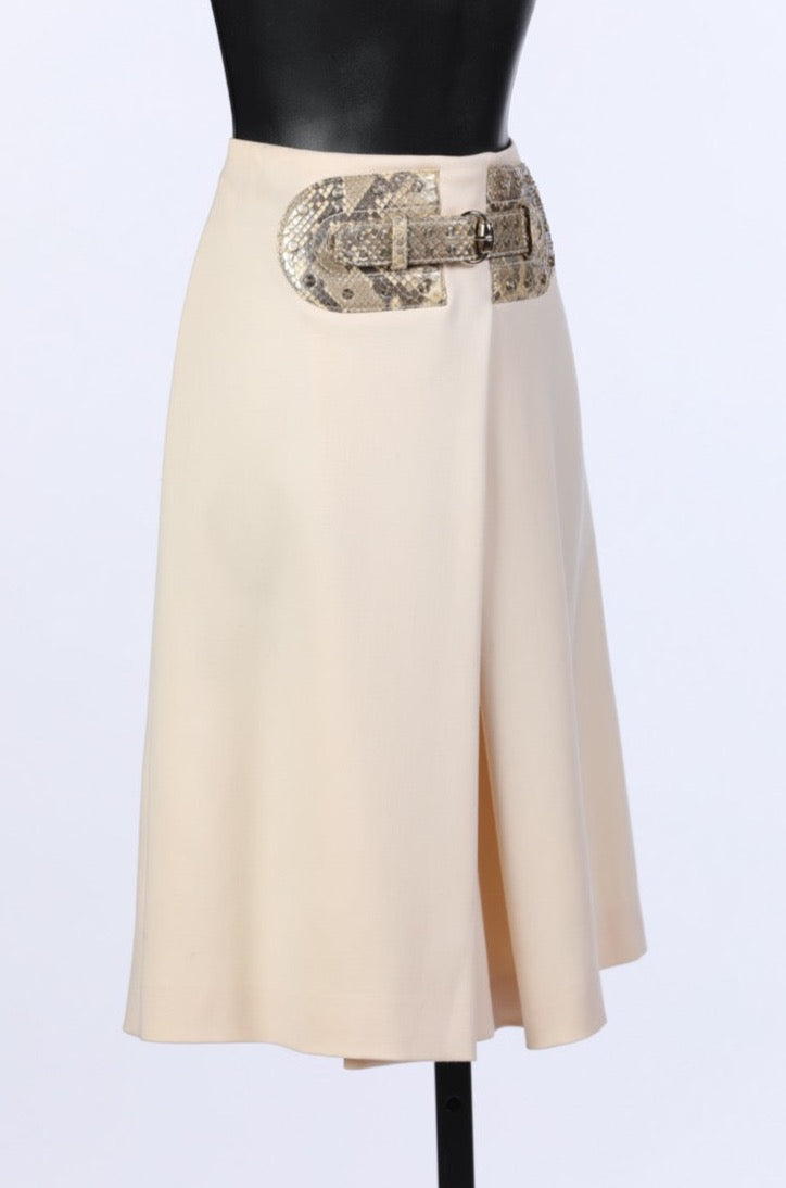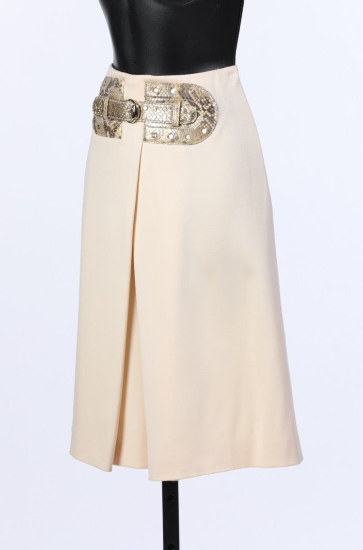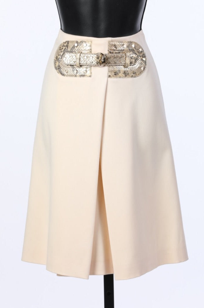 Gucci Cream Knee-Length Skirt With Snakeskin Front Buckle