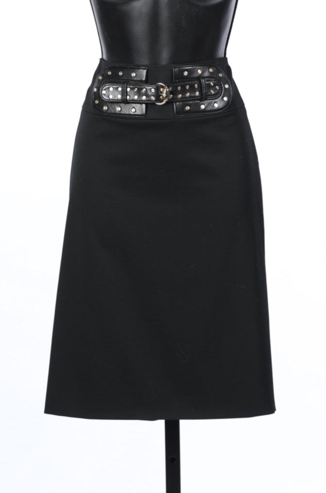 Gucci Black Knee-Length Front Buckle Skirt w Studs
