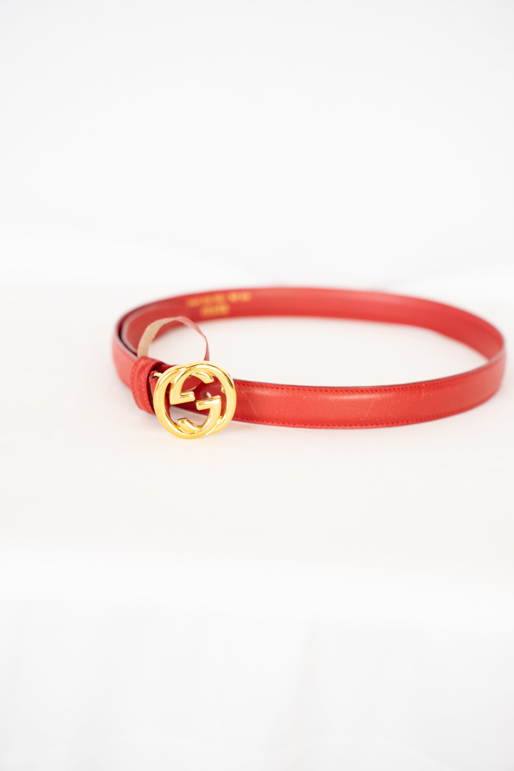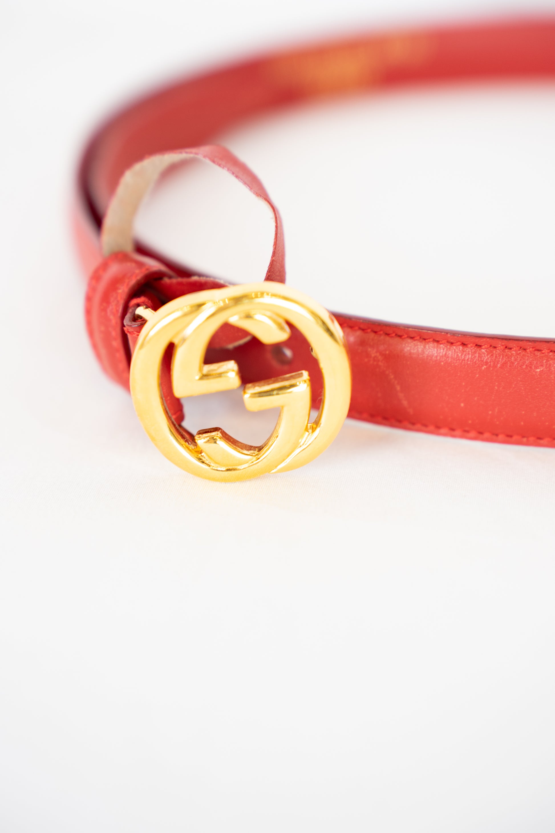 Gucci Leather Red Belt w/ Gold GG Buckle