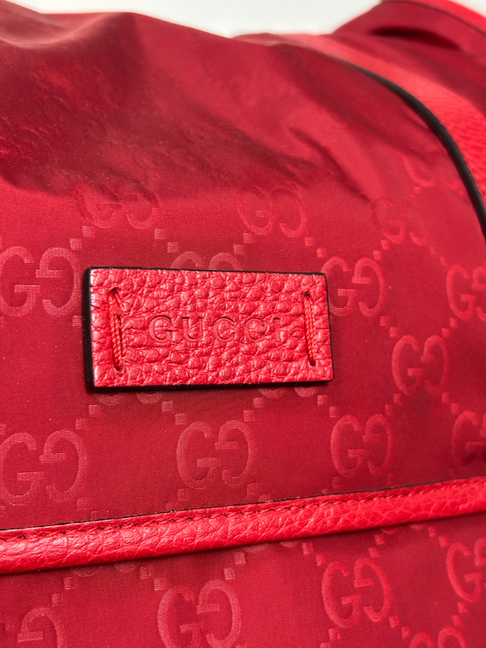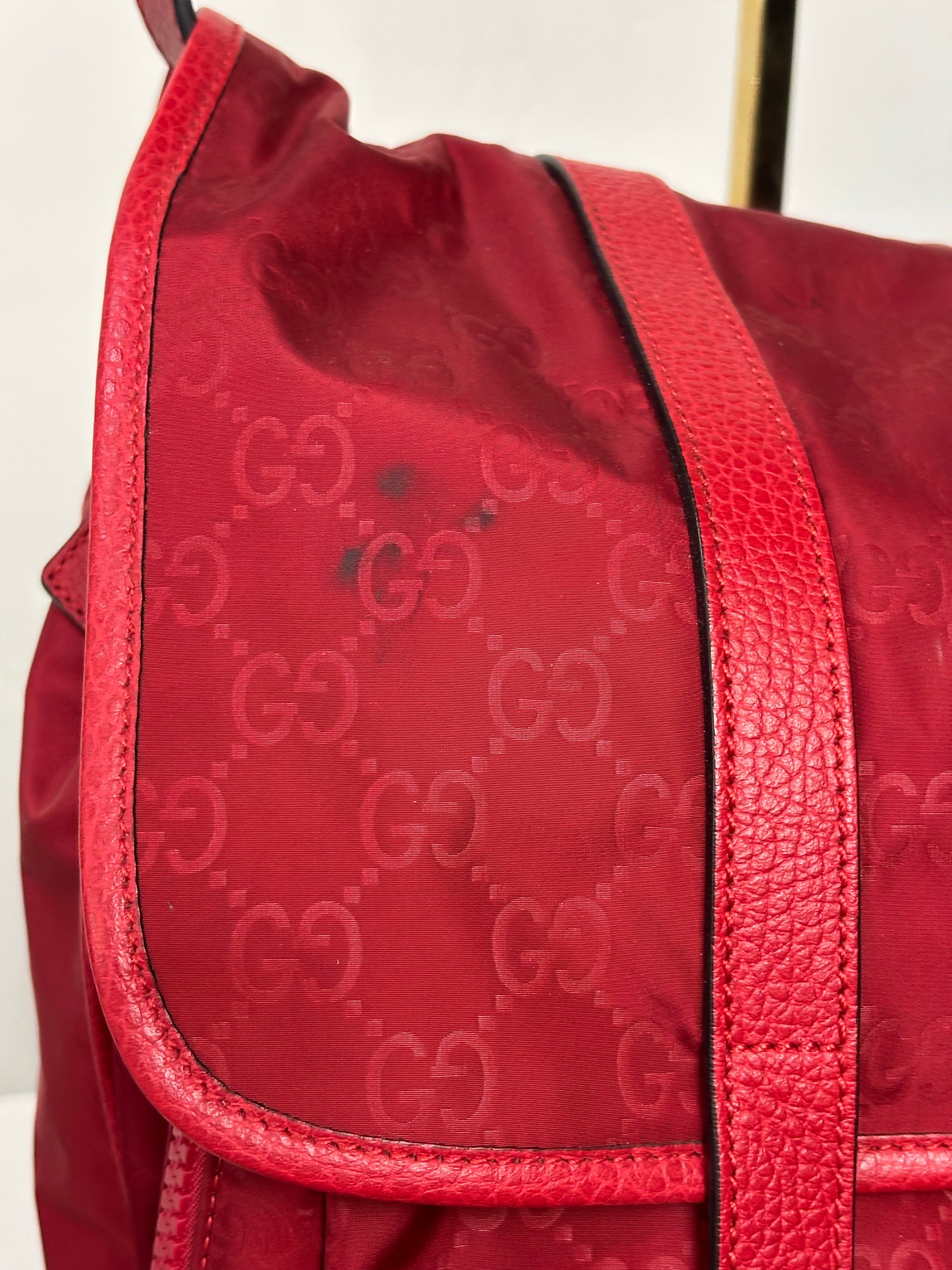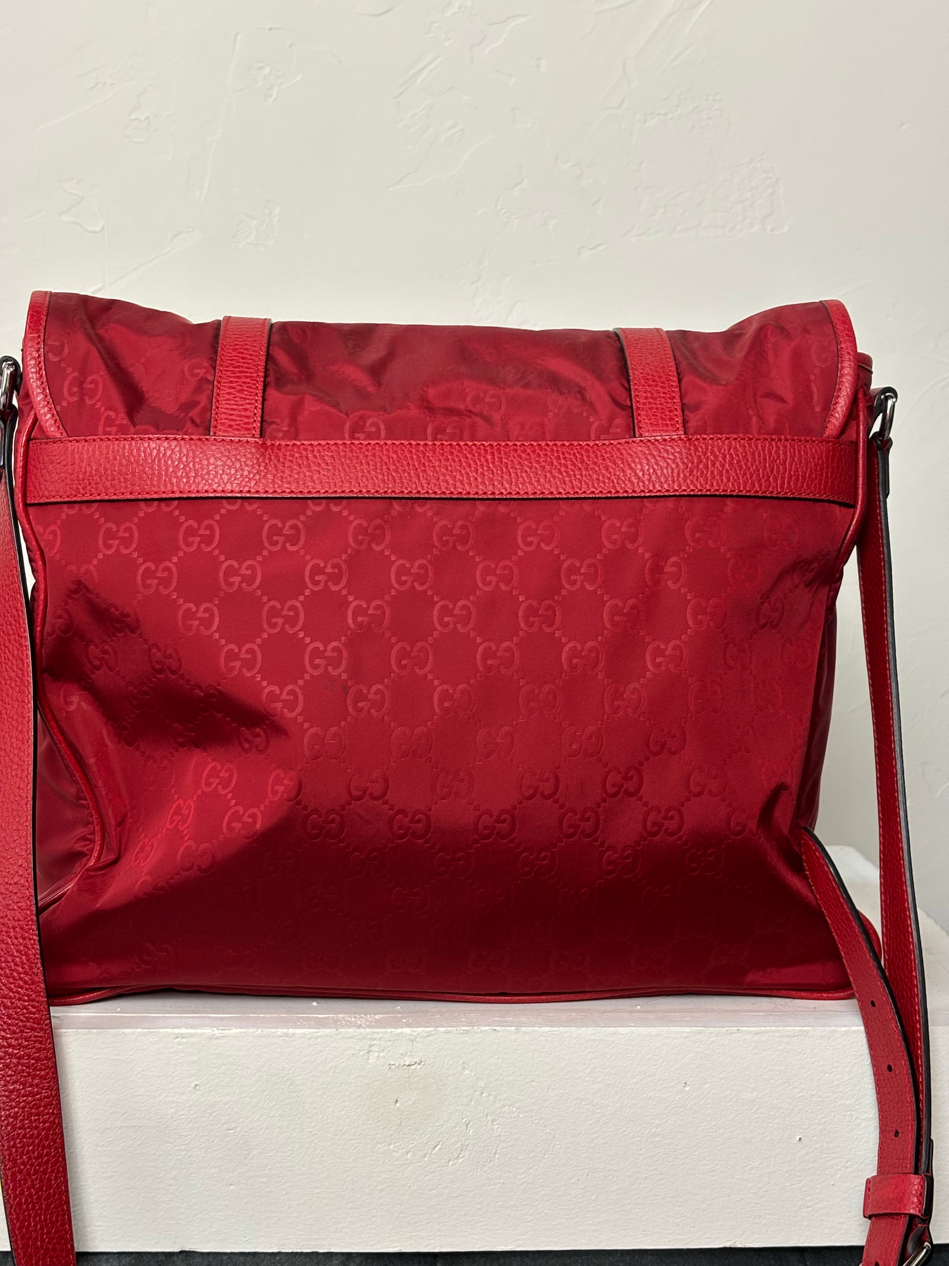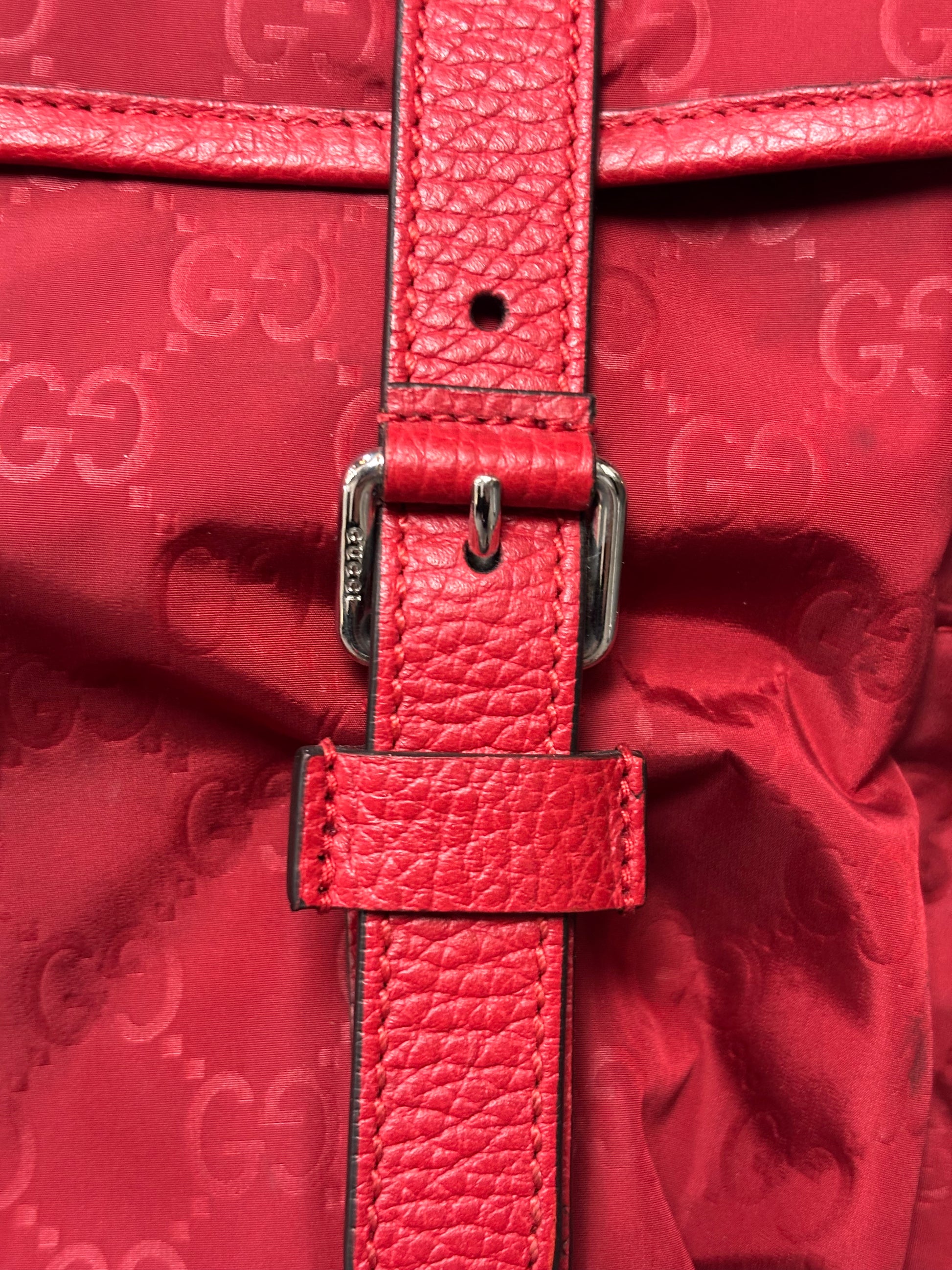 Gucci Red Nylon Monogram Double Buckle Flap Messenger Bag
