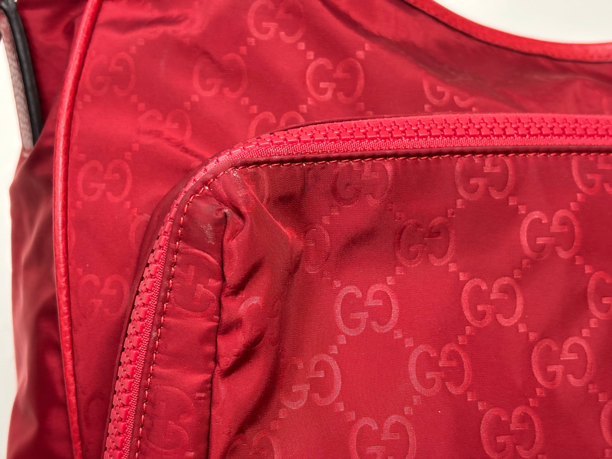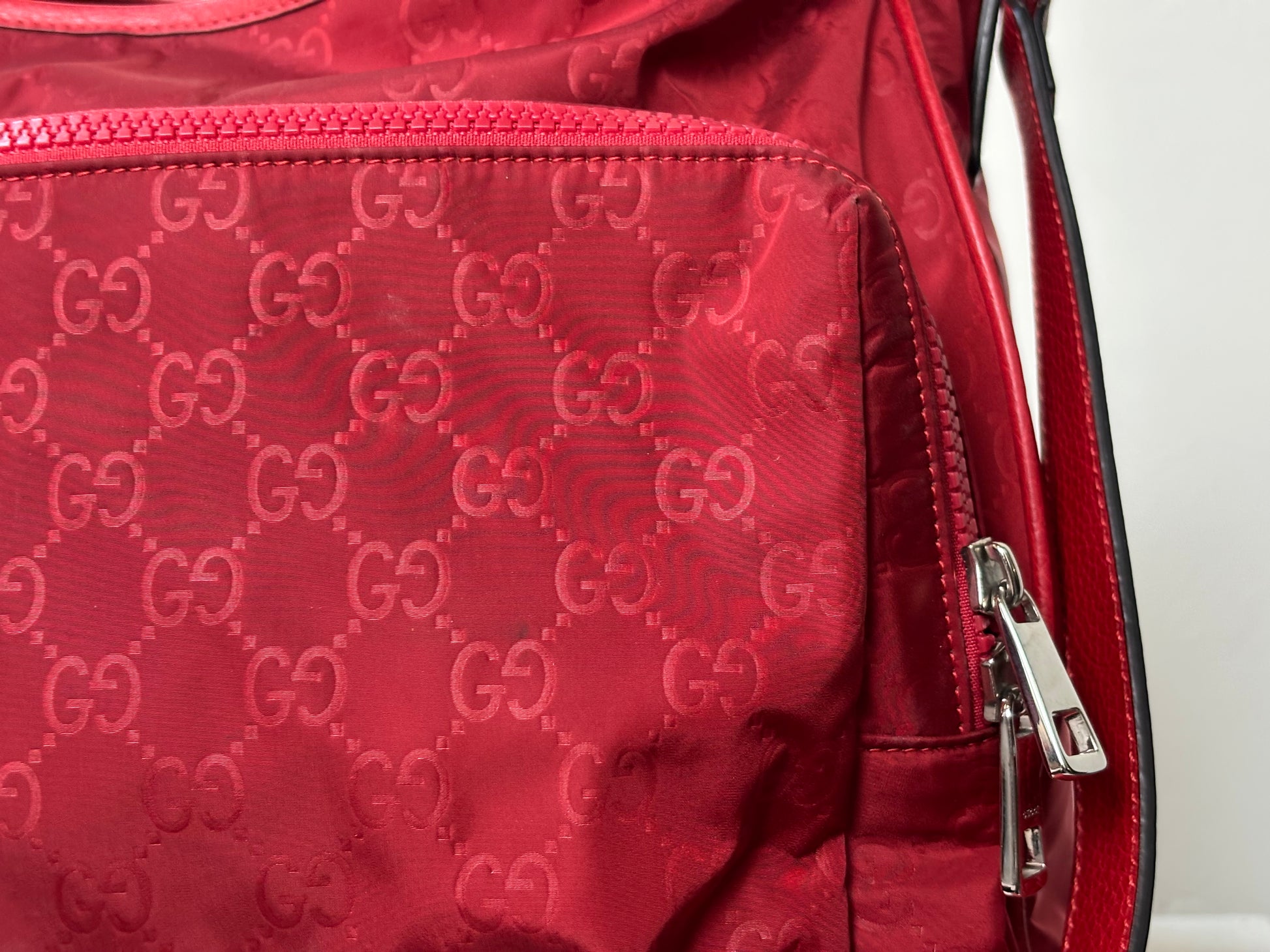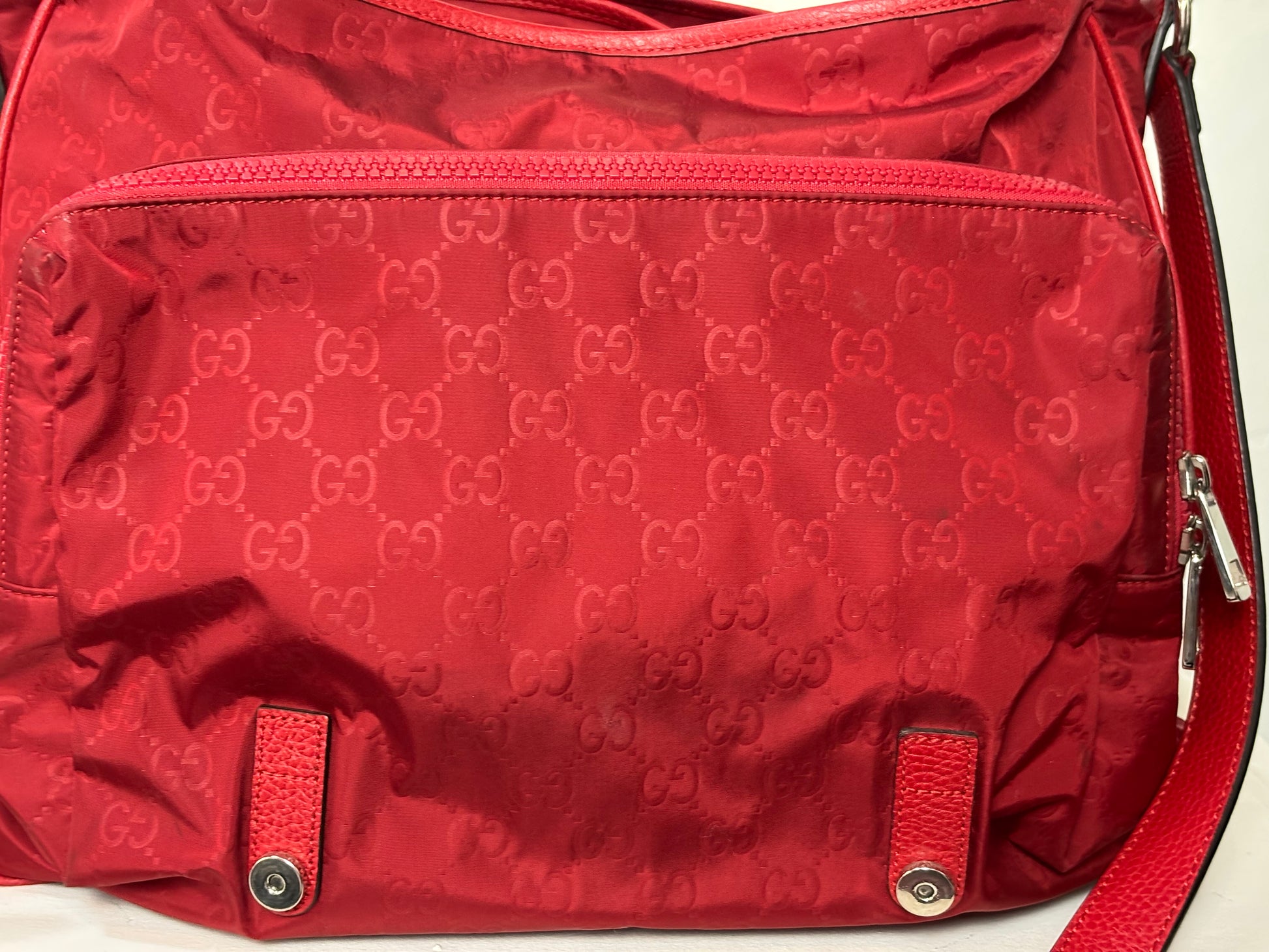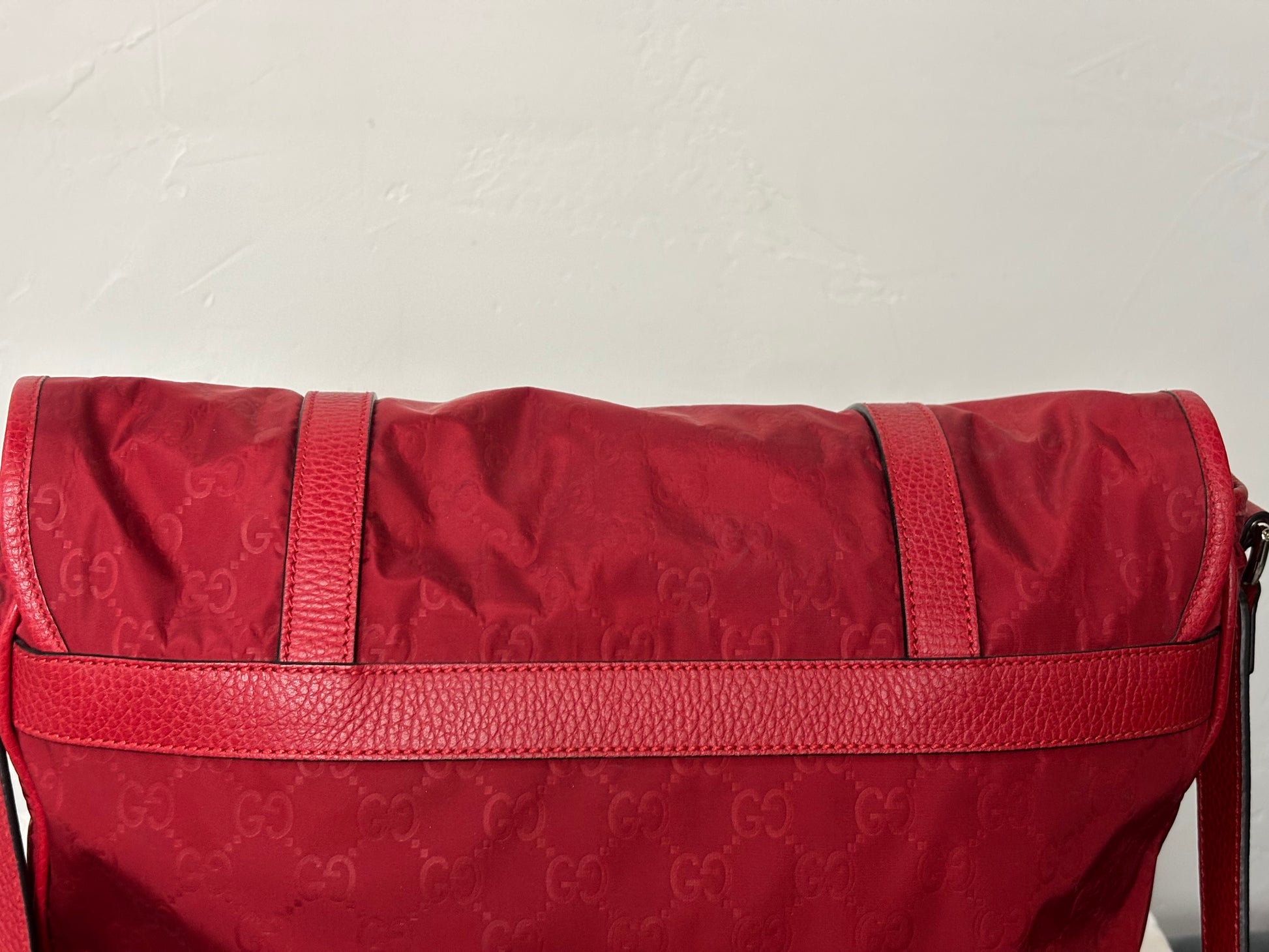 Gucci Red Nylon Monogram Double Buckle Flap Messenger Bag