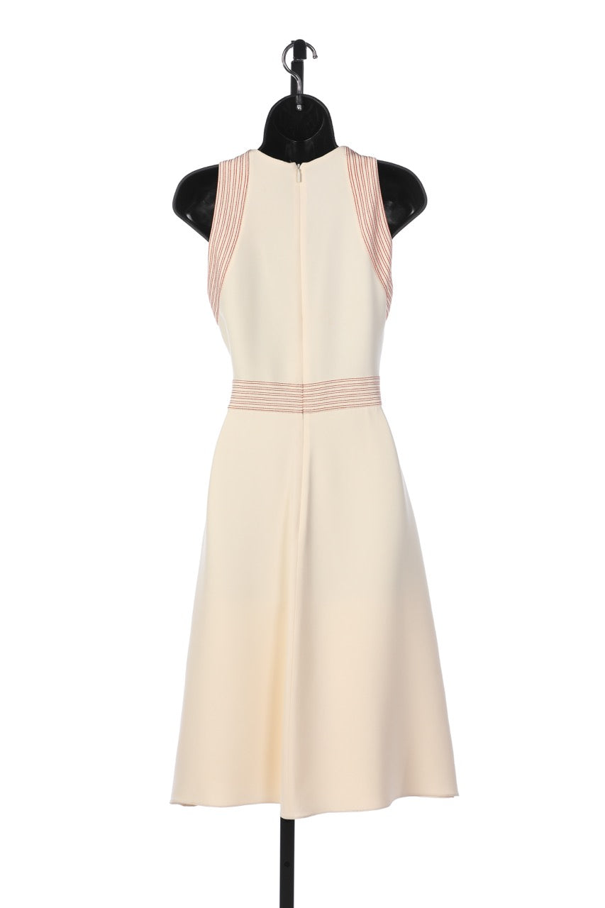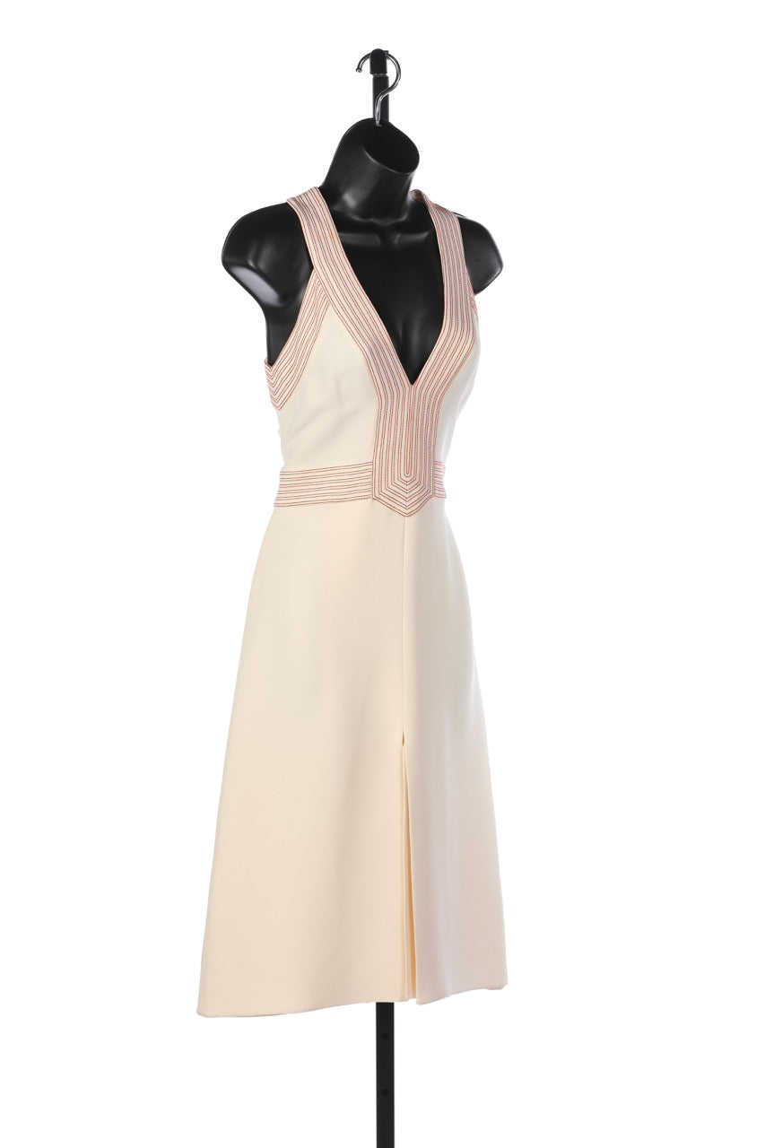 Gucci Silk Cream w Red Stitching V-Neck Sleeveless Midi Dress