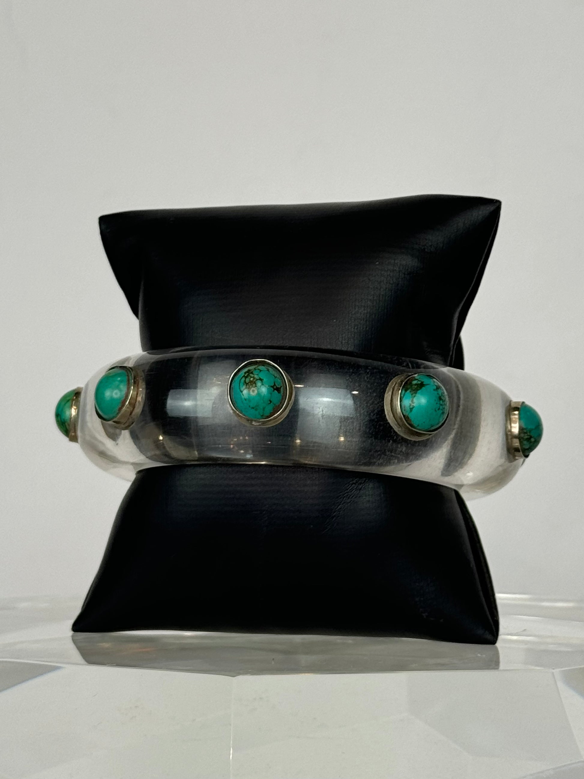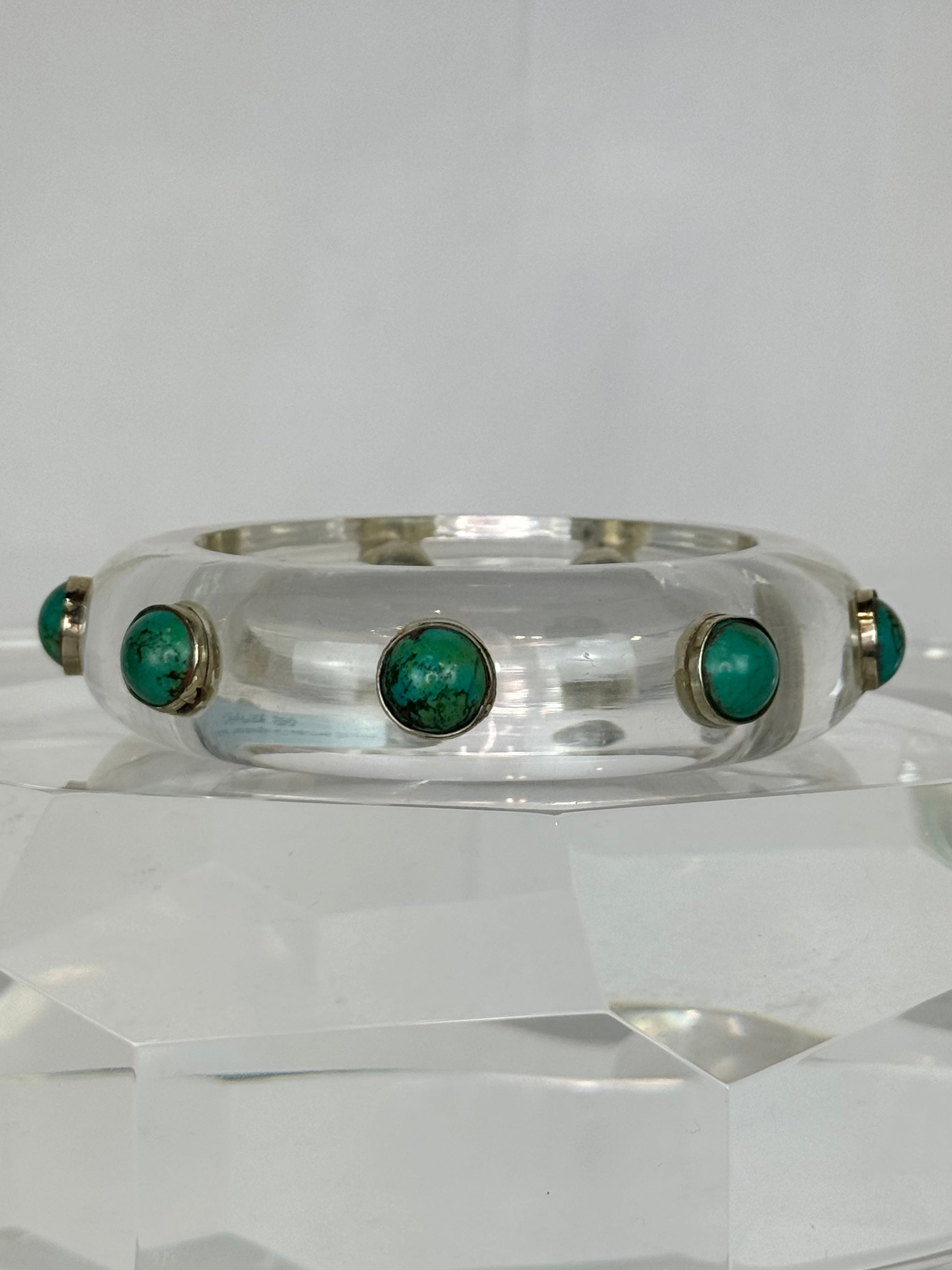 Handcrafted Clear Thick Bangle w Turquoise Stones