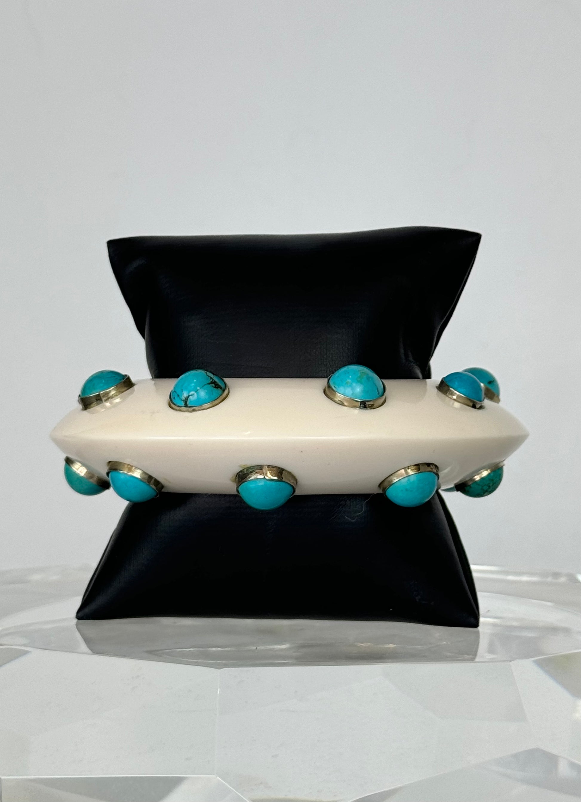 Handcrafted Cream Thick Bangle w Turquoise Stones