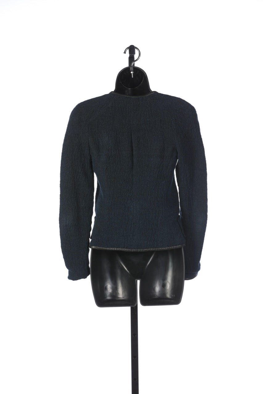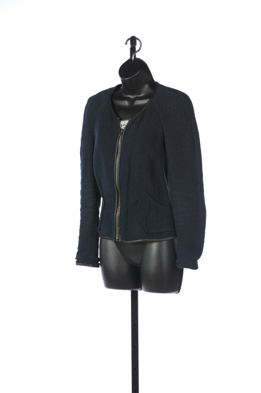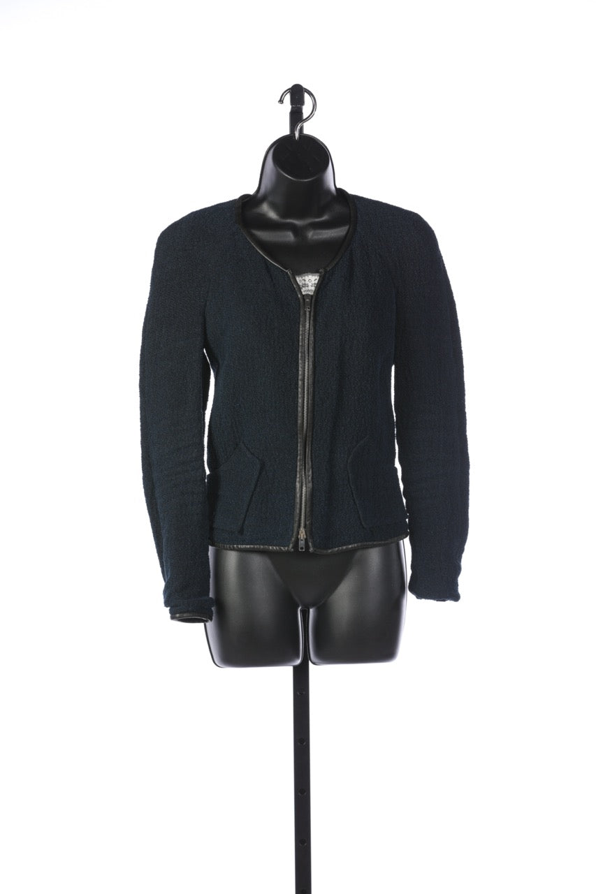 Isabel Marant Dark Blue Boucle Zip Up Jacket w Black Leather Trim