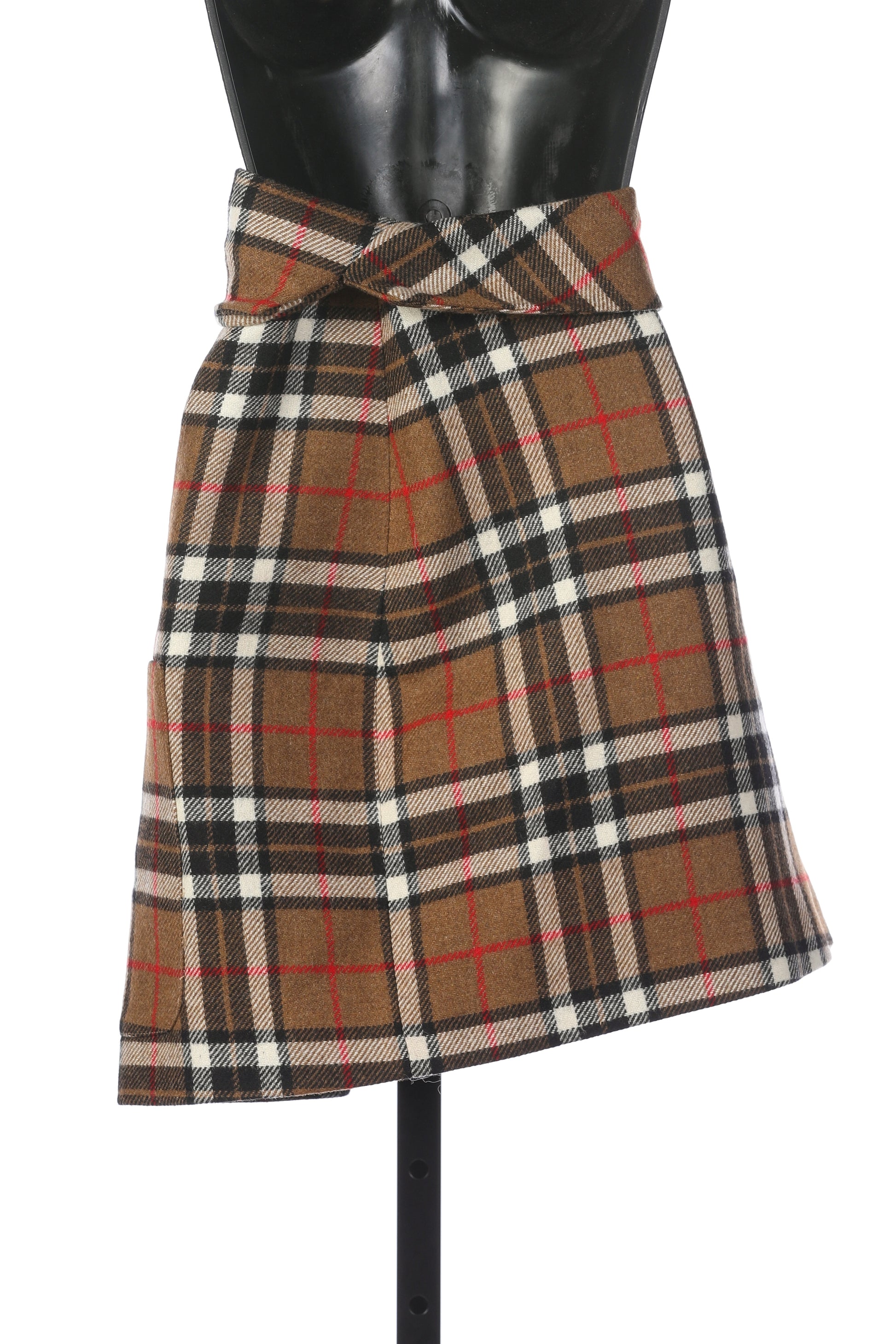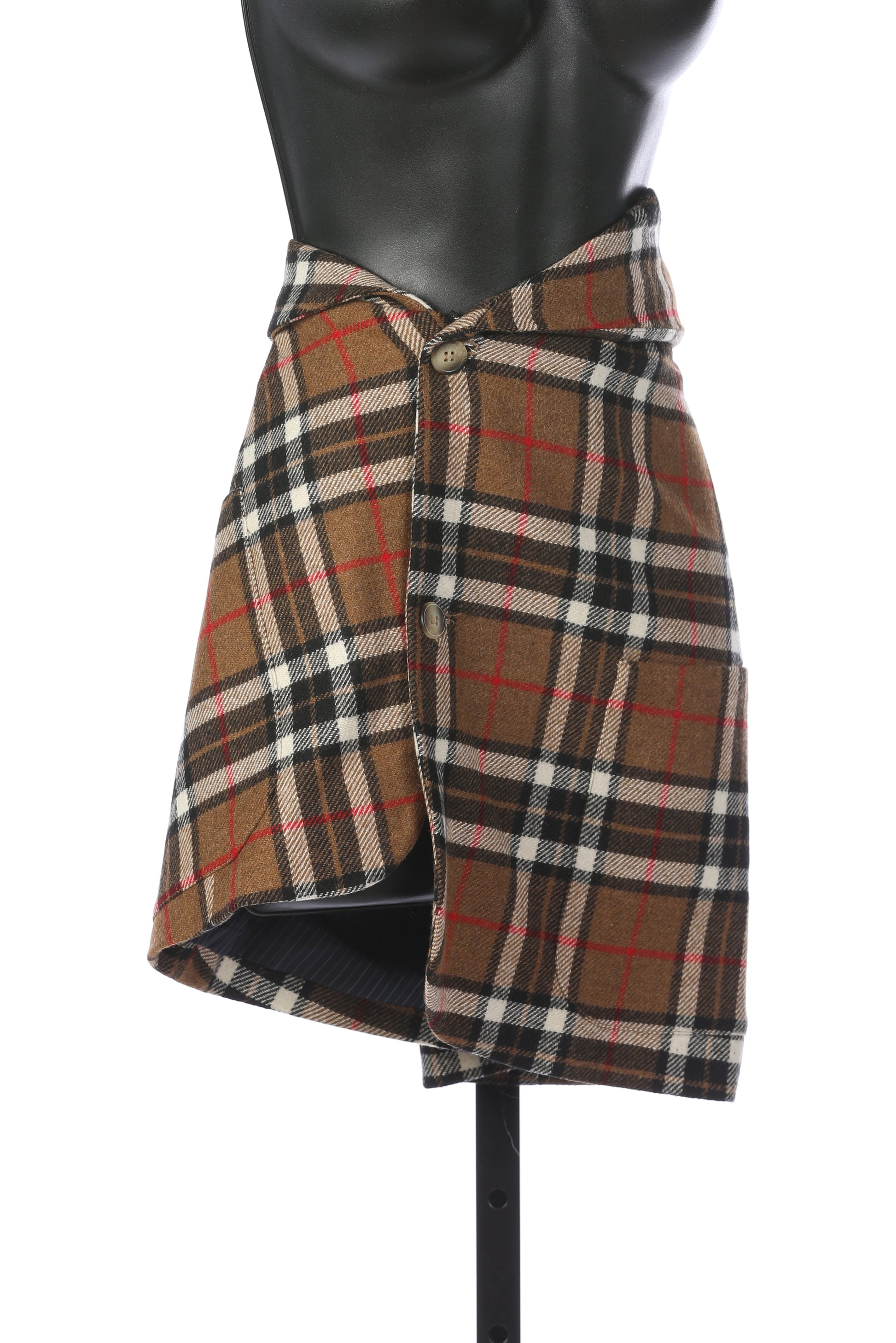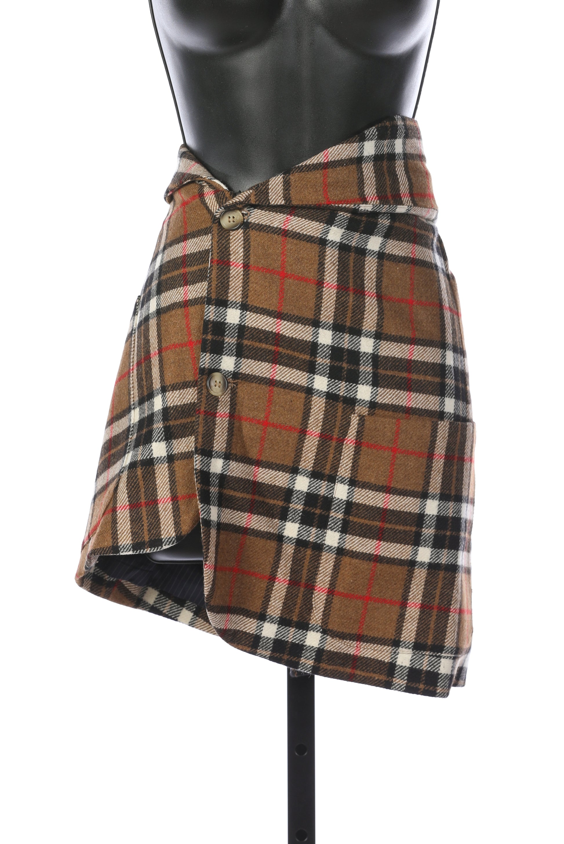 Jacquemus Brown Plaid Asymmetrical Mini Skirt