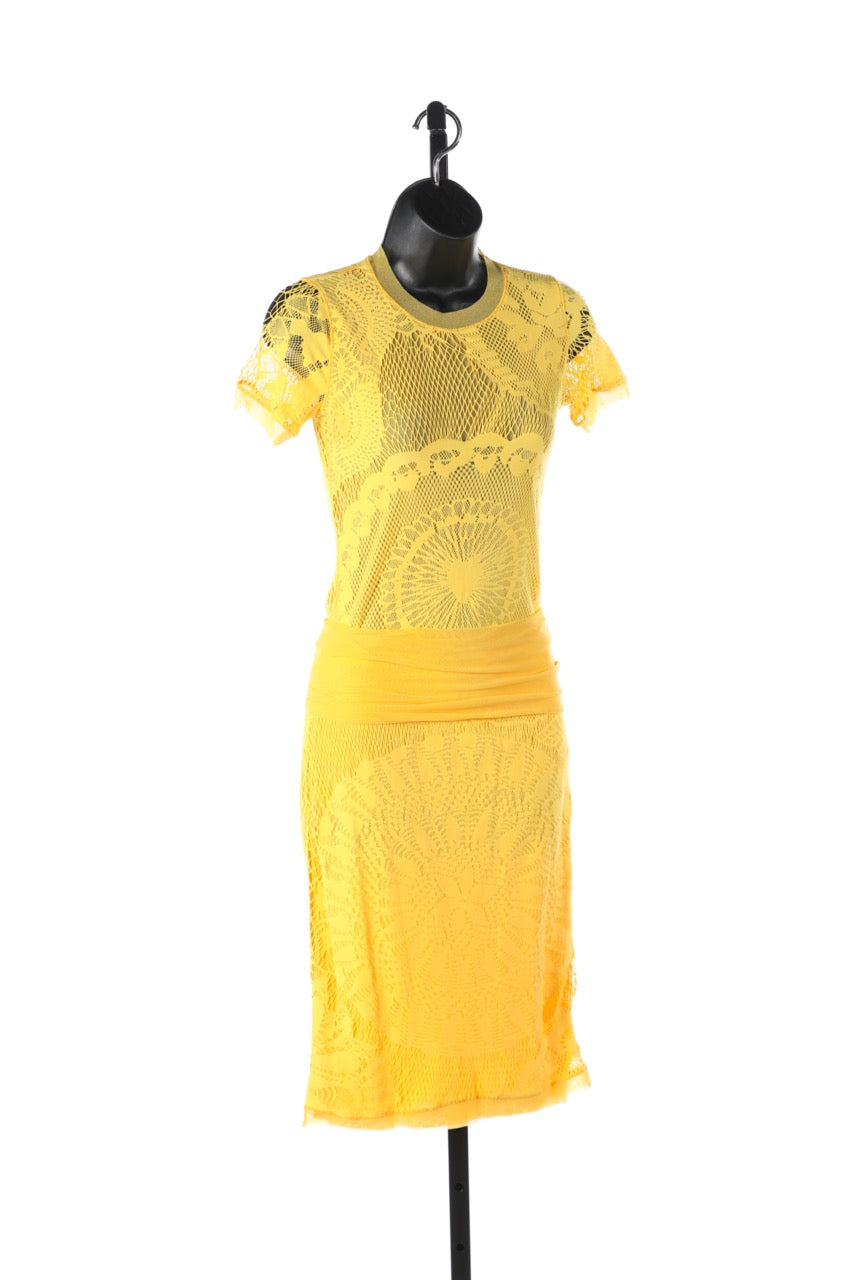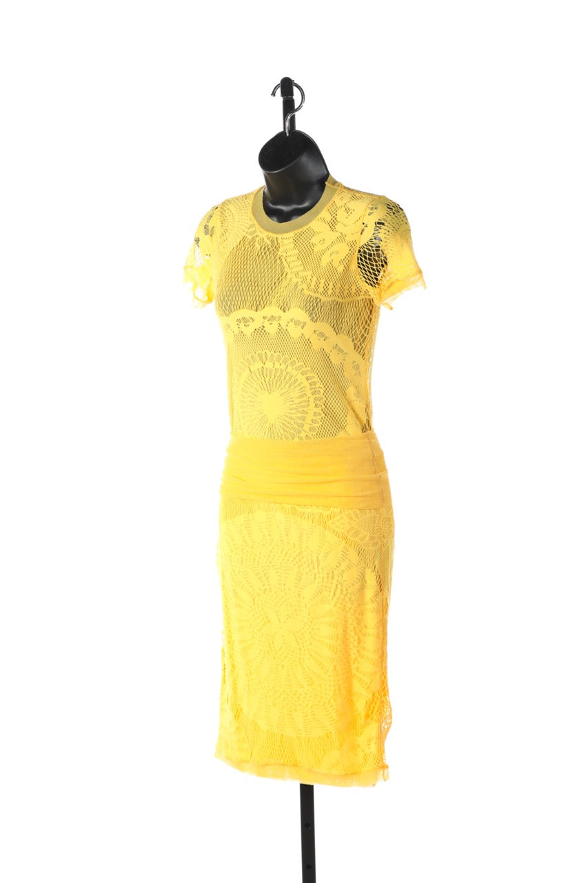 Jean Paul Gaultier Yellow Mesh Knee-Length Skirt NWT (Part of Set)