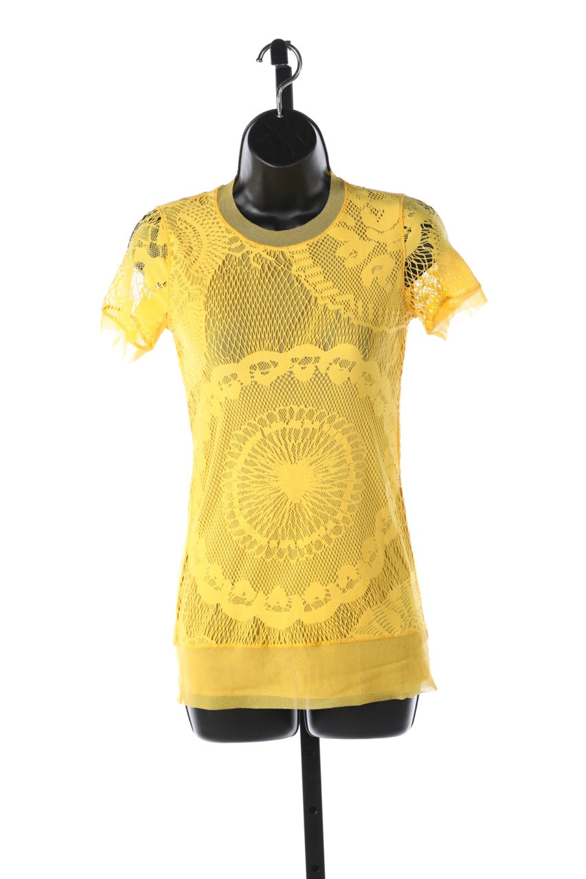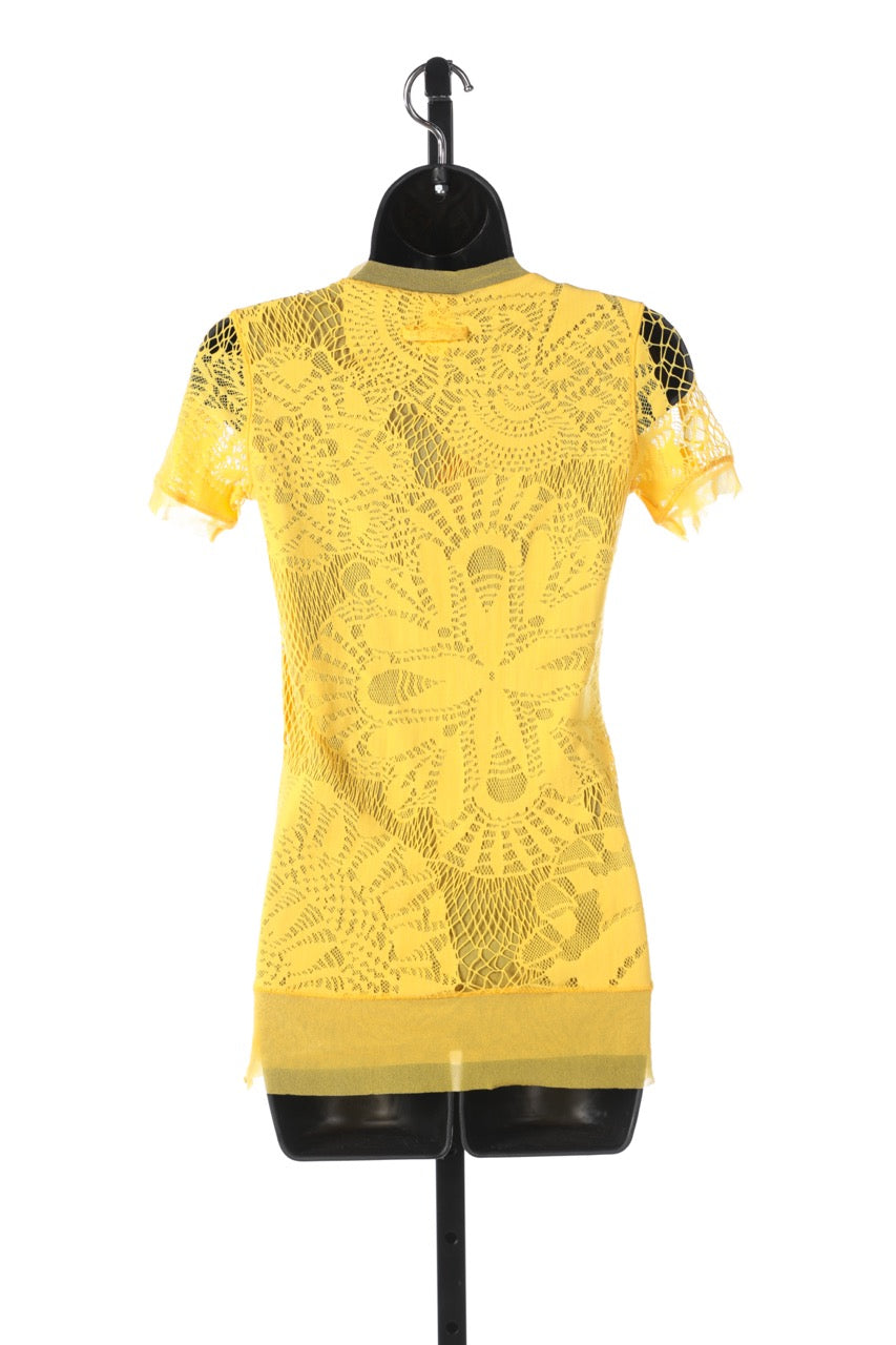 Jean Paul Gaultier Yellow Mesh Short-Sleeve Shirt NWT (Part of Set)