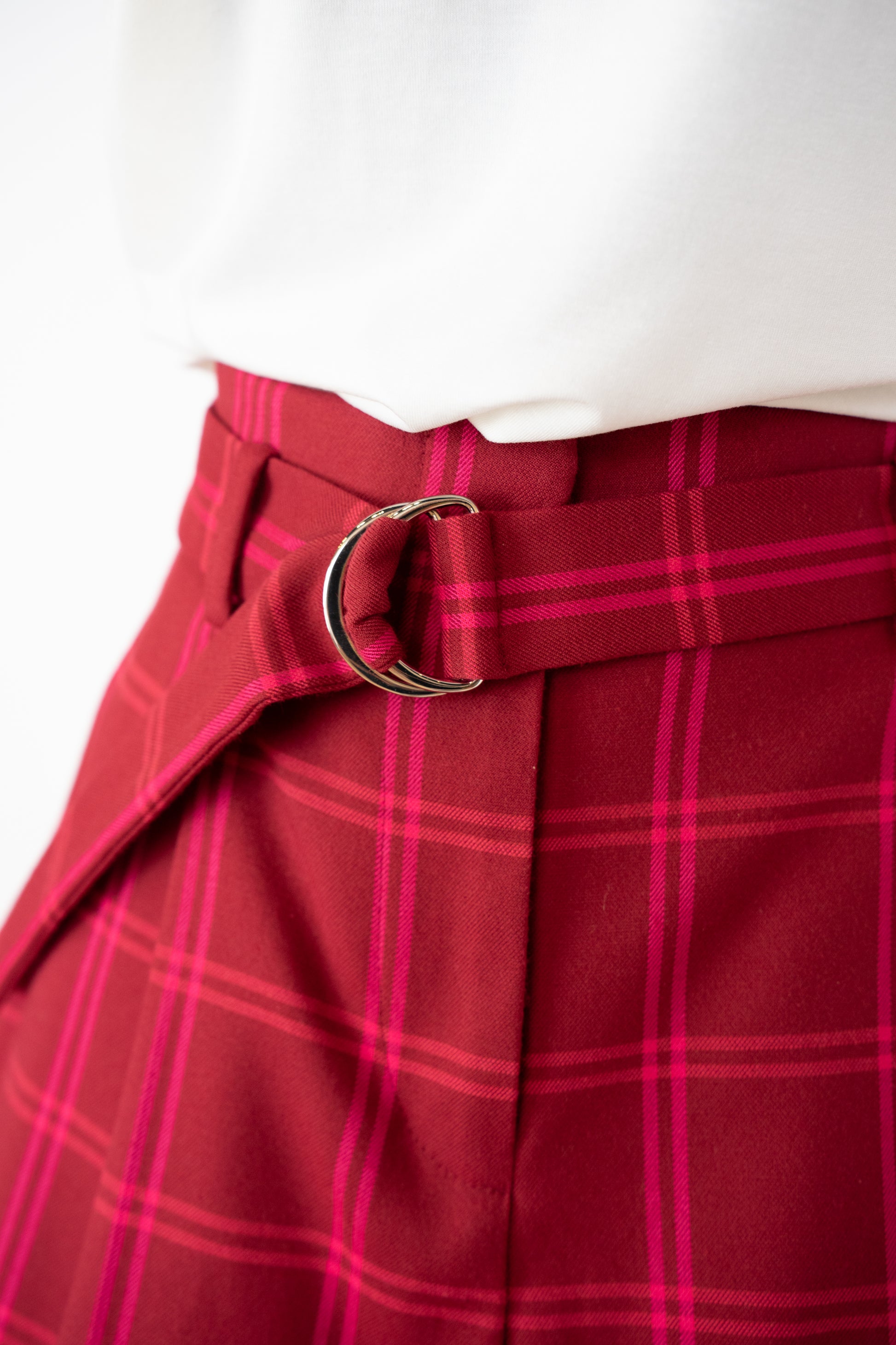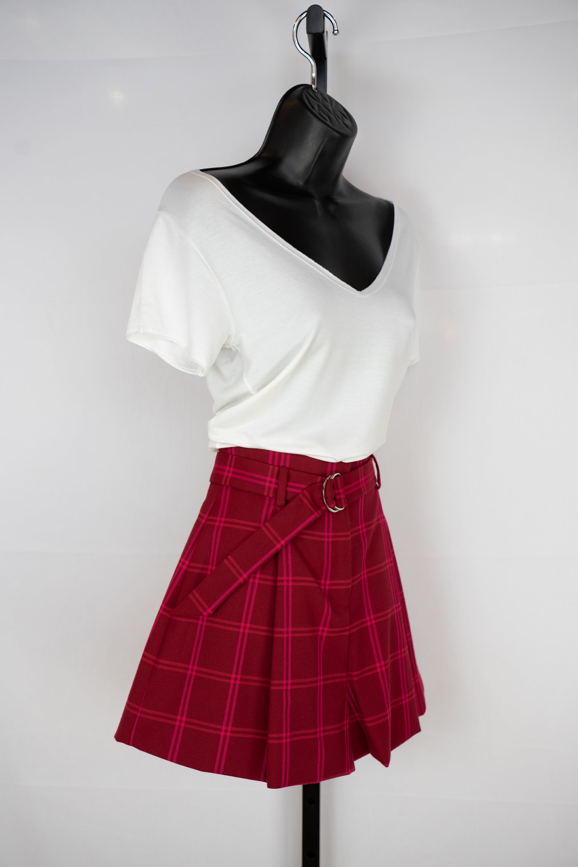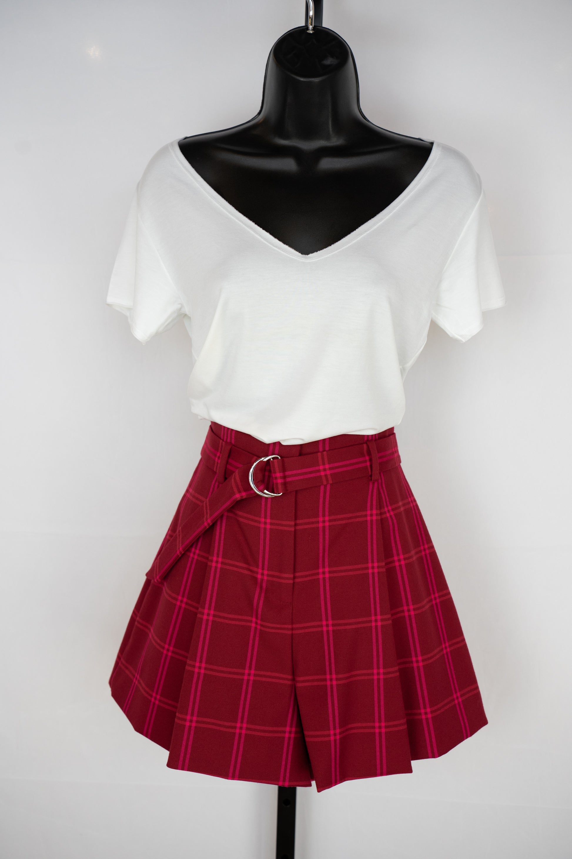 Jonathan Simkhai Red w Pink Plaid Mini Shorts w Belt