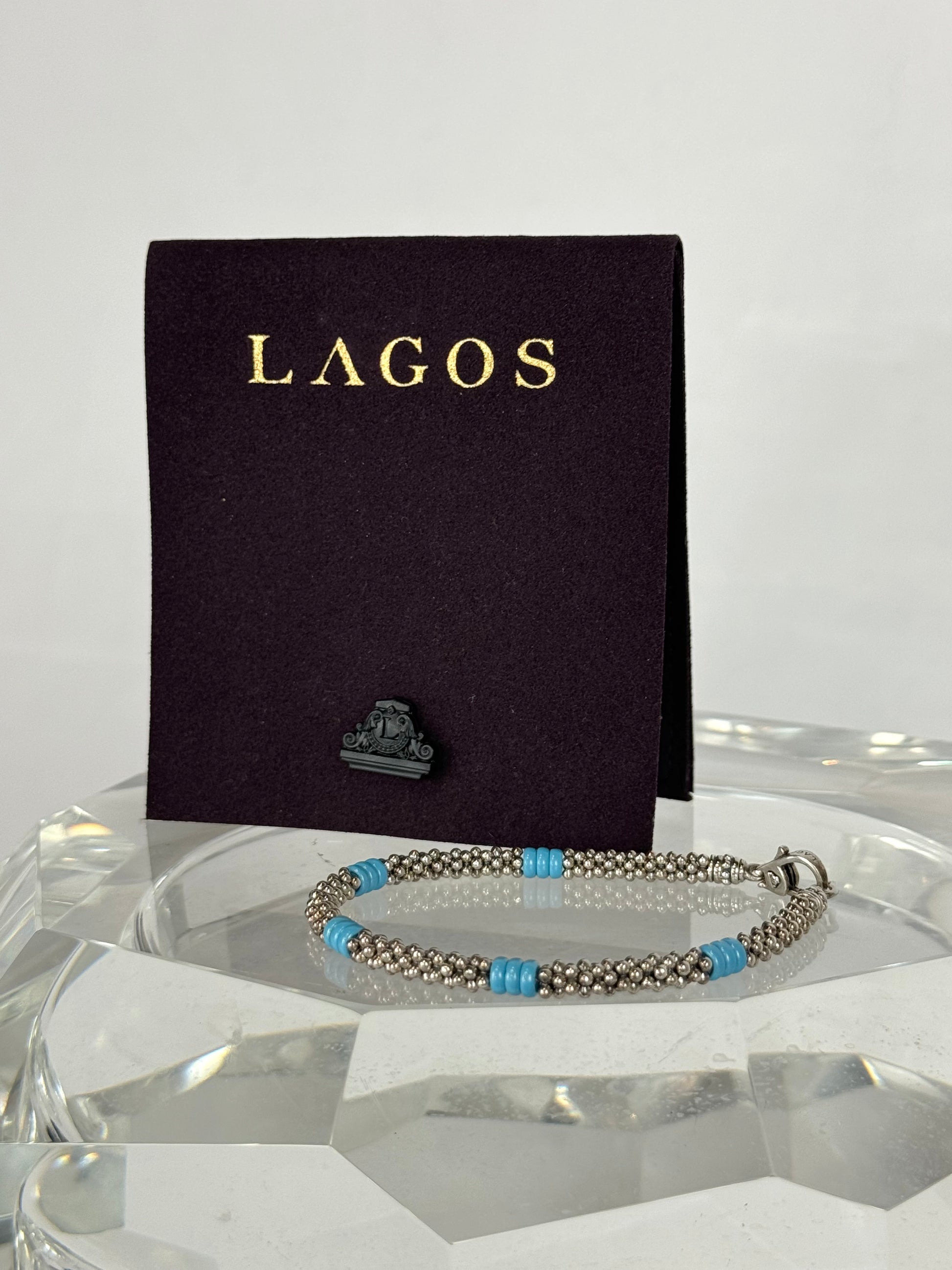COMES WITH BAG - Lagos Blue Caviar Silver Station Bracelet