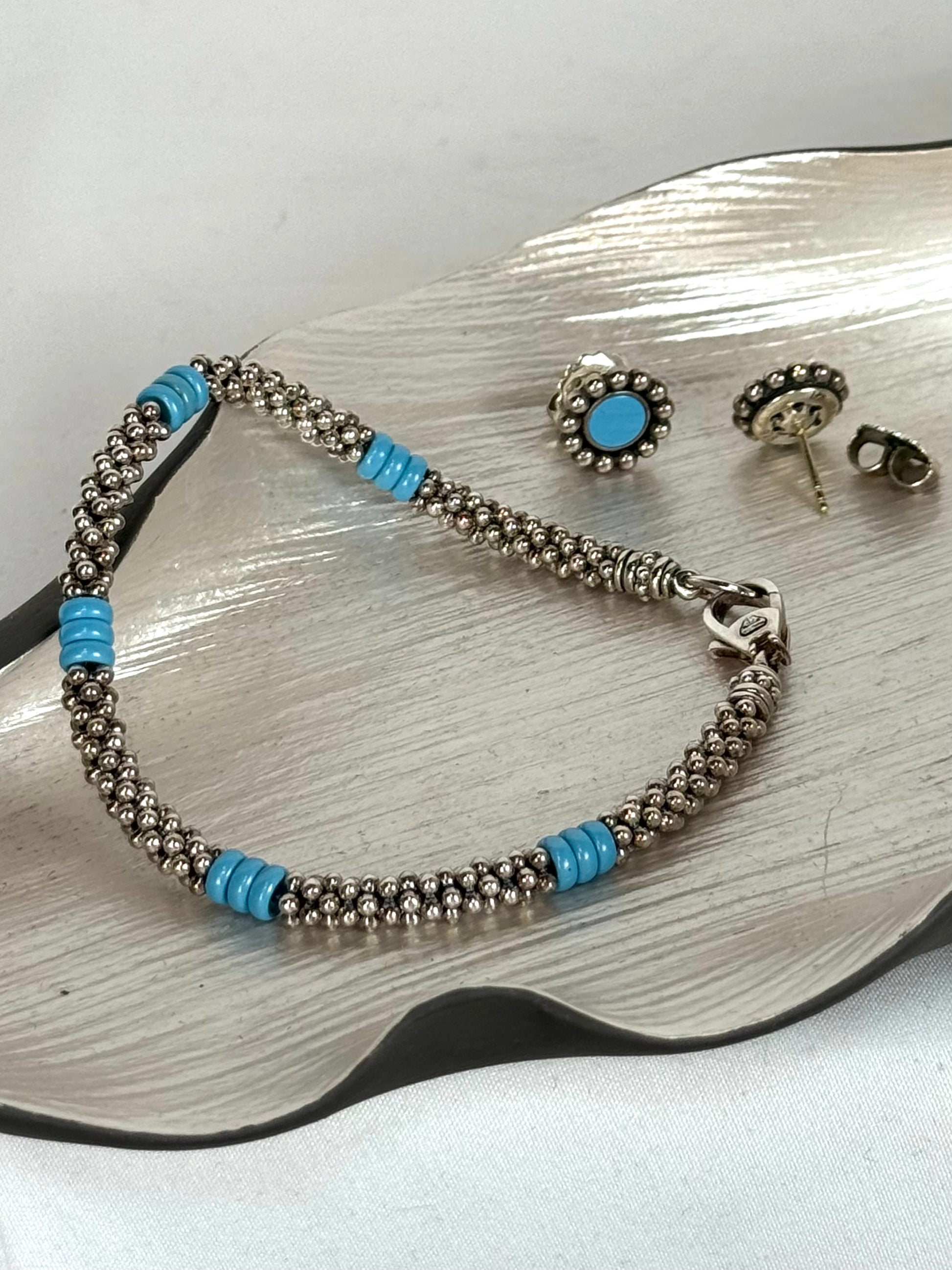 Lagos Sterling Silver Maya Blue Ceramic Stud Earrings