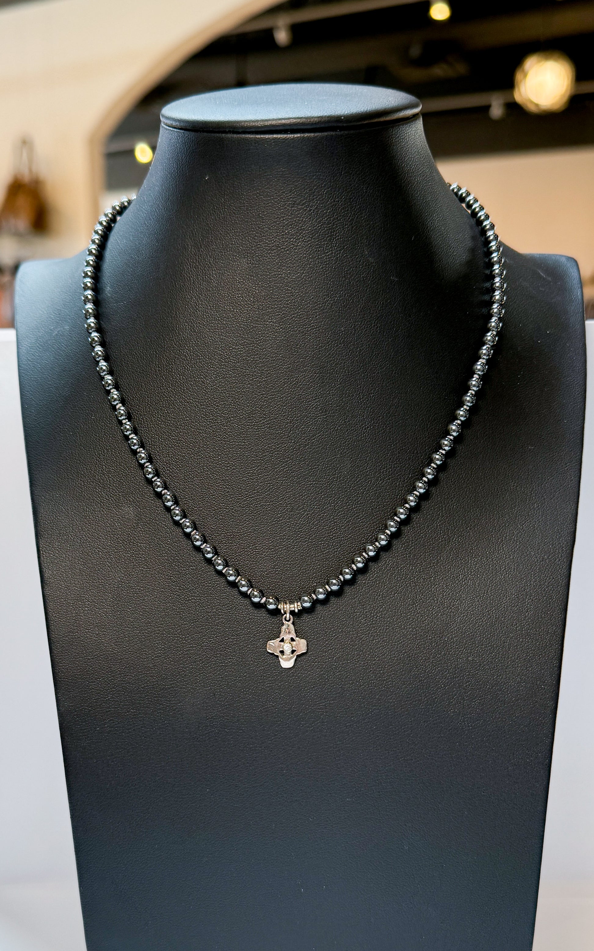 Lee Brevard 18K & Beaded Hematite Tiny Signature Cross with Stone Charm Pendant Necklace on