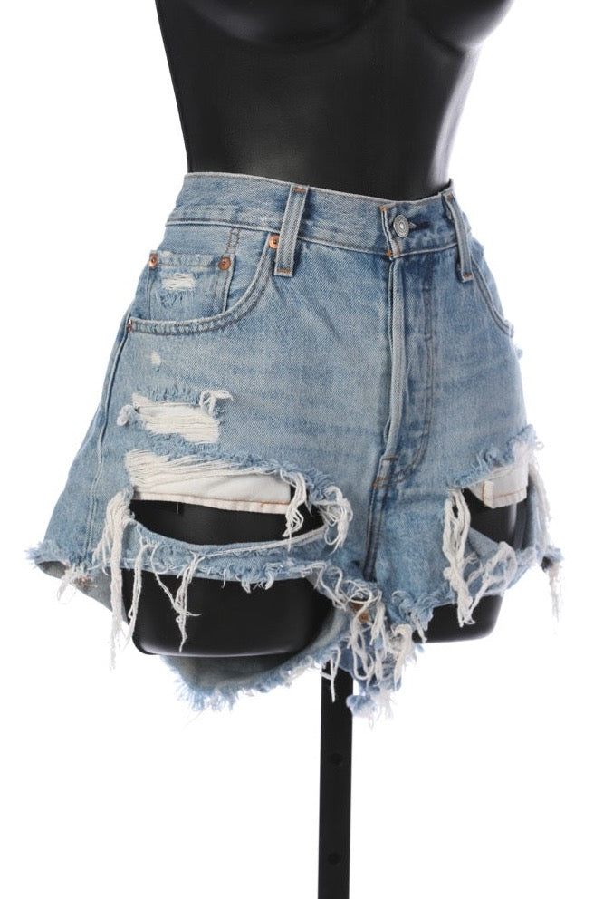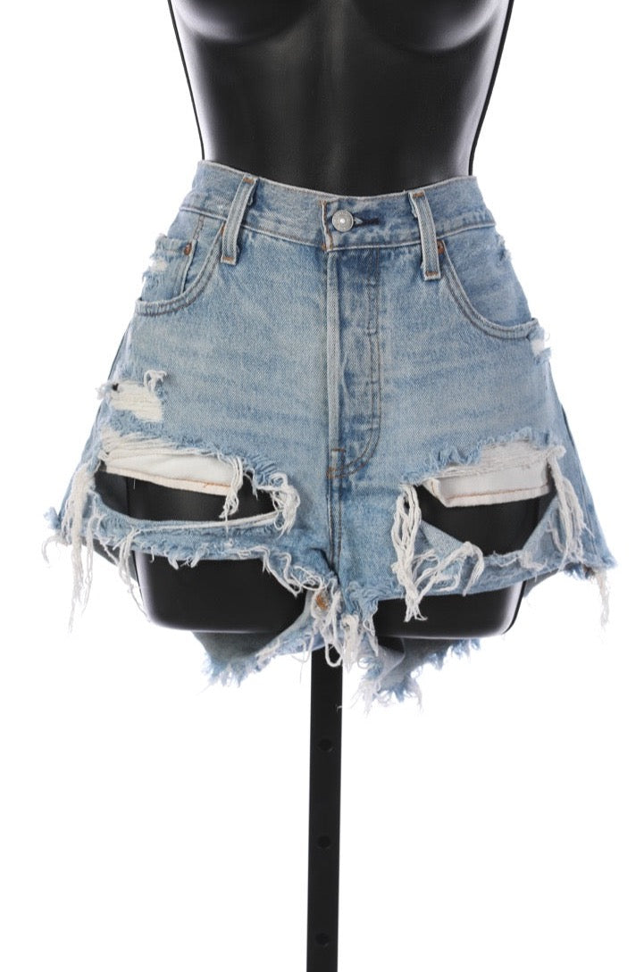Levi's Denim Light Wash "501" Button Fly Distressed Jean Shorts