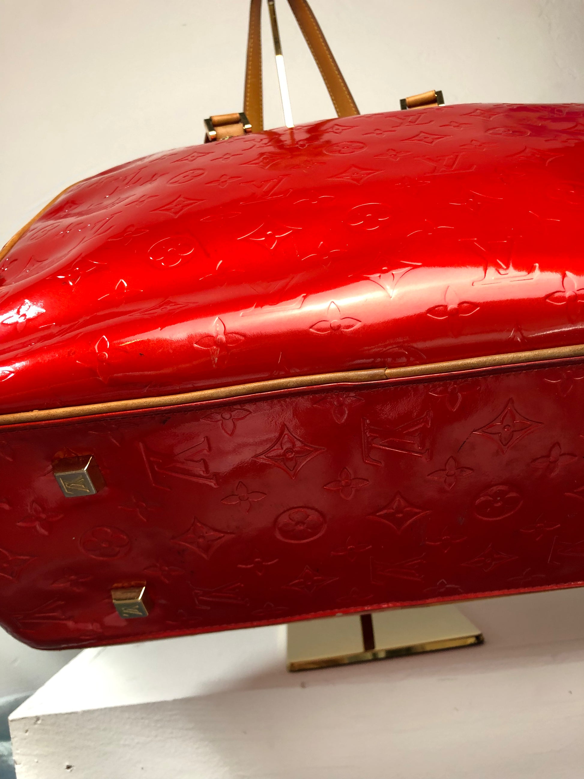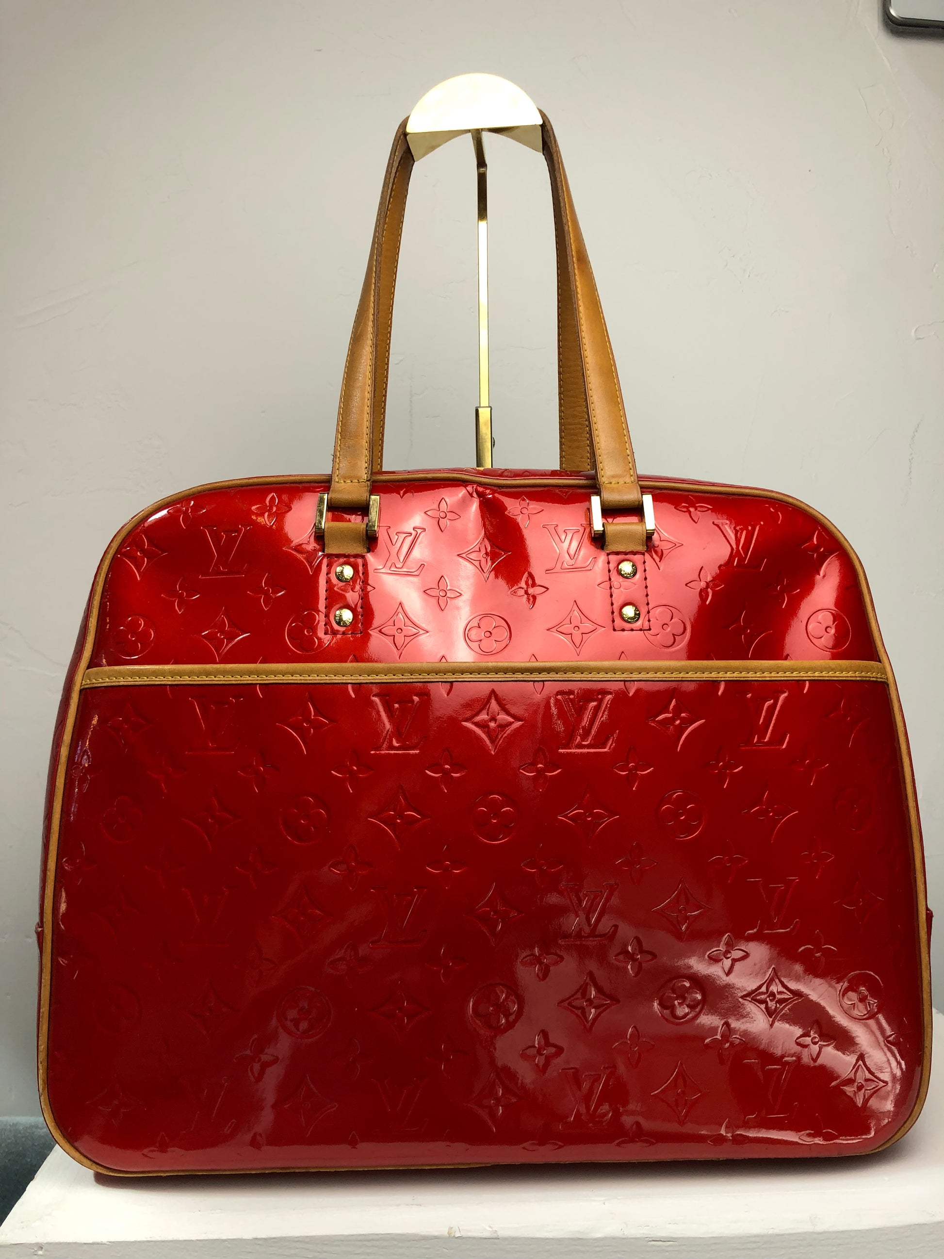 Louis Vuitton Rouge Red Leather "Vernis Sutton" Shoulder Bag Tote Bag