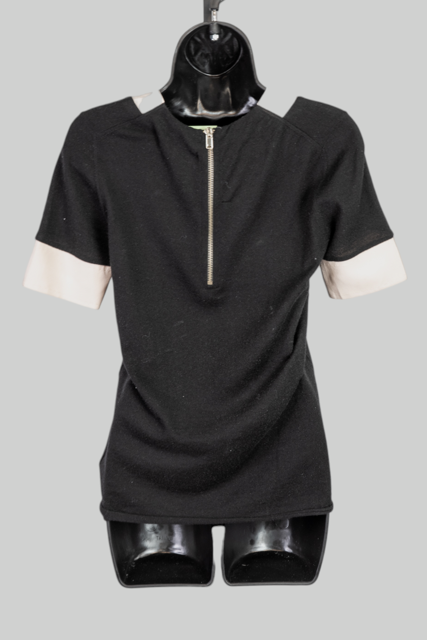 Marc By Marc Jacobs Black Cashmere Pale Pink Trim 1/2 Sleeve Sweater