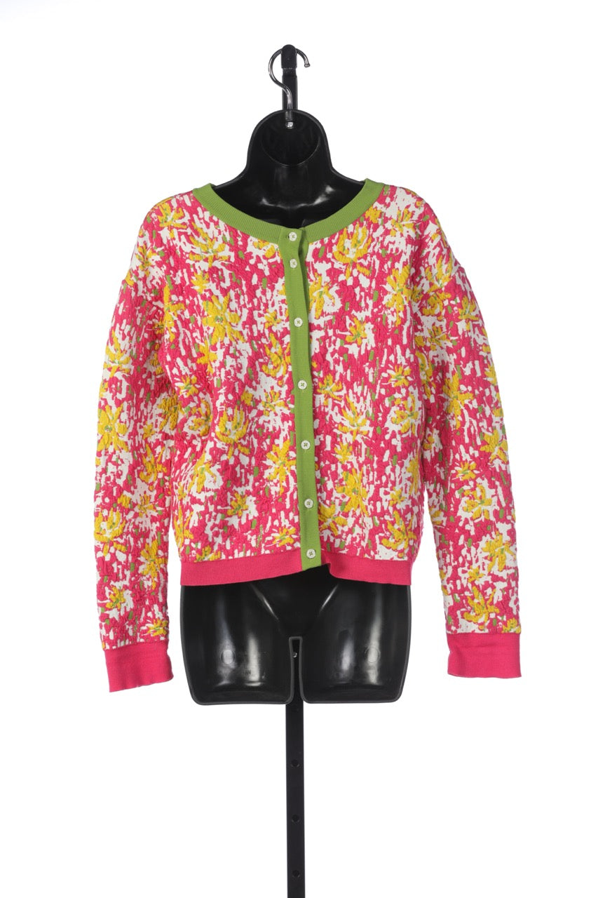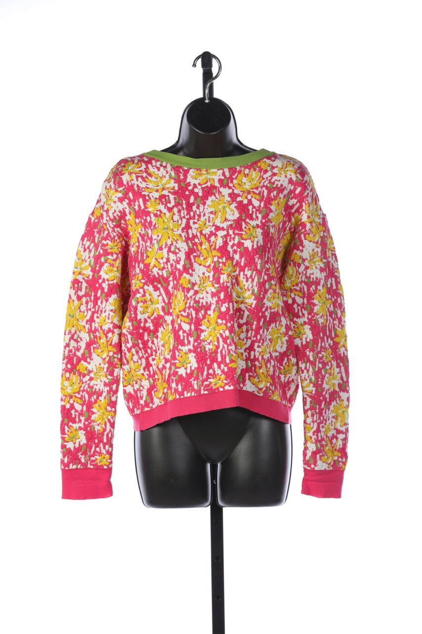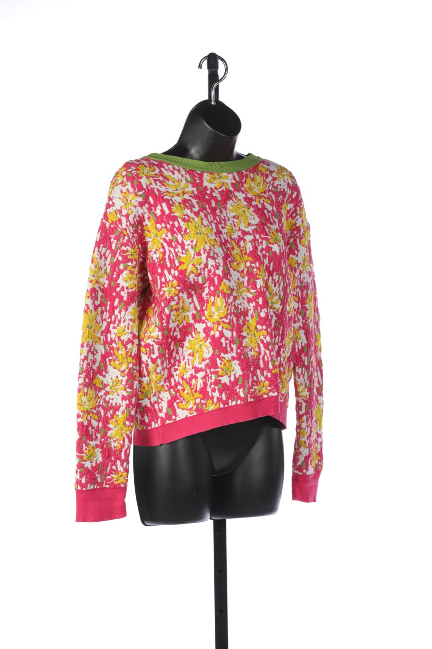Marni Pink & Green Floral Long Sleeve Sweater with Button Up Back