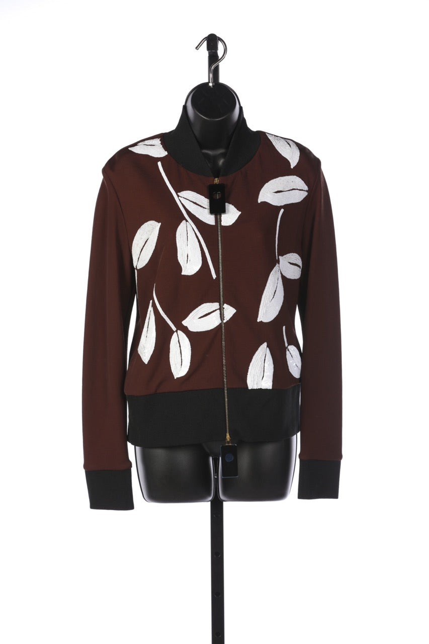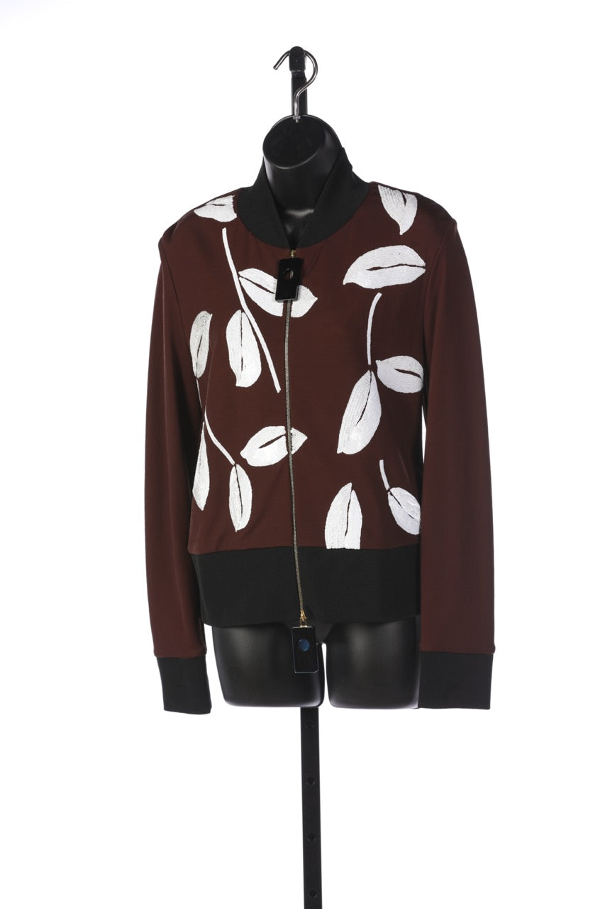 Marni Brown with White Sequin Leaves Zip Up Bomber Jacket