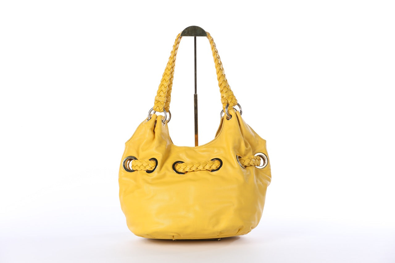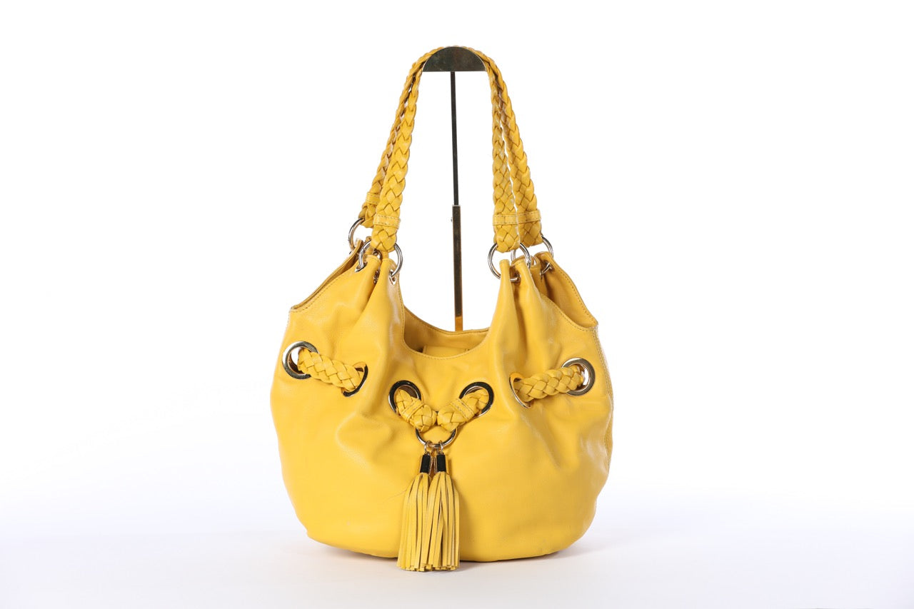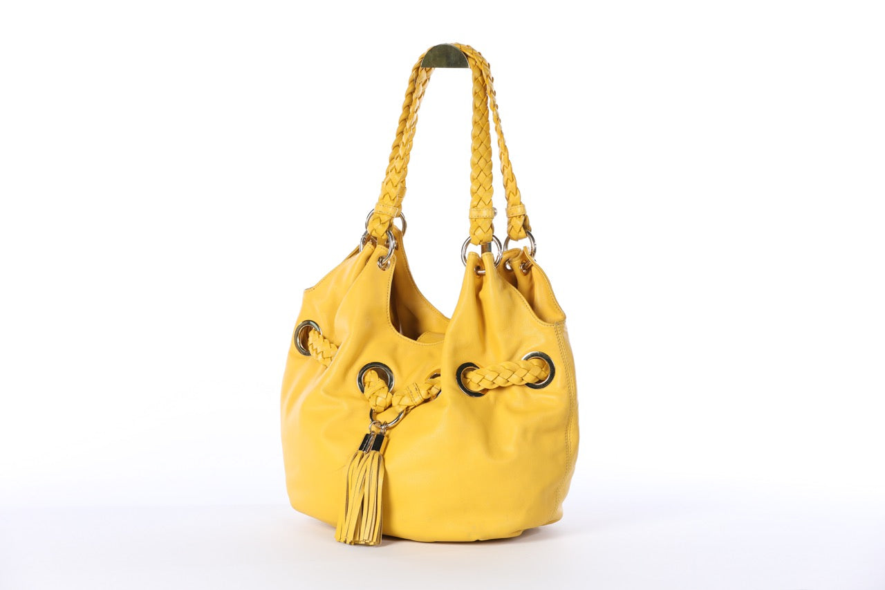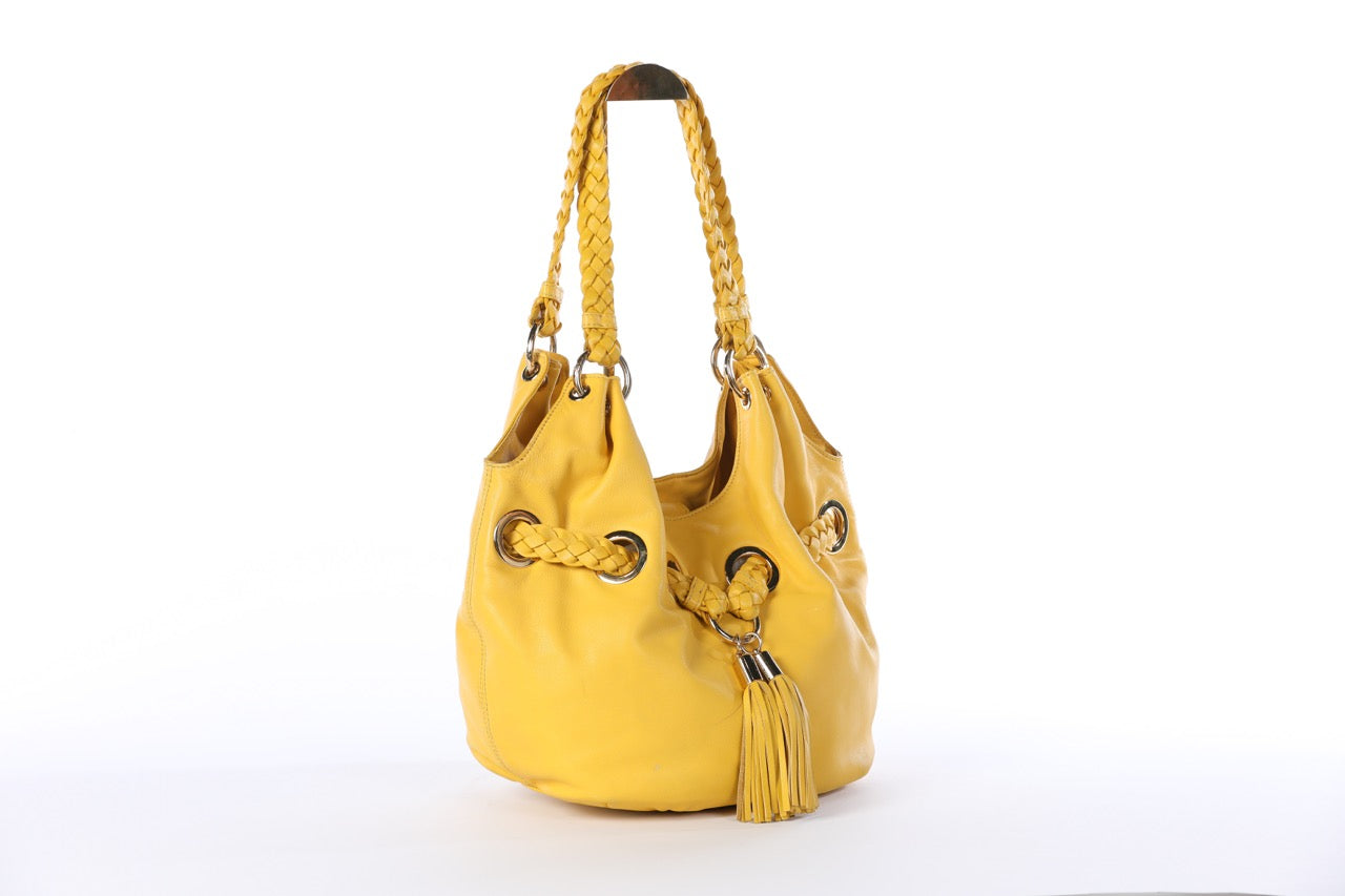 Michael Kors Yellow Large Buckle/Tote Bag w Braiding Details & Gold Hardware