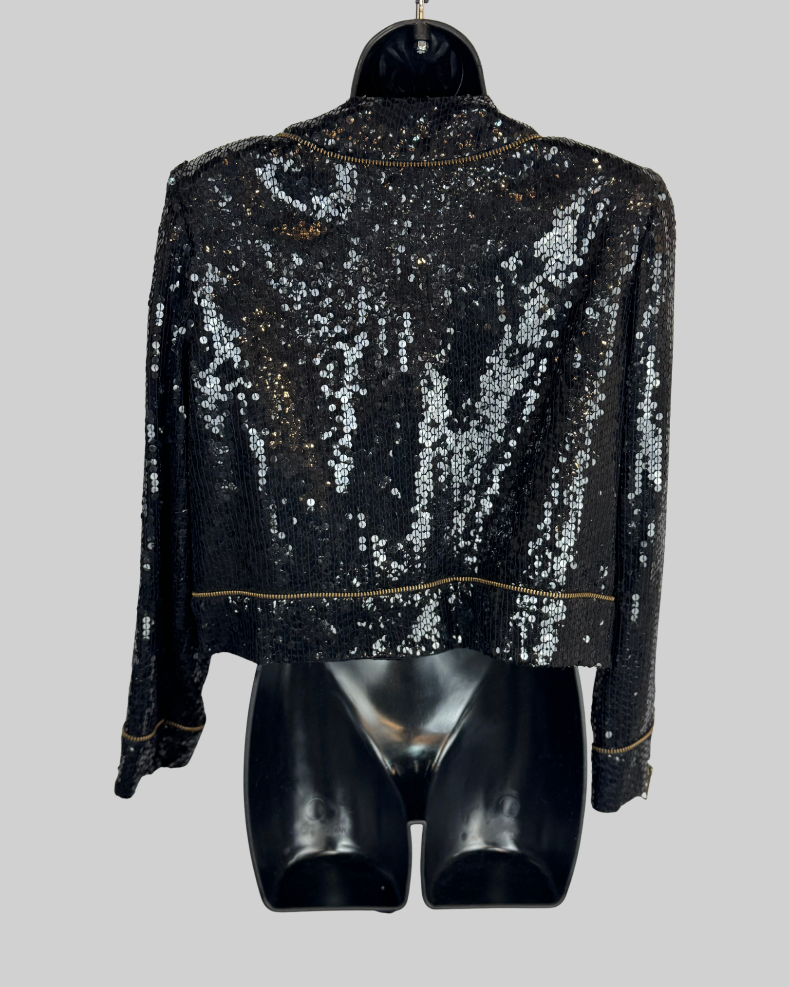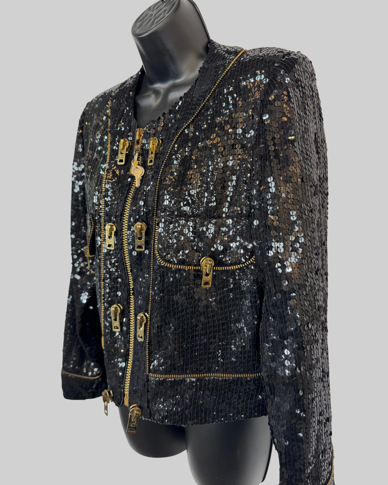 Vintage Jeanette St. Martin Fred Hayman Black Sequin Multi Zipper Jacket