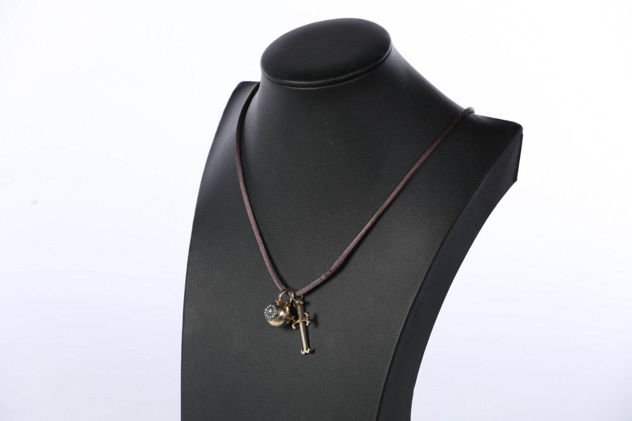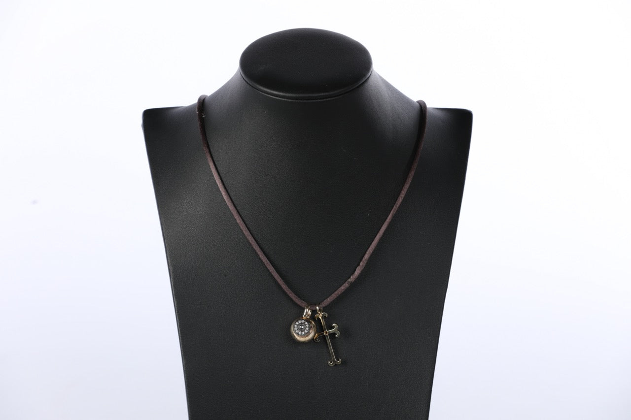 Mizuki 14k Gold Diamond Ball Pendant & Cross Pendant on Brown Cord Necklace
