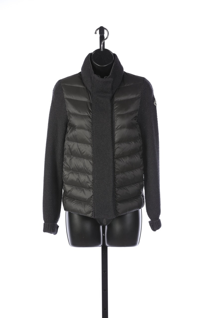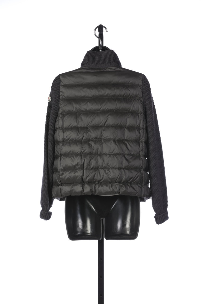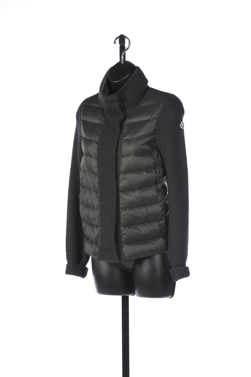 Moncler Grey Insulated Puffer Jacket with Knit Detail