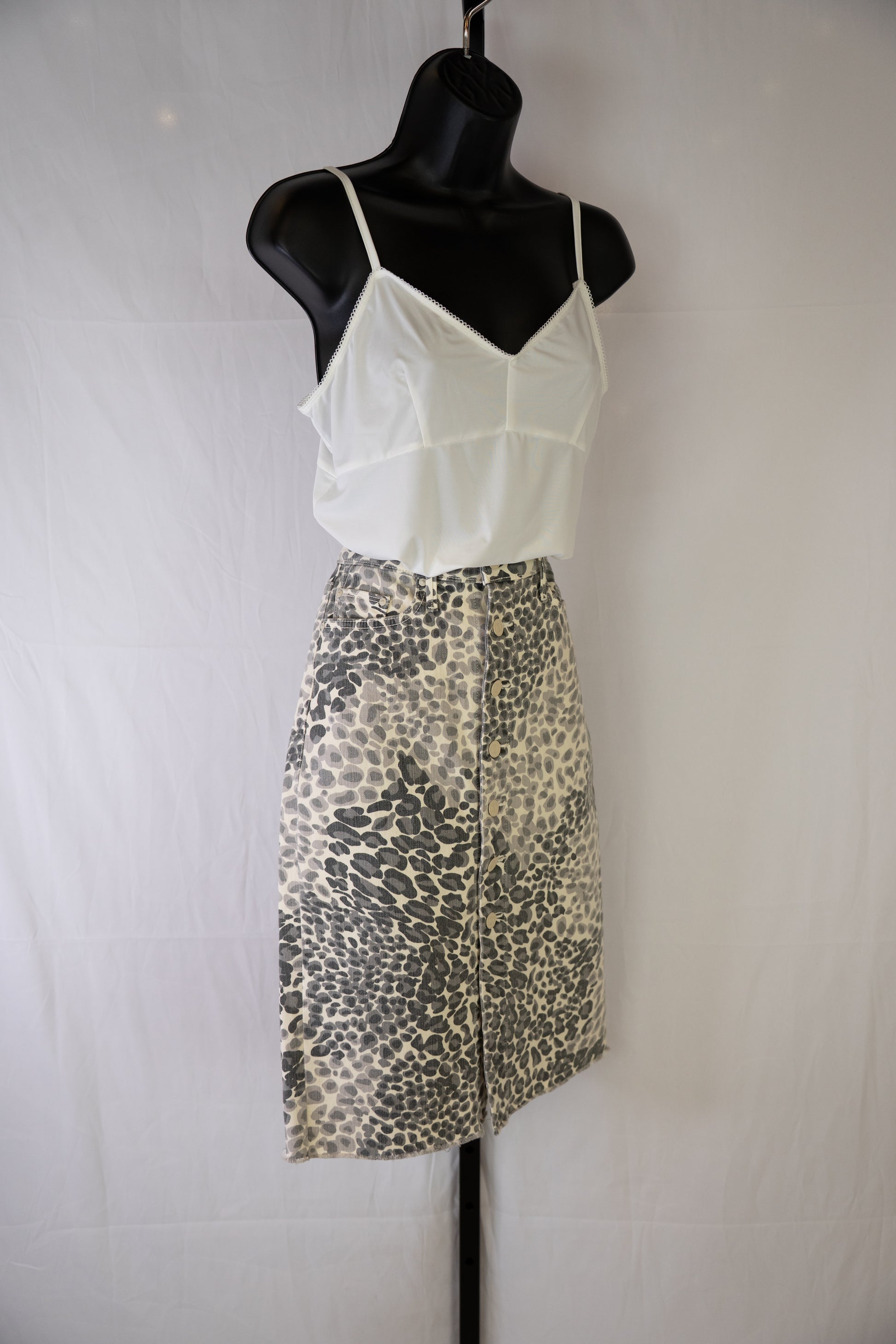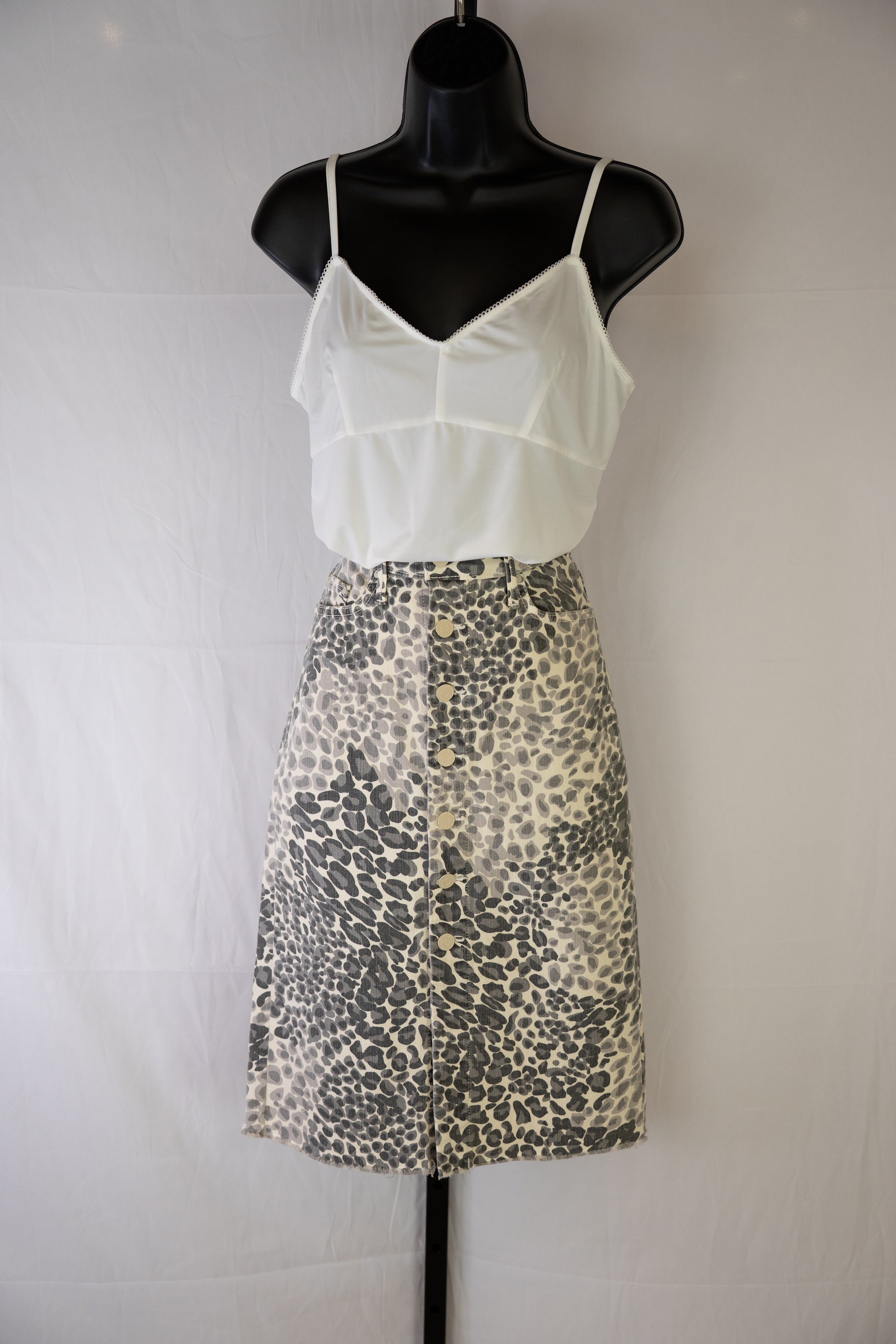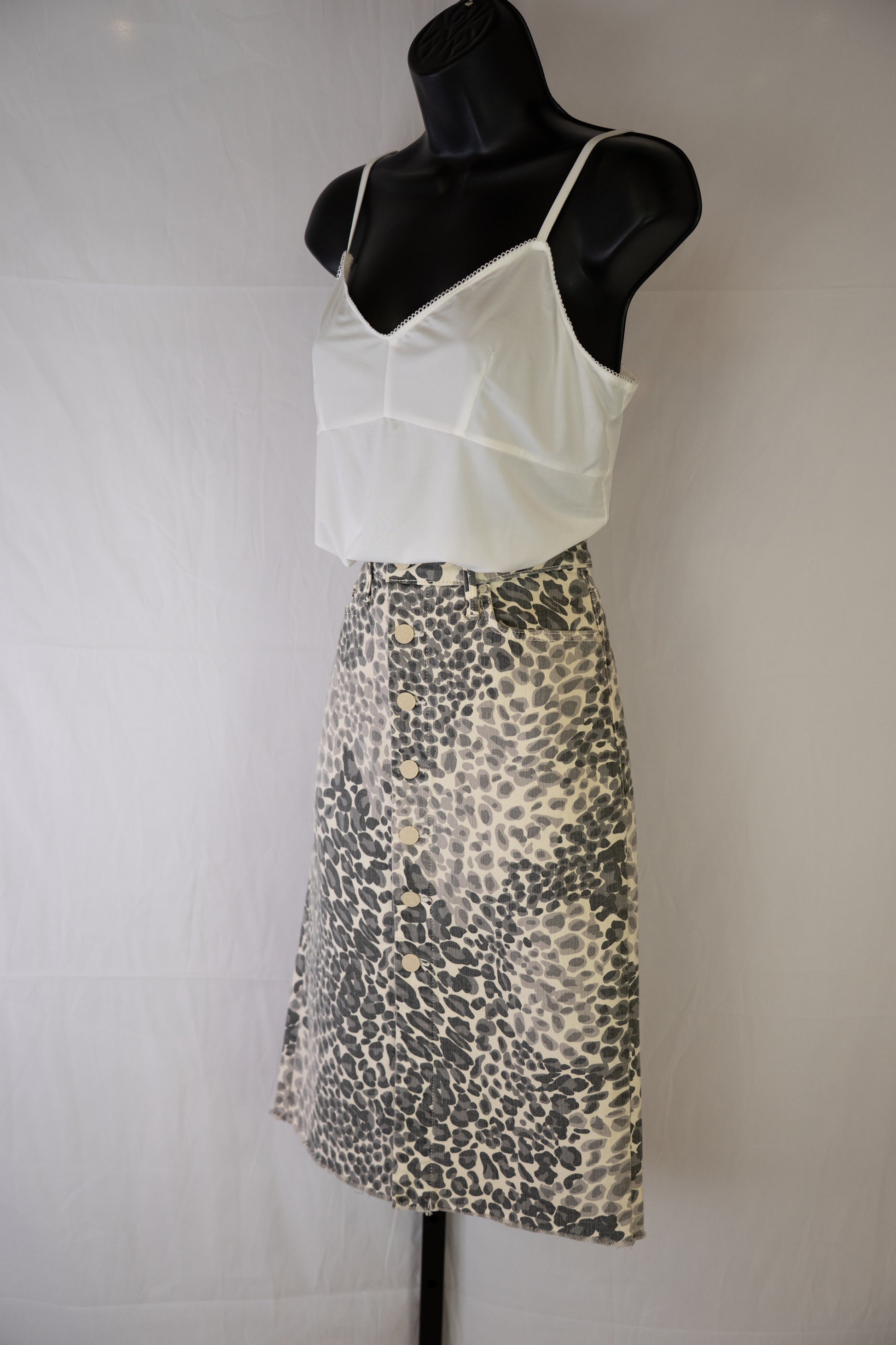 Mother Denim Grey & White Leopard Print High-Waist Button Down Knee-Length Skirt NWT