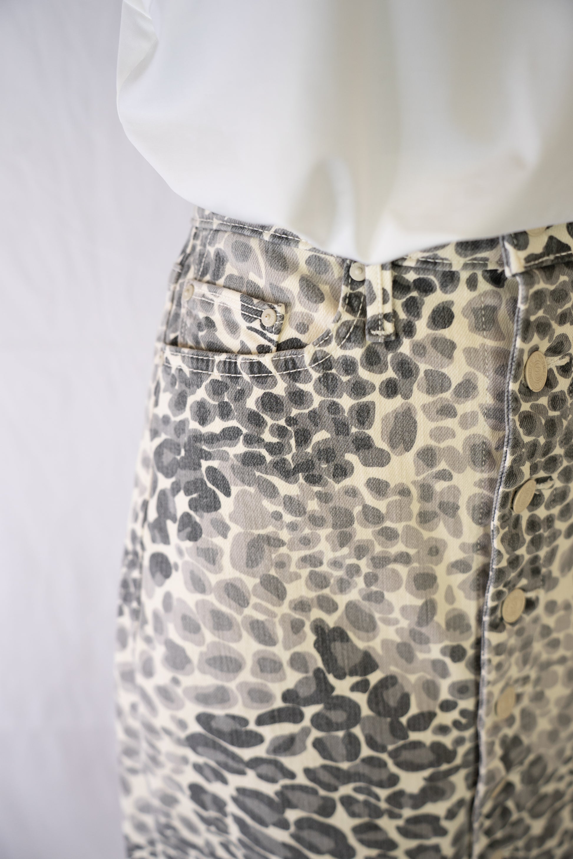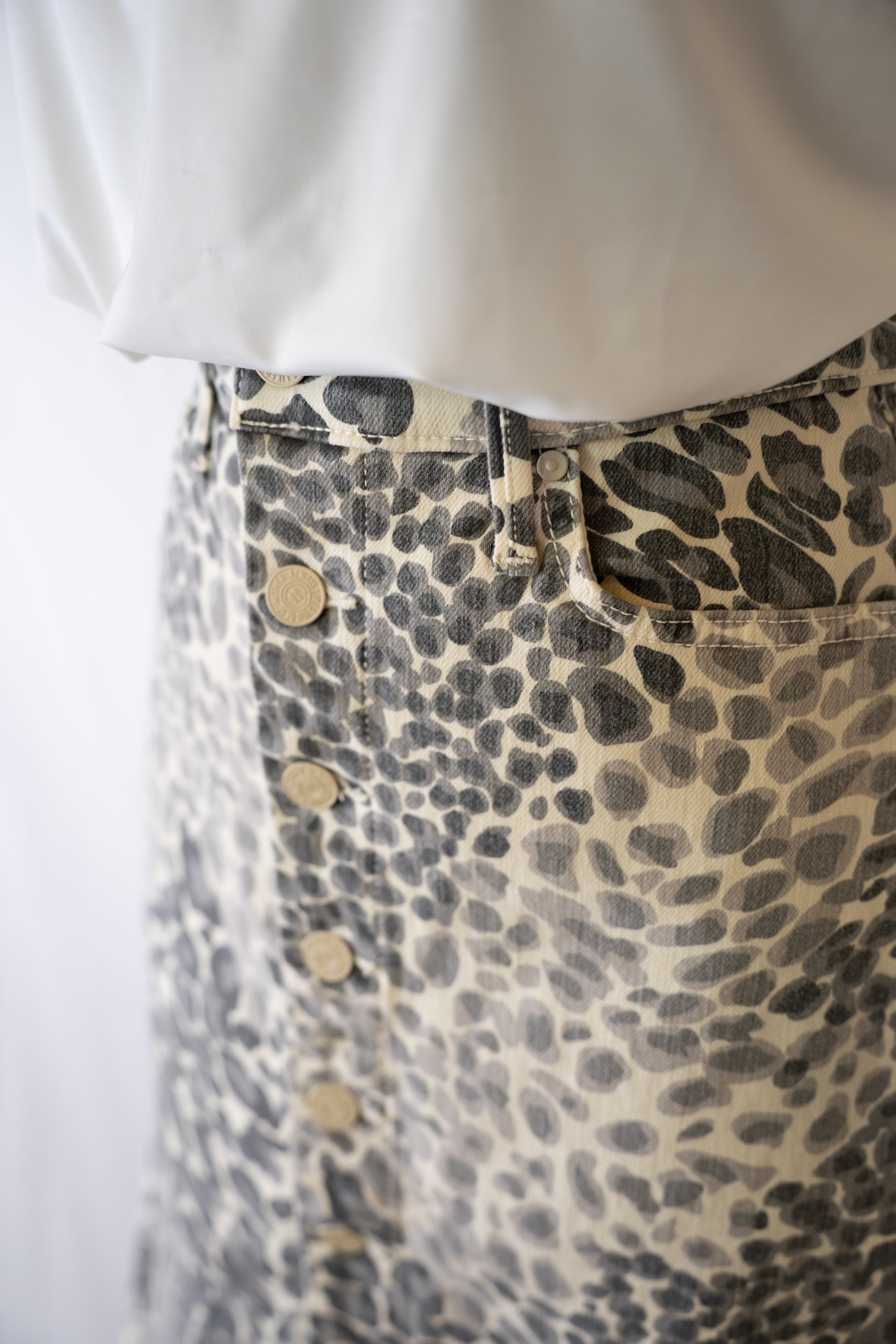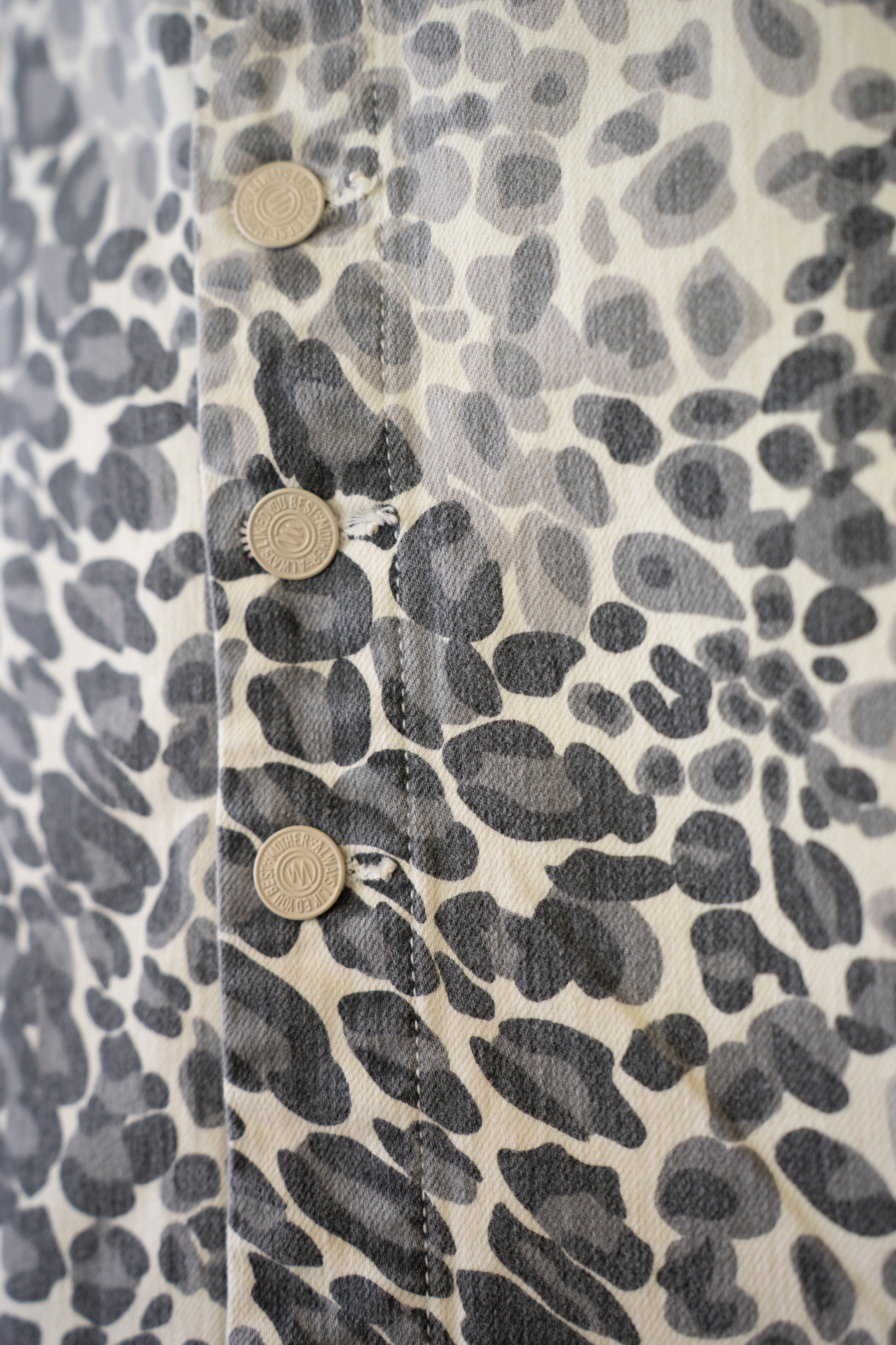 Mother Denim Grey & White Leopard Print High-Waist Button Down Knee-Length Skirt NWT