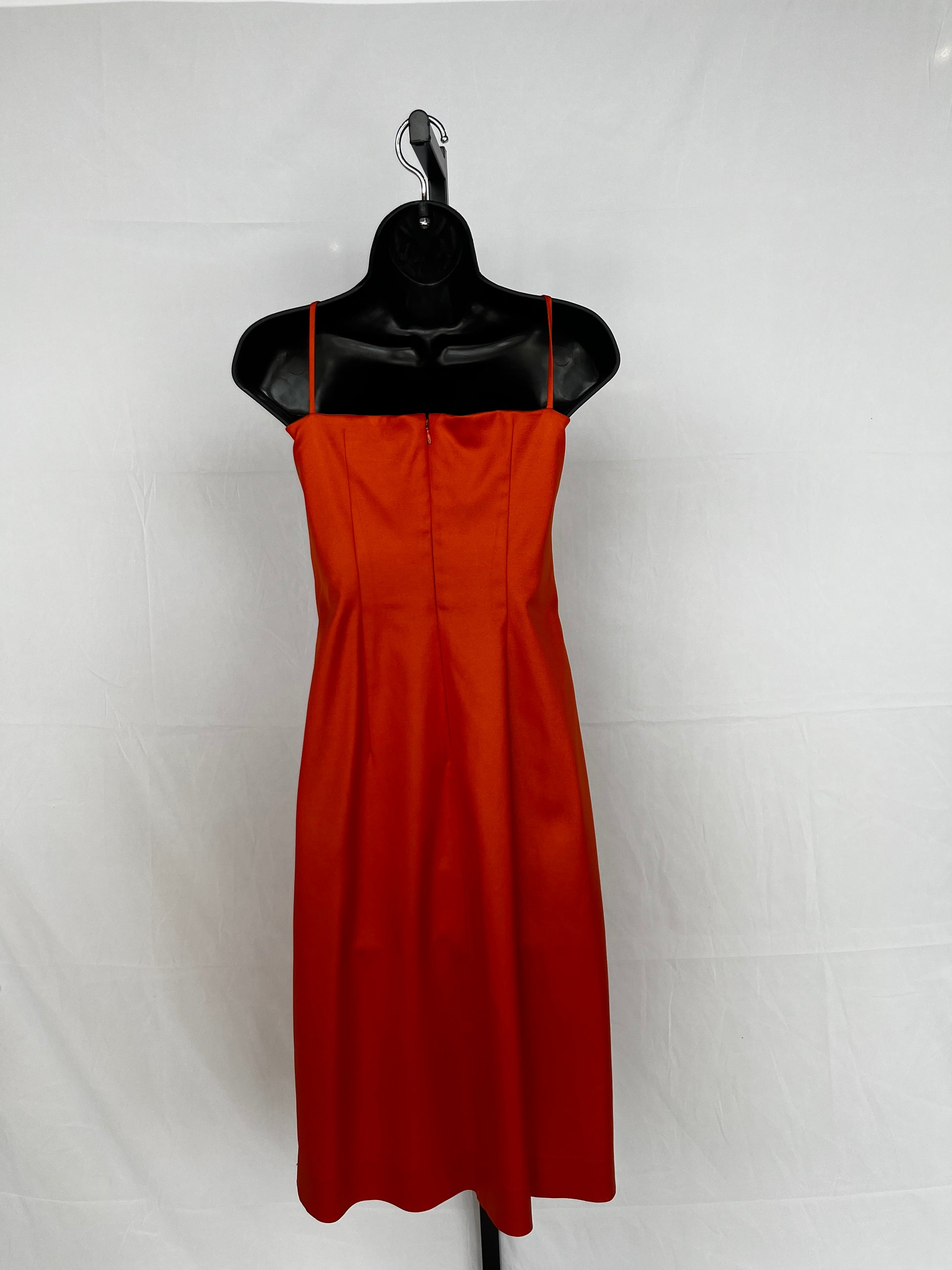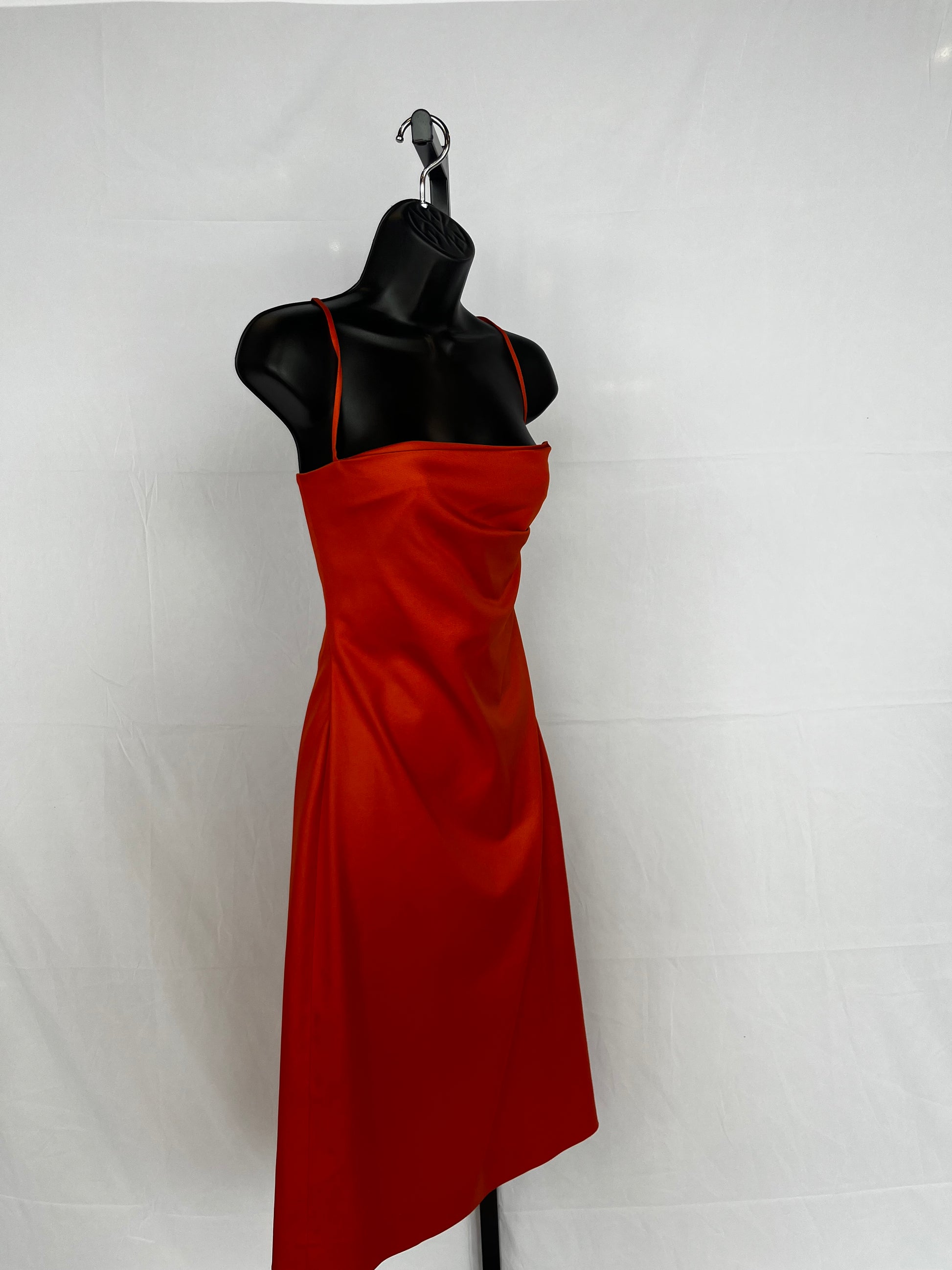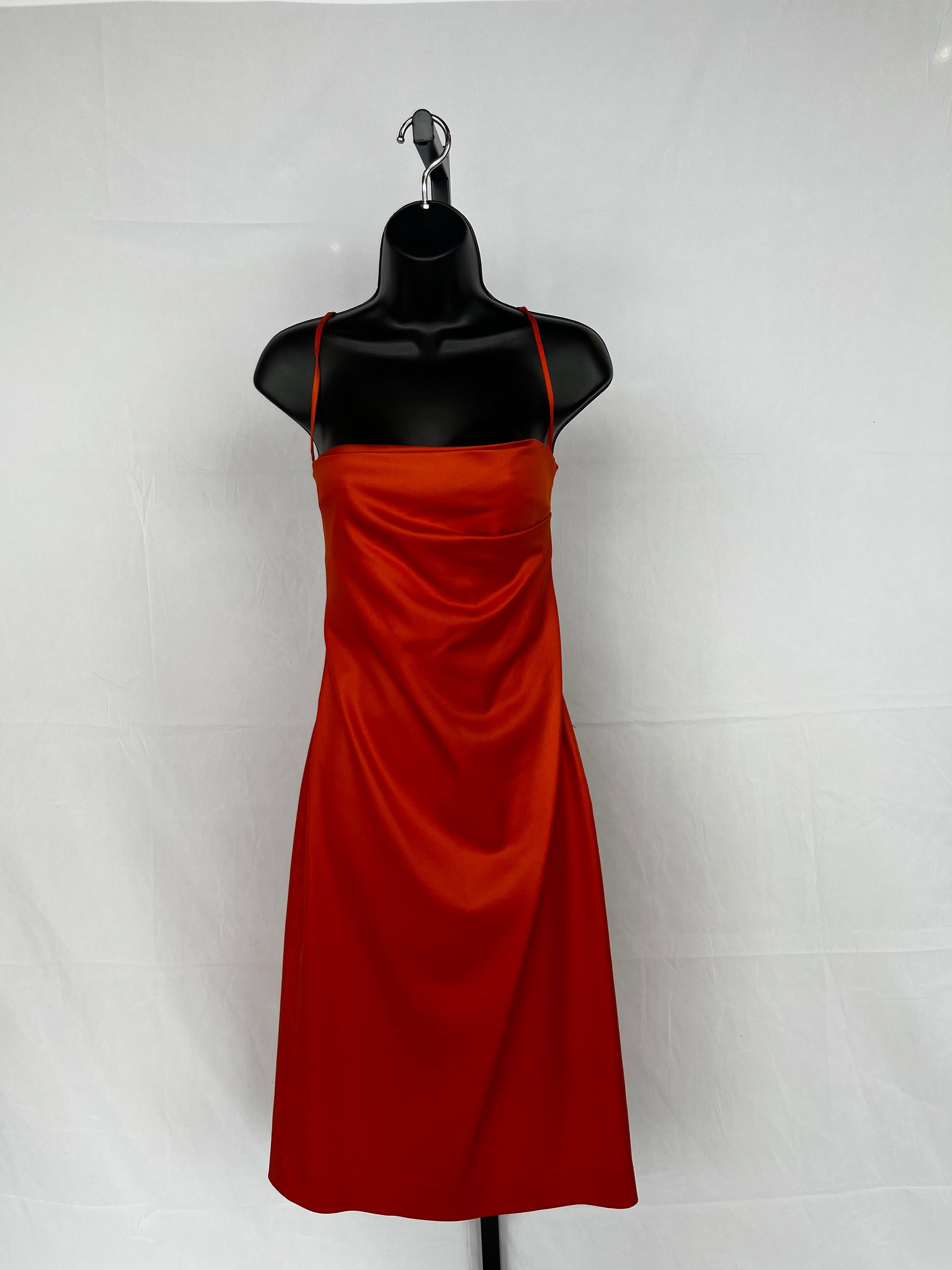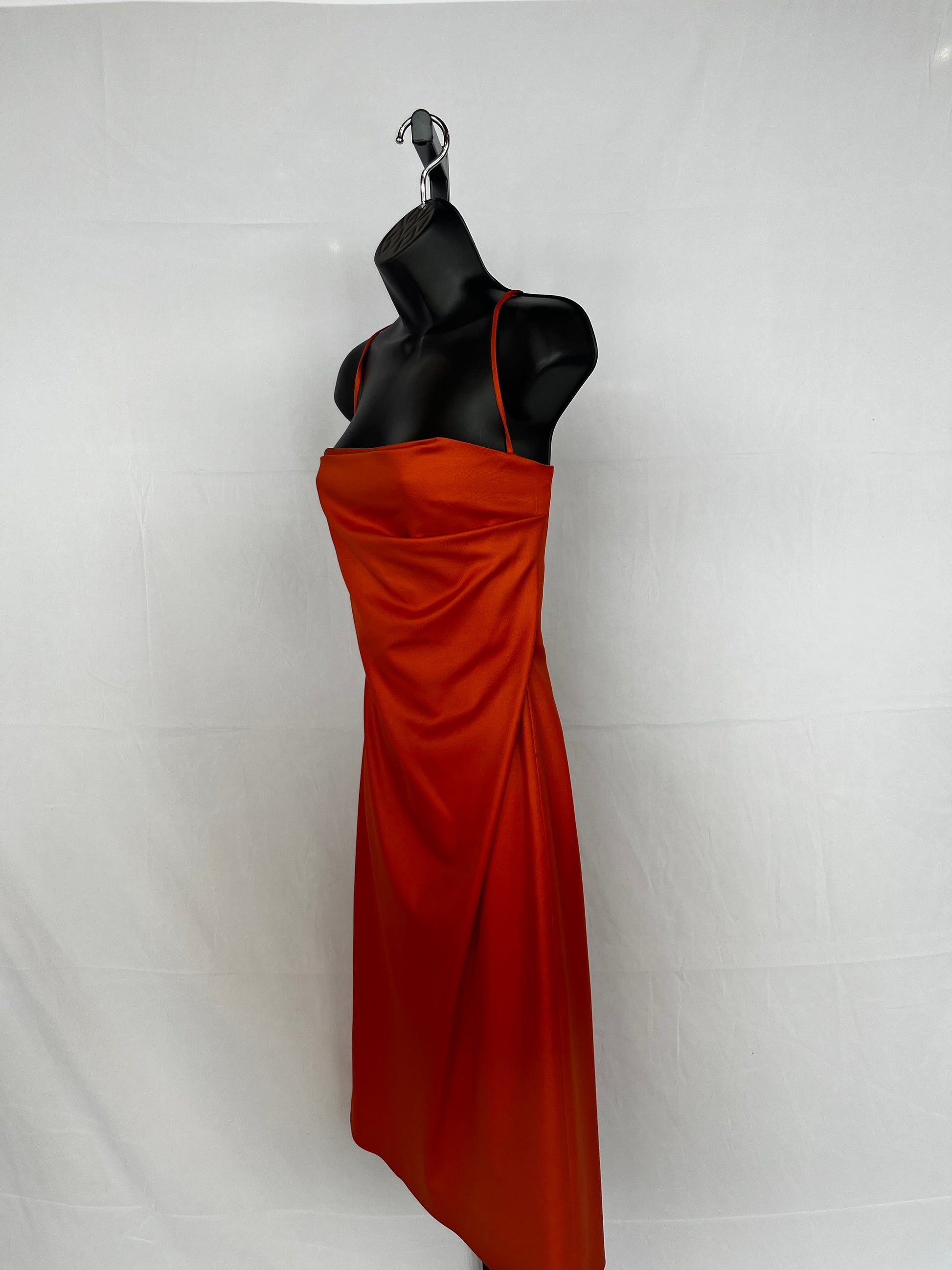 NM Collections Silk Orange Sleeveless Drape Neck Knee-Length Cocktail Dress