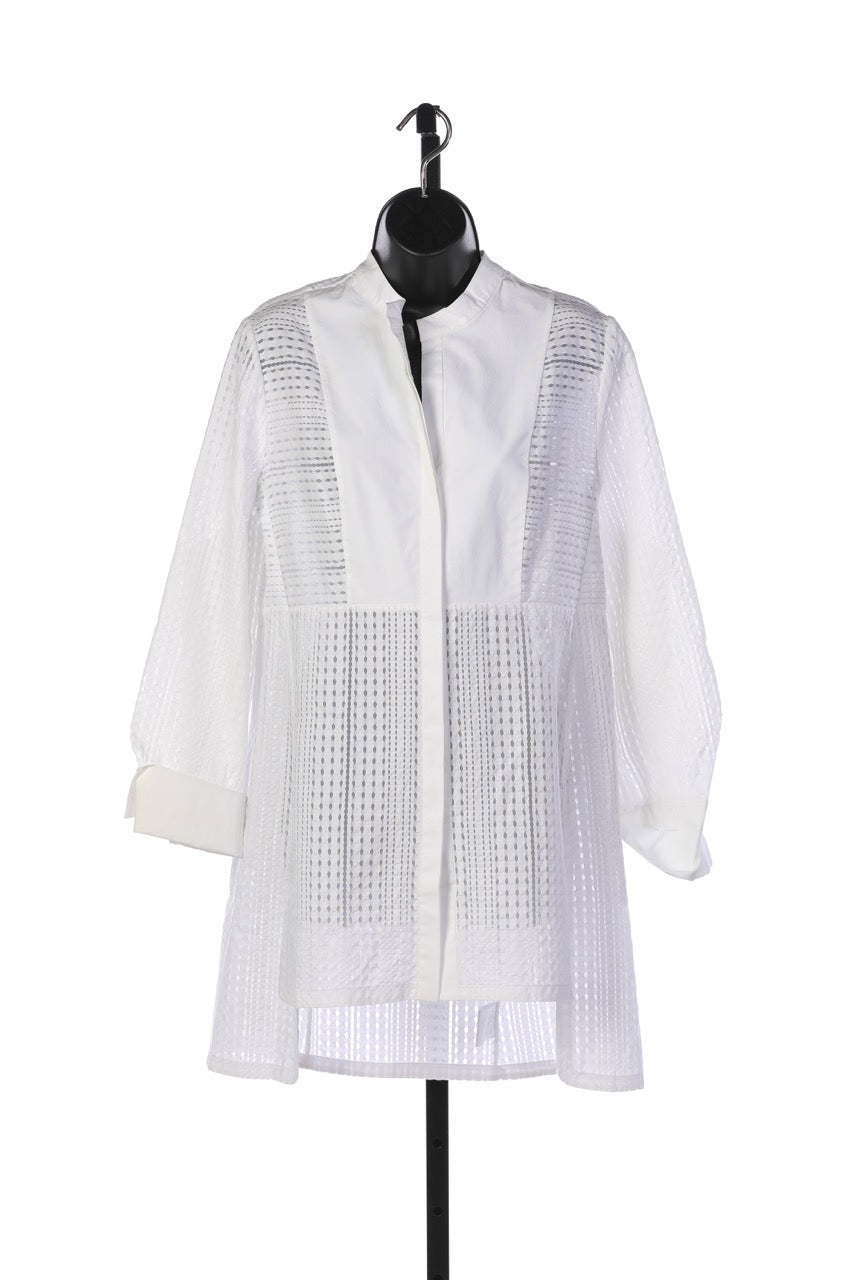 Noon By Noor White Mock Neck Long Sleeve Tunic With Mesh Patterned Cut Outs