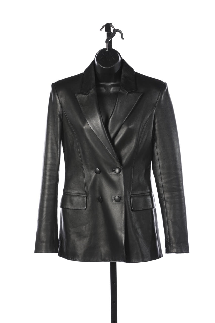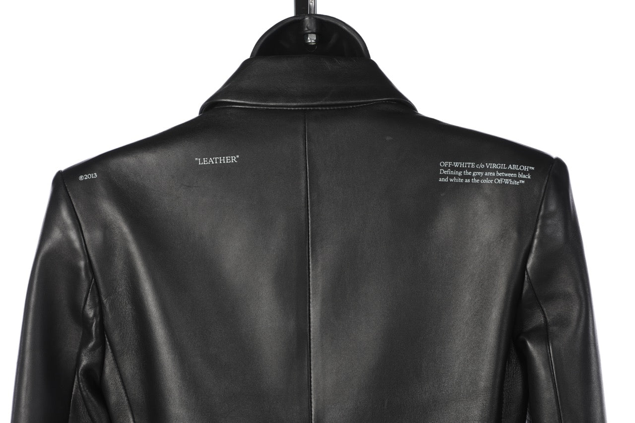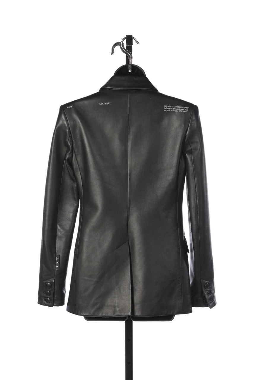 OFF-WHITE Black Leather Double Front Pocket & Closure Blazer w Logo on Back