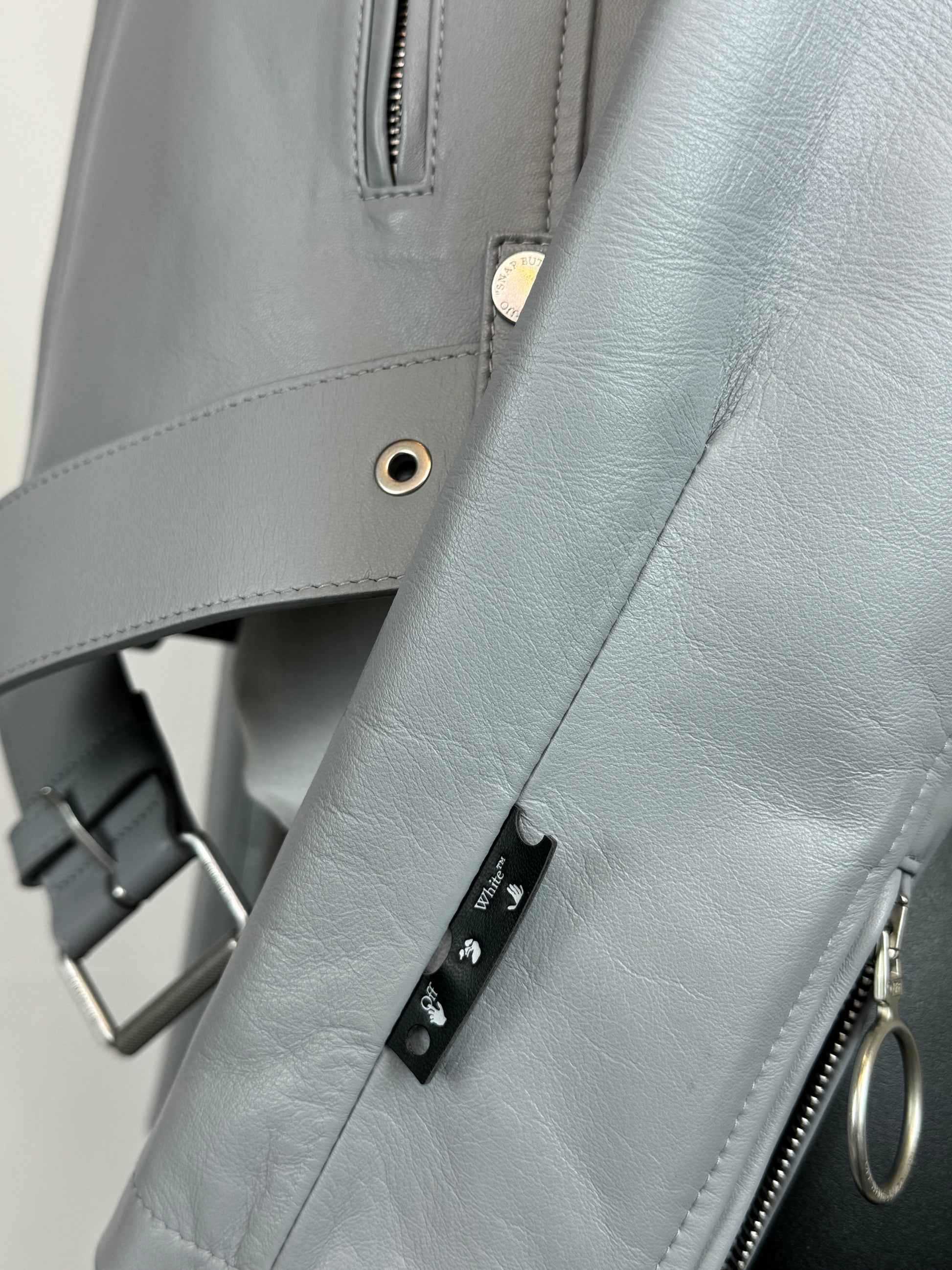 Off-White Leather Grey-Blue Moto jacket w Silver Hardware
