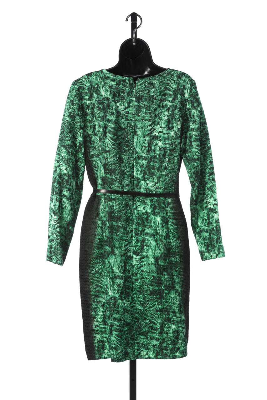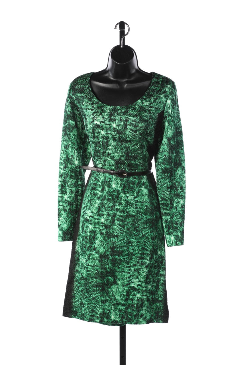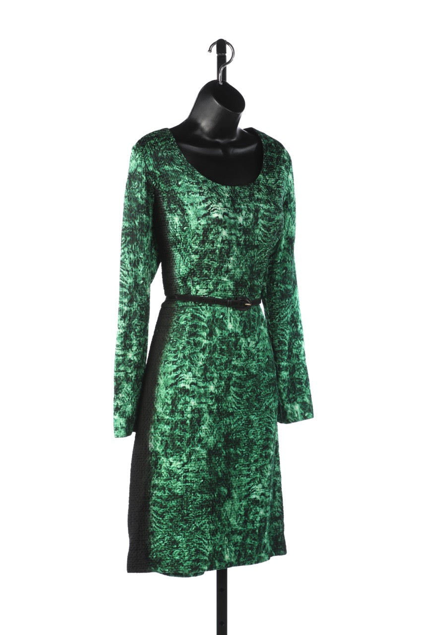 Oscar De La Renta Green + Black Scrunched Tie Dye Long Sleeve Dress NWT