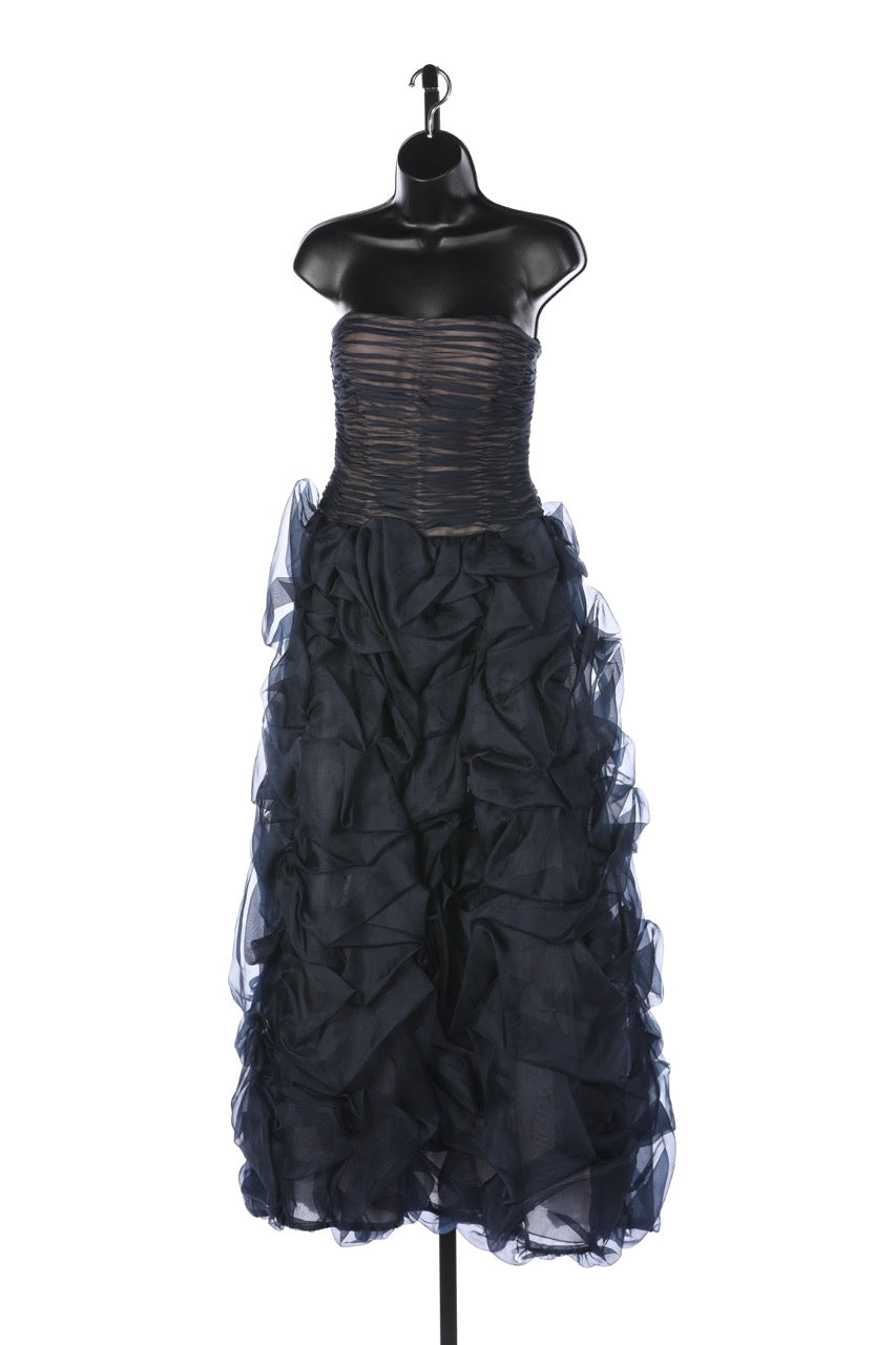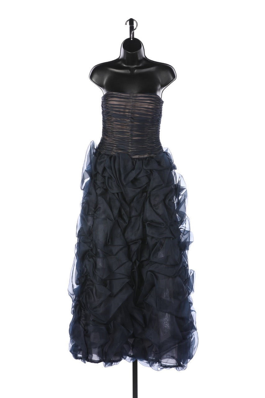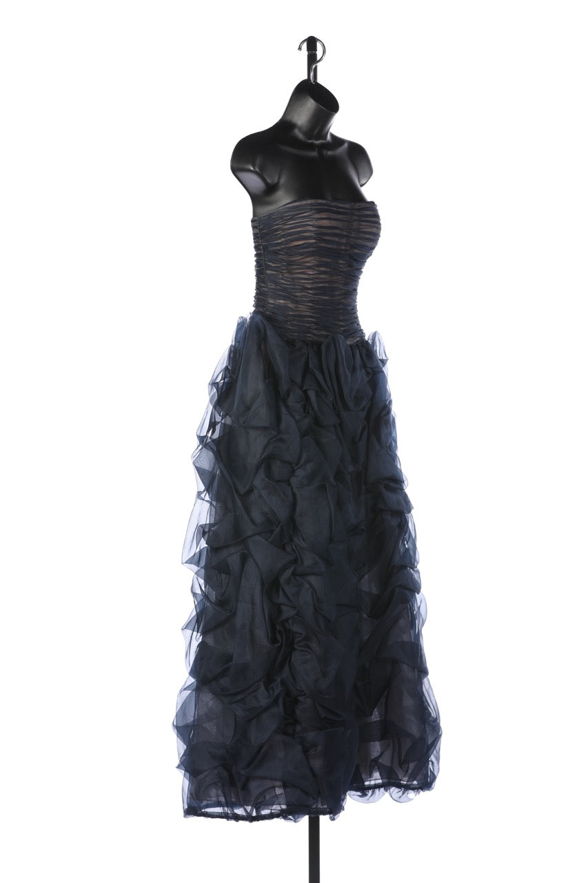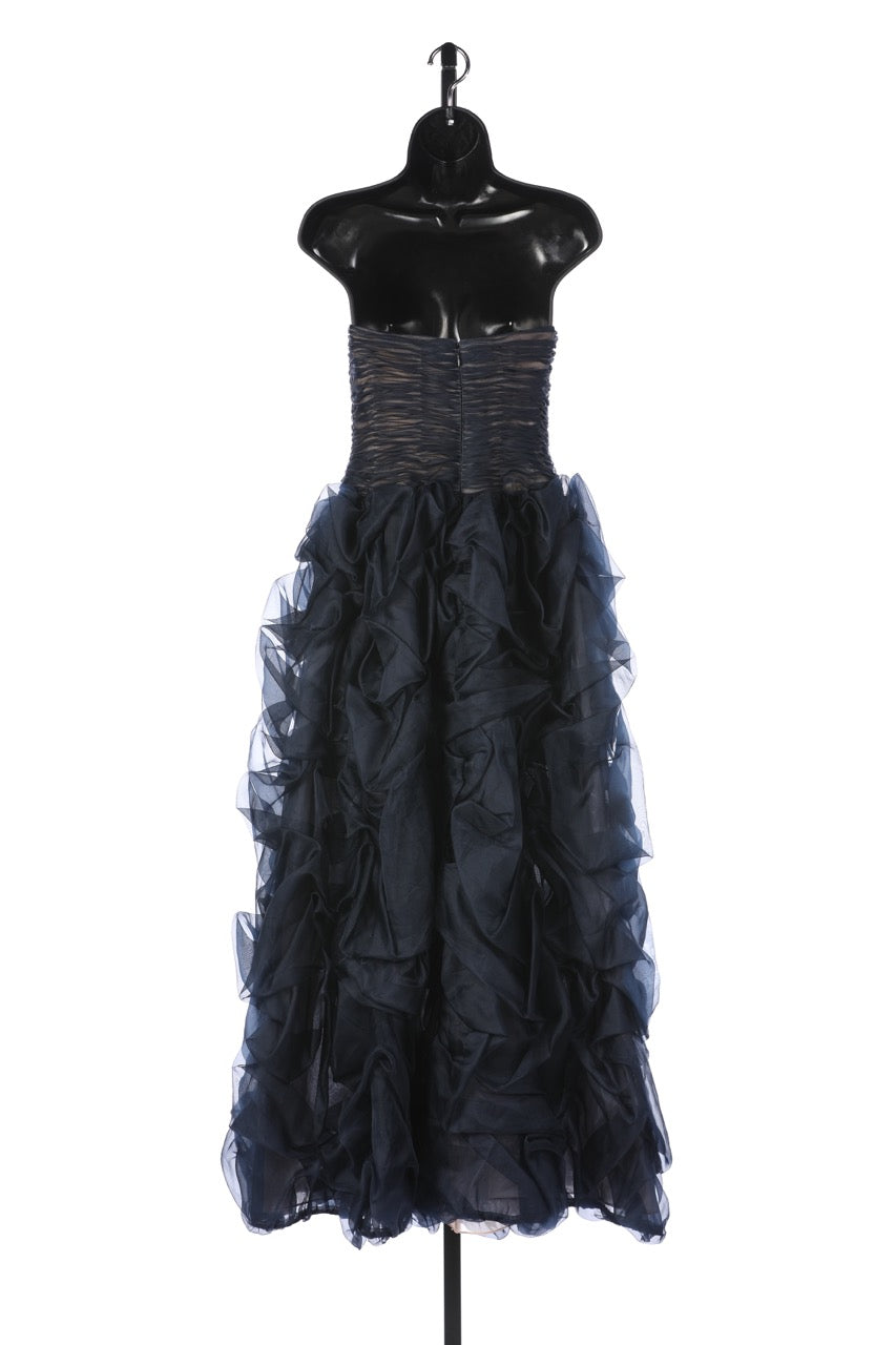 Oscar De La Renta Navy Strapless Chiffon Gathered Body w Ruched Detail Full-Length Gown