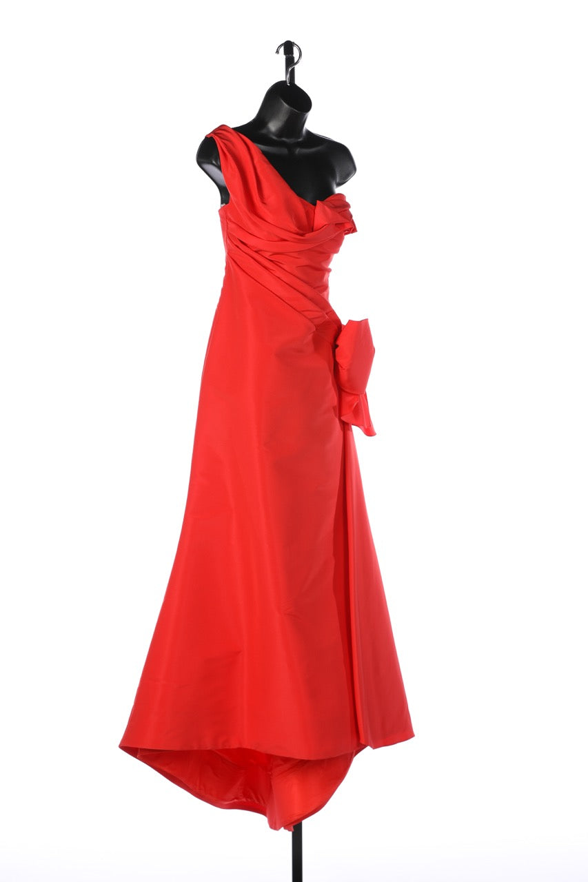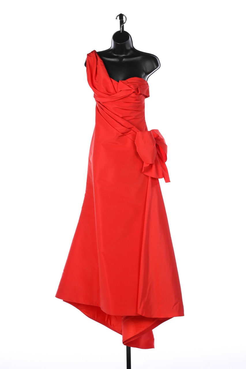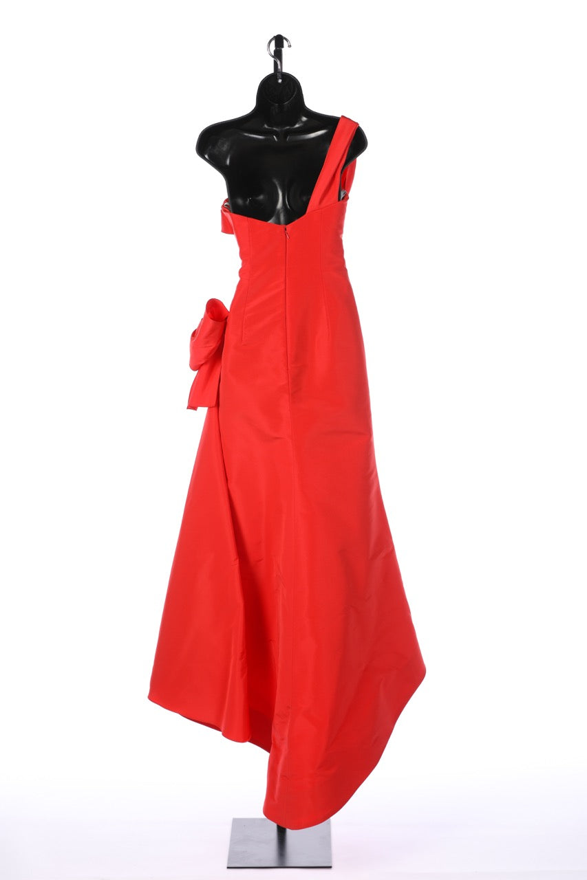 Oscar De La Renta Orange Single Strap Side Bow Tie Flare Full-Length Gown w Built In Bra NWT