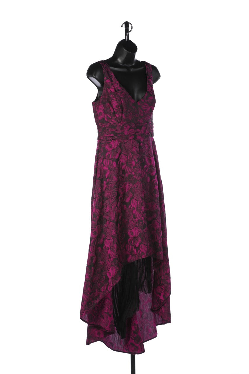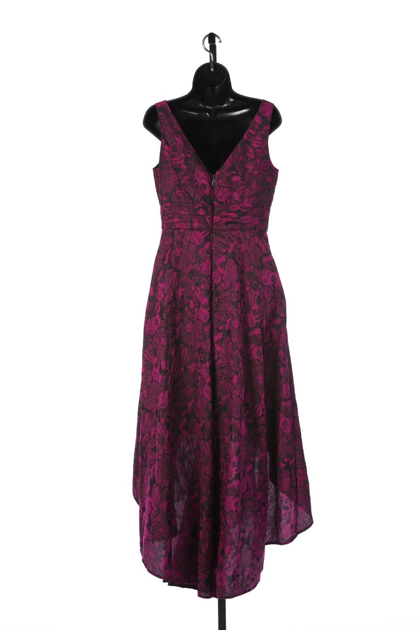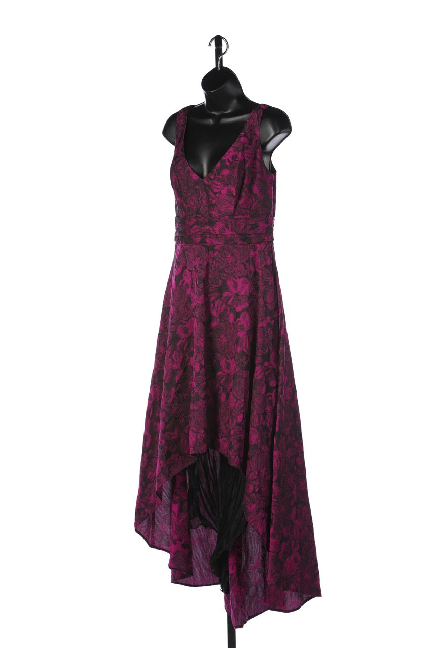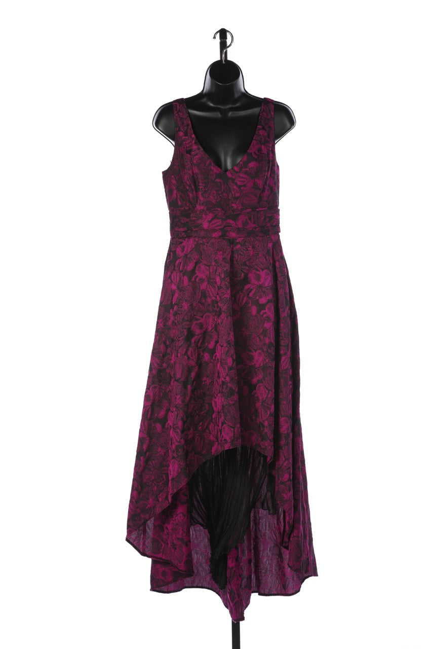 Pamella Roland Pink Purple Floral V-Neck Sleeveless Evening Gown w Asymmetrical Hem
