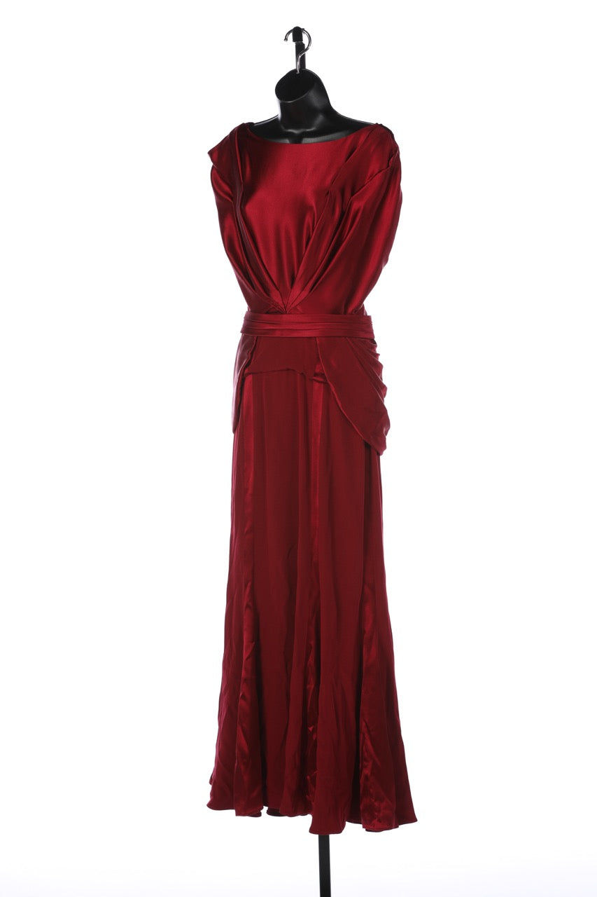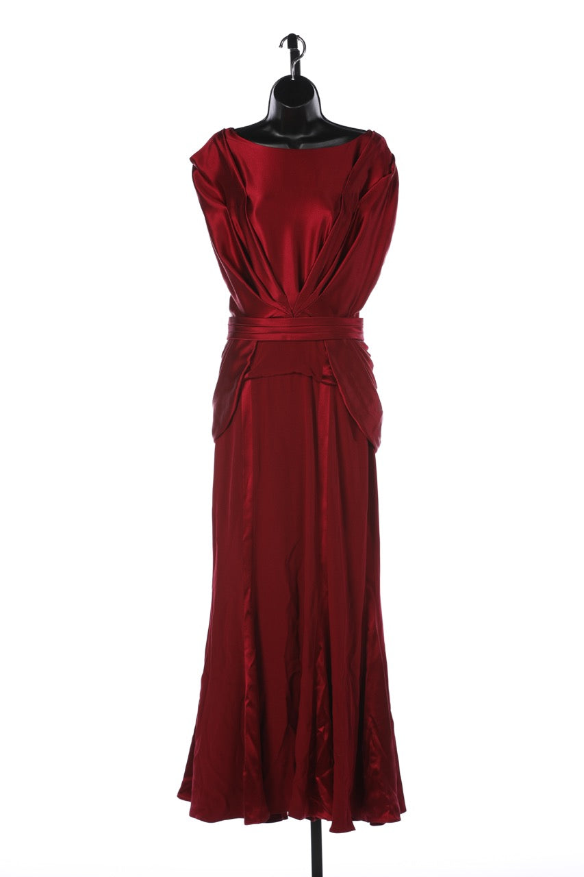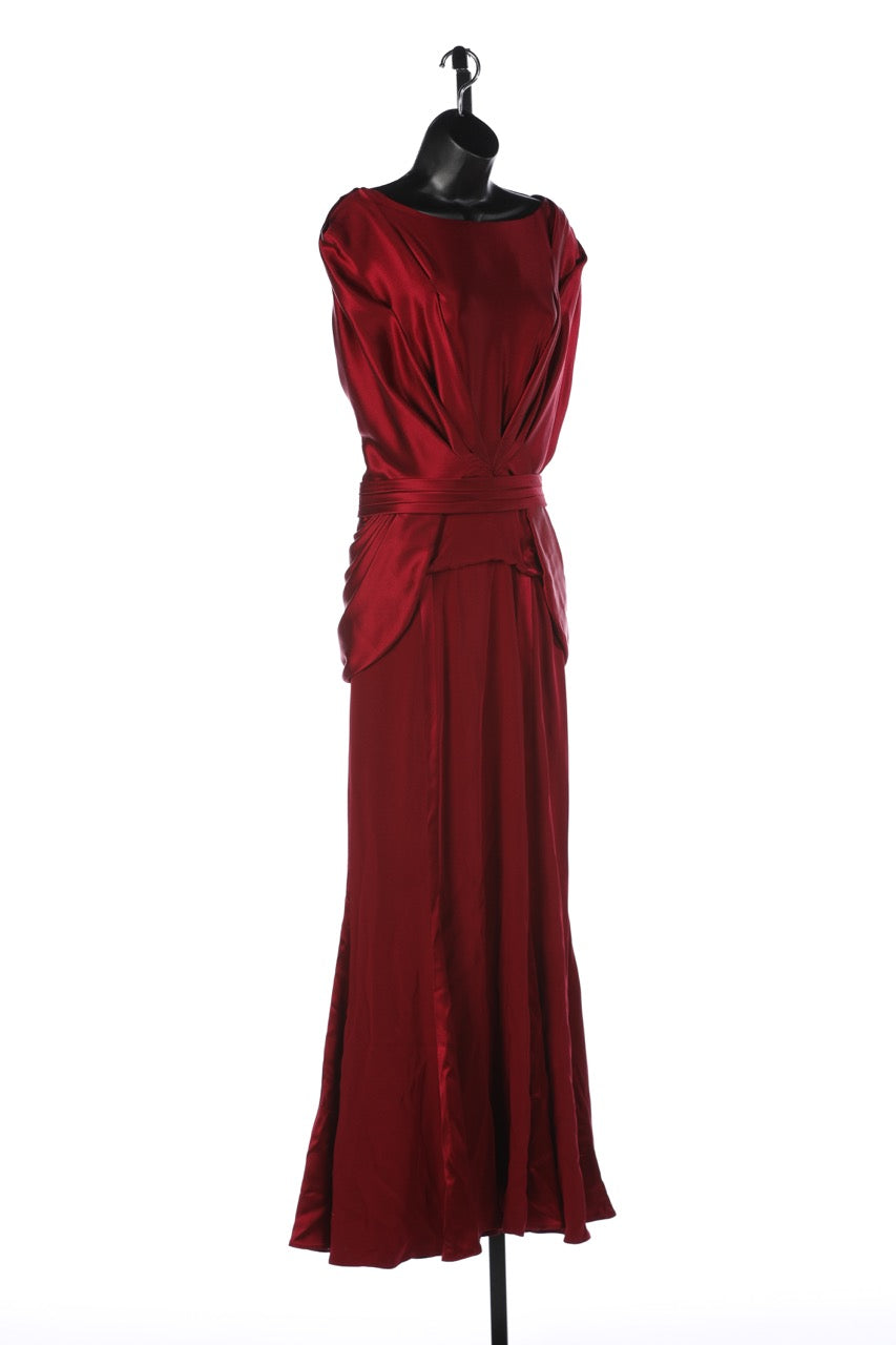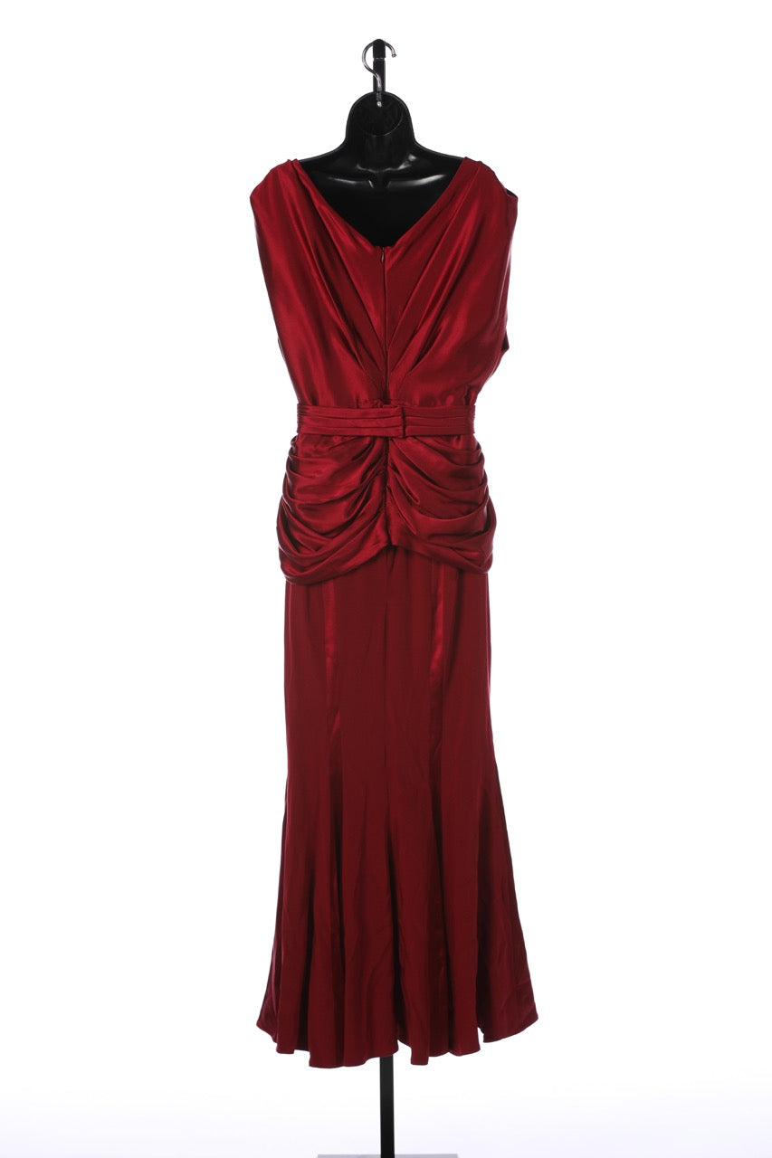 Pamella Roland Red Silk Gown w/ Waist Draping & Pleated Belt