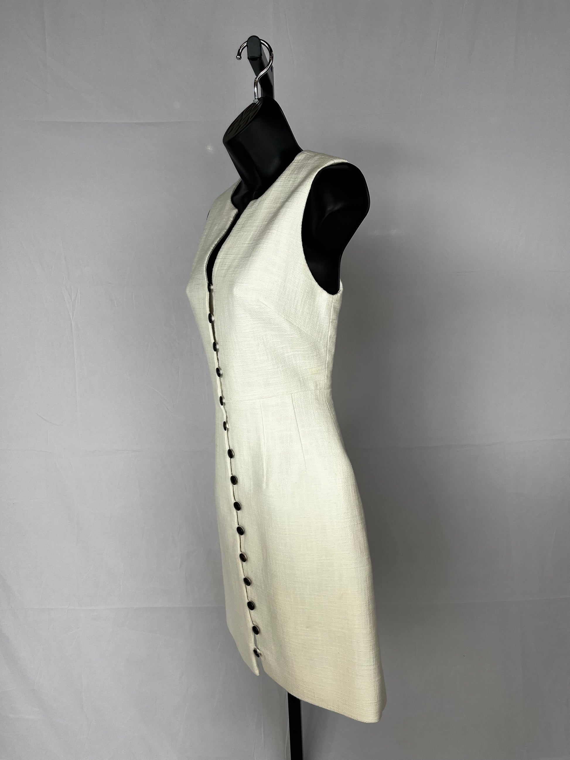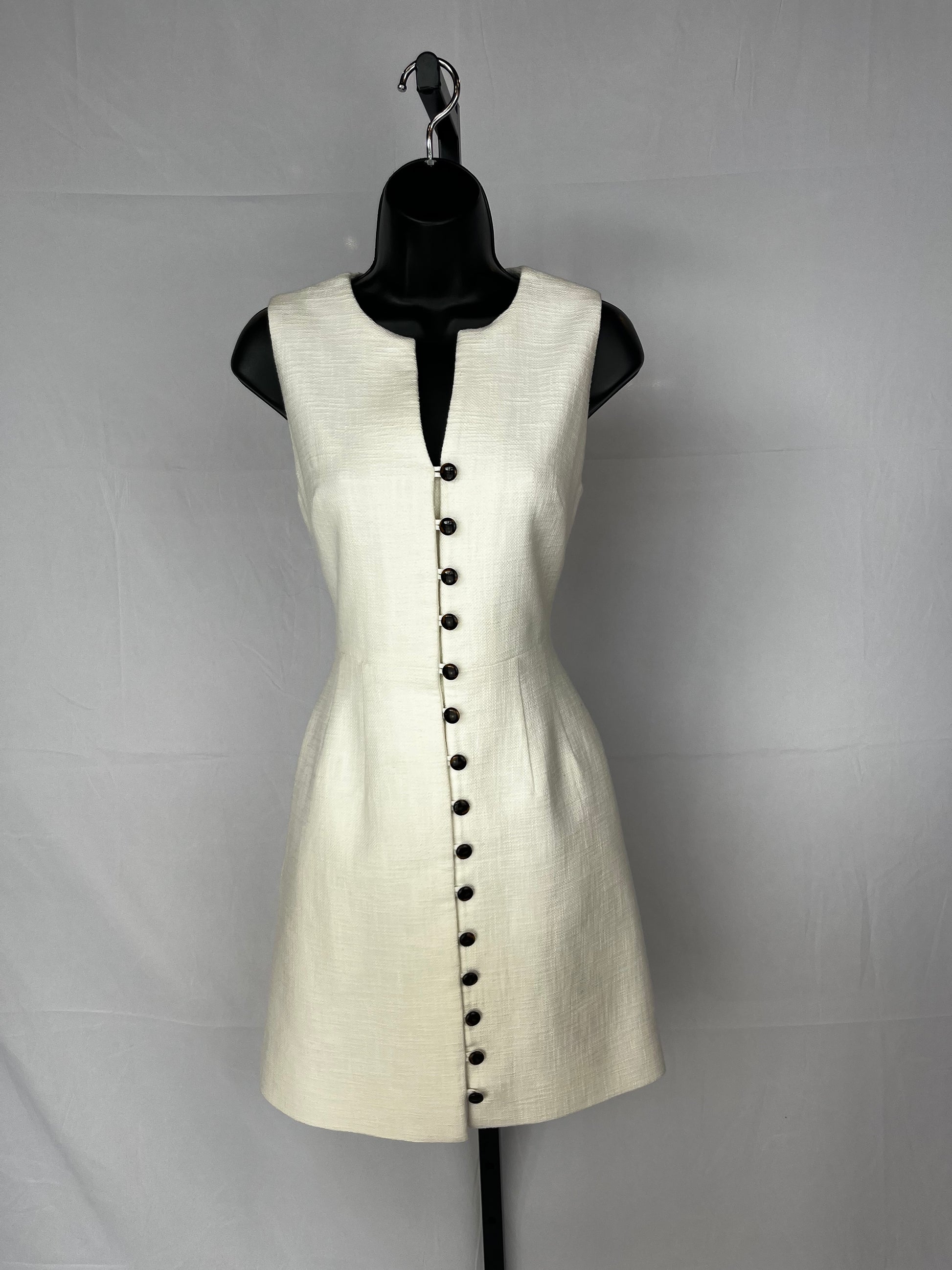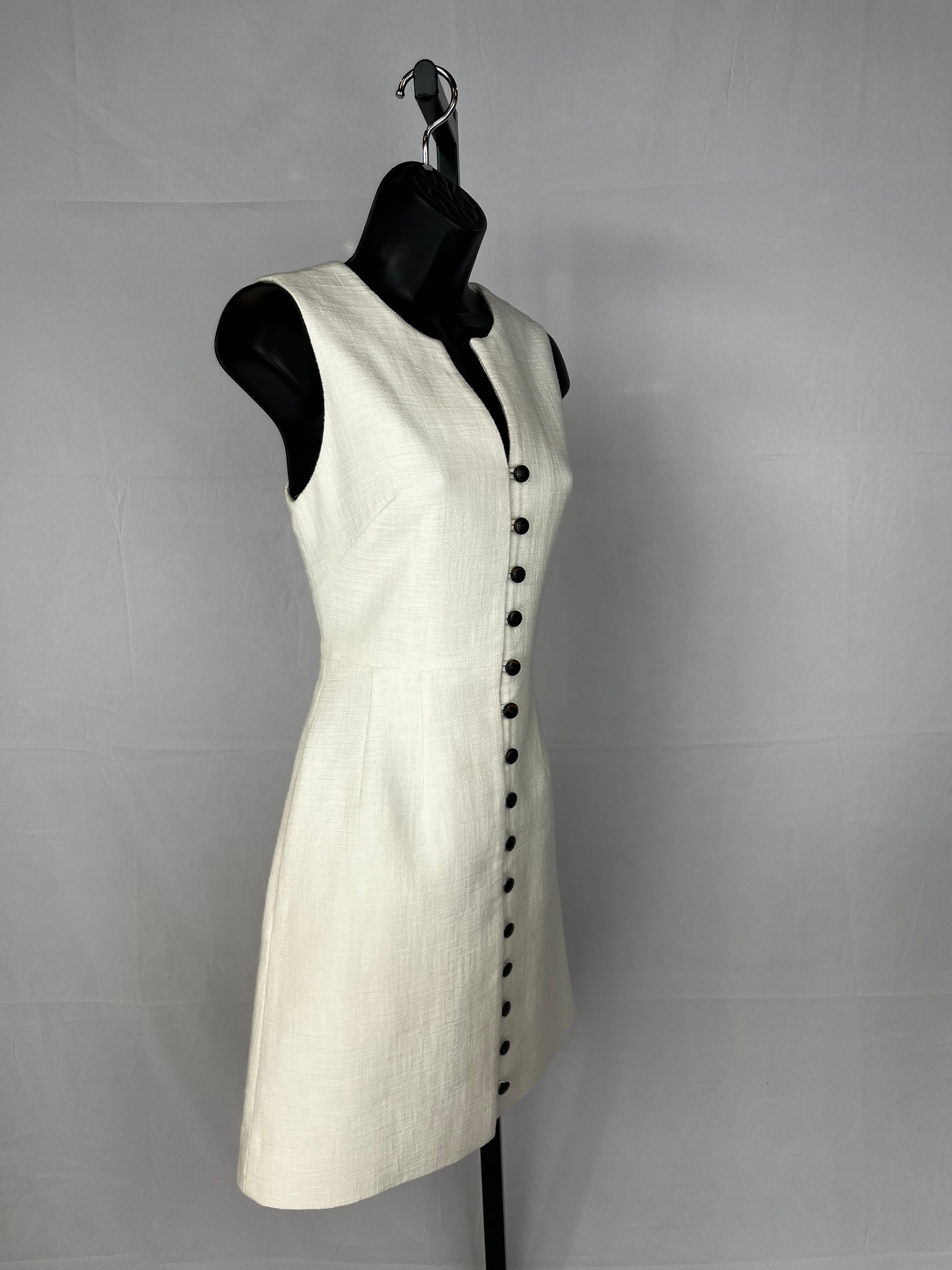Pearl by Lela Rose White Tweed Button Down Sleeveless Mini Dress