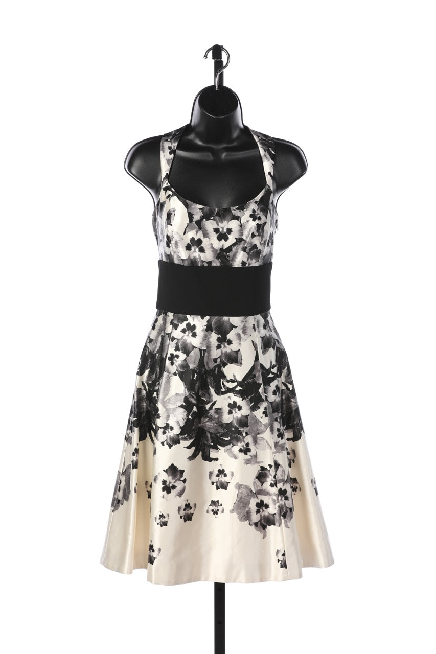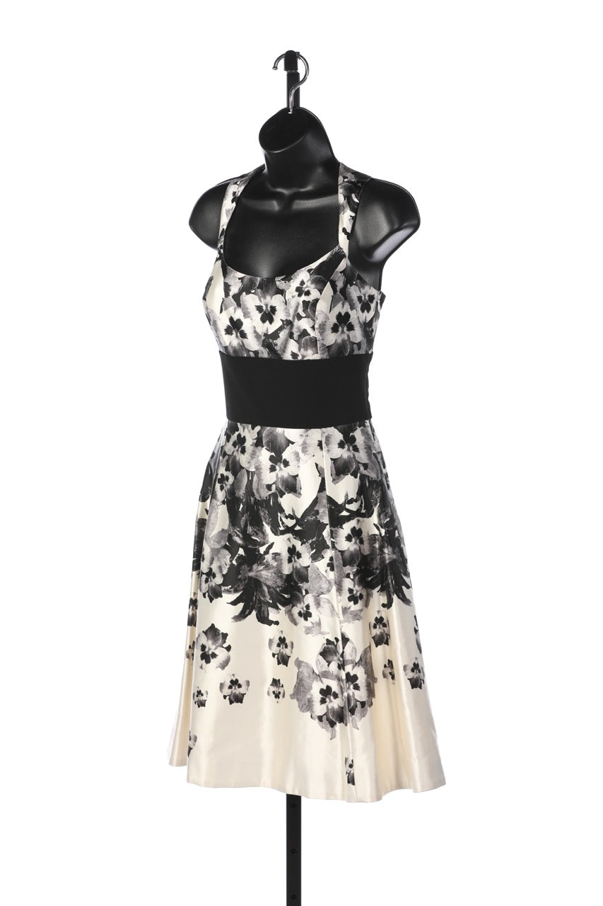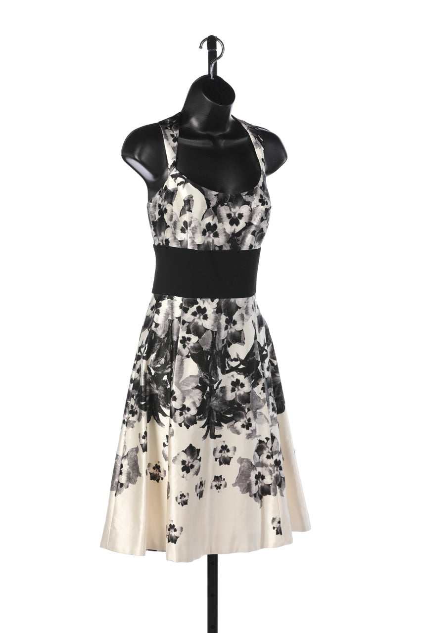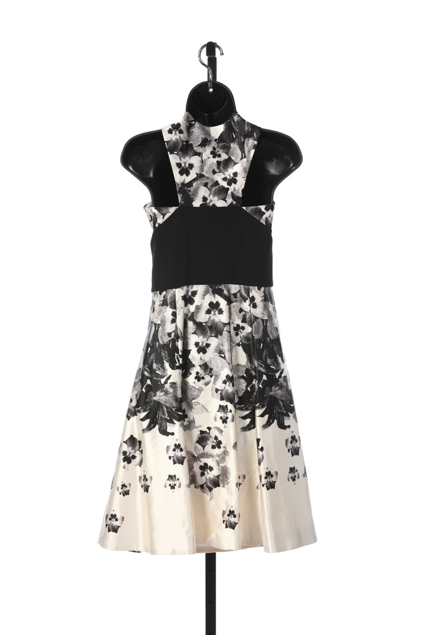 Prabal Gurung Floral Scoop Neck w Black Waistband Knee-Length Dress