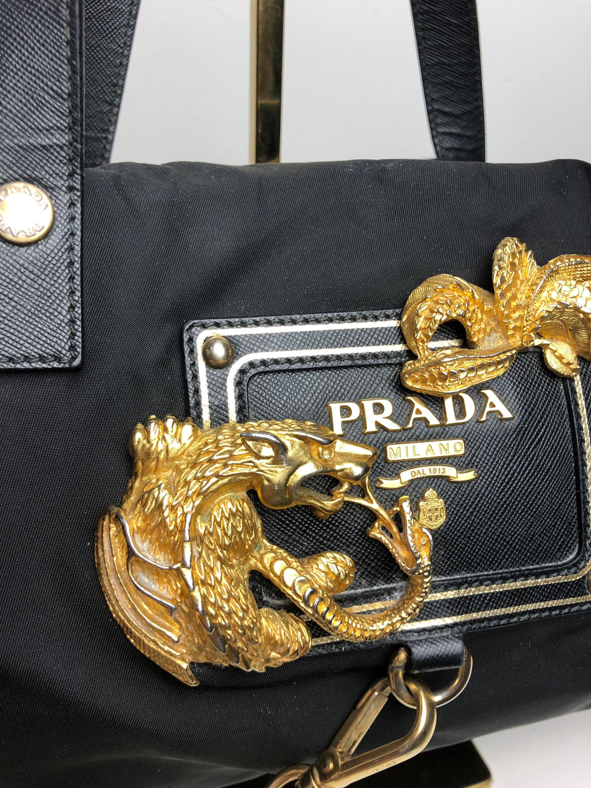 Prada Tessuto Nylon Saffiano Animalier Shoulder Bag