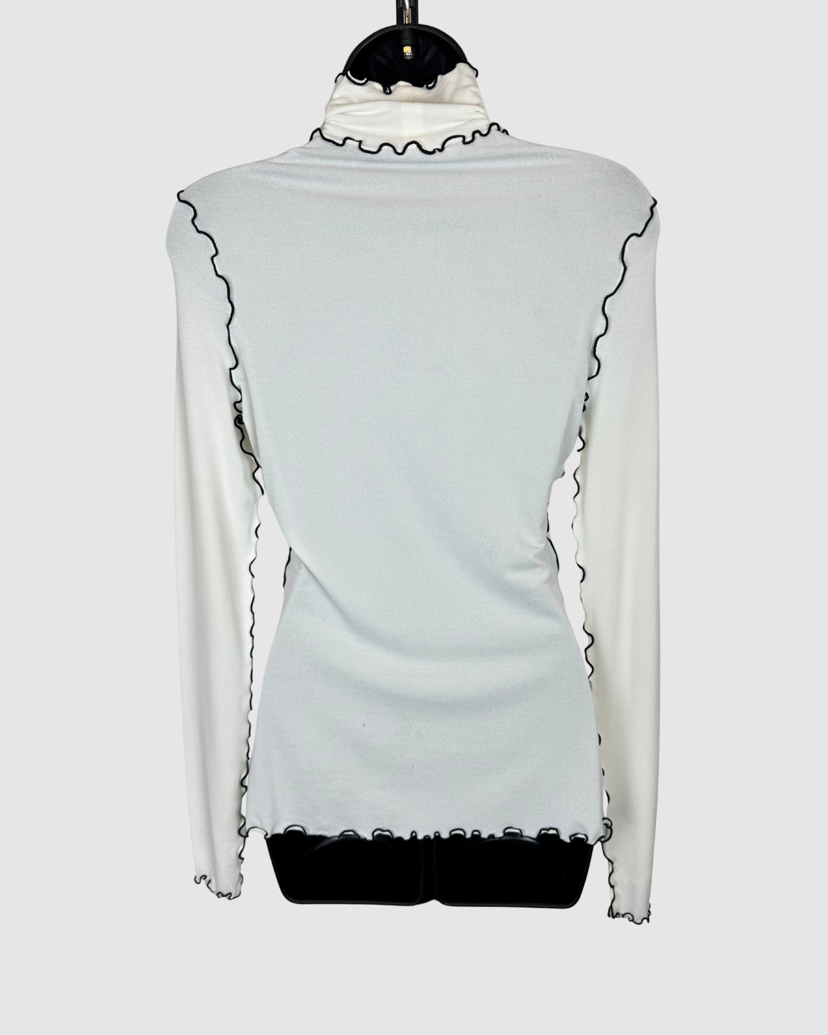Proenza Schouler Cream w Black Ruffle Trim Turtleneck Long Sleeve Top
