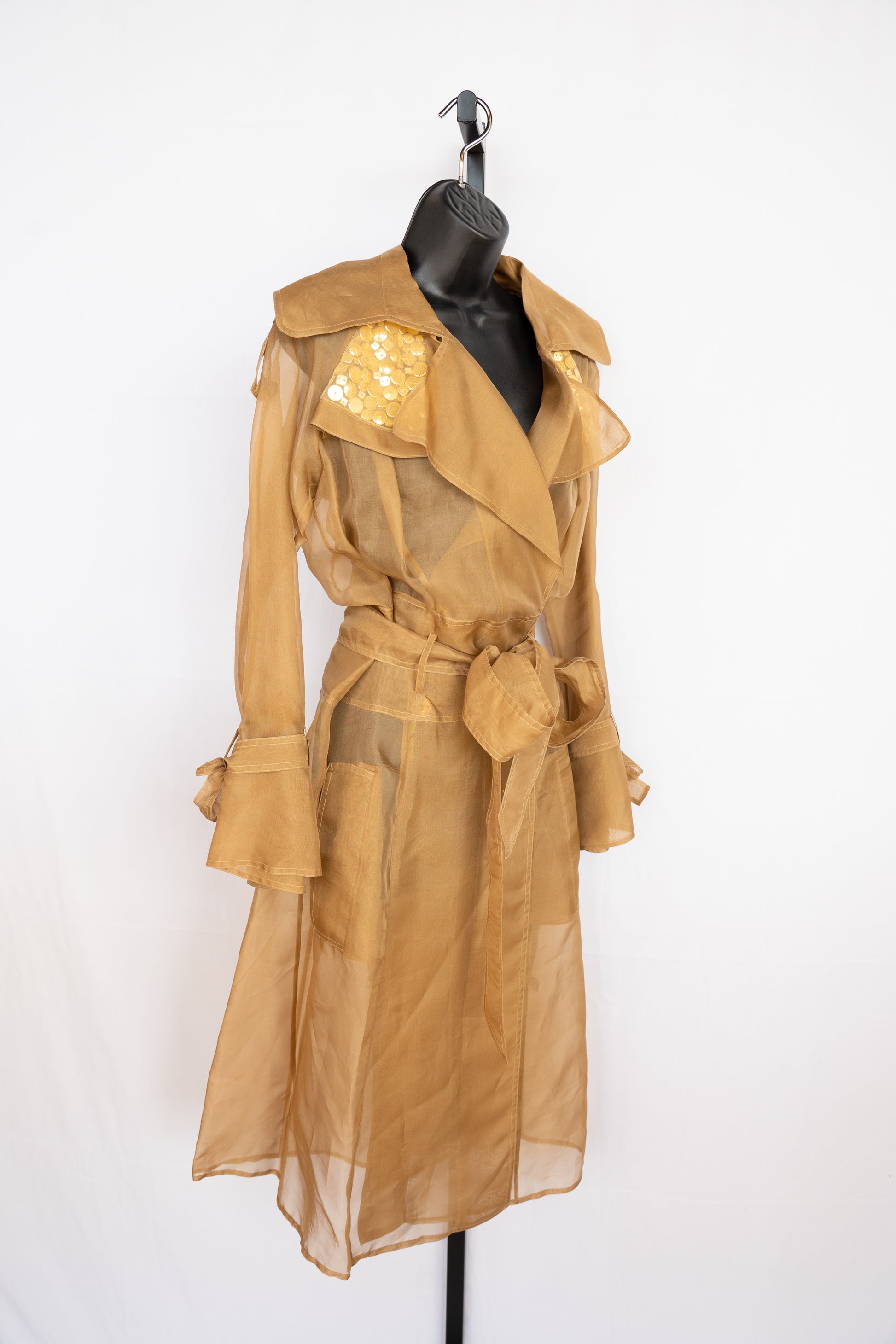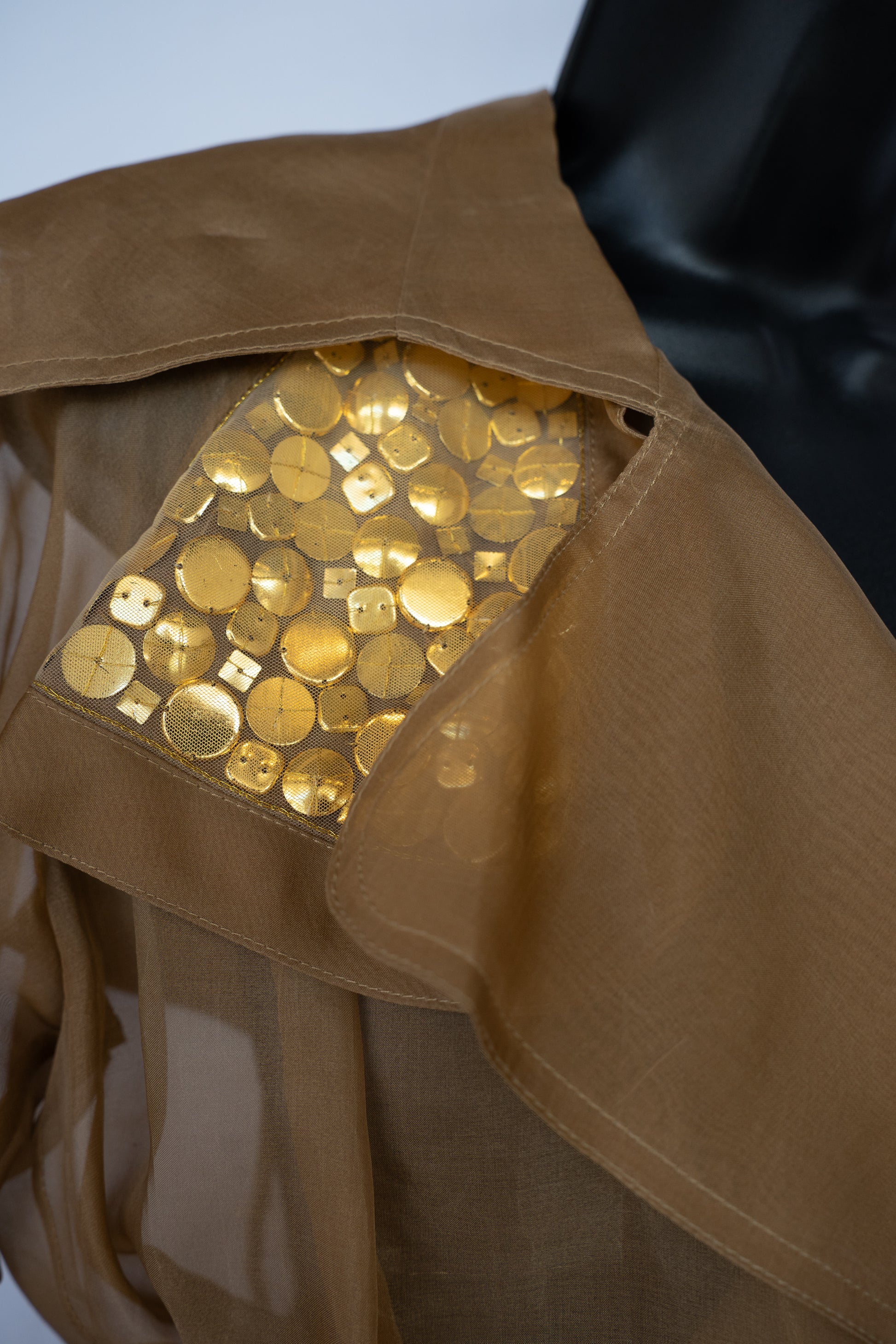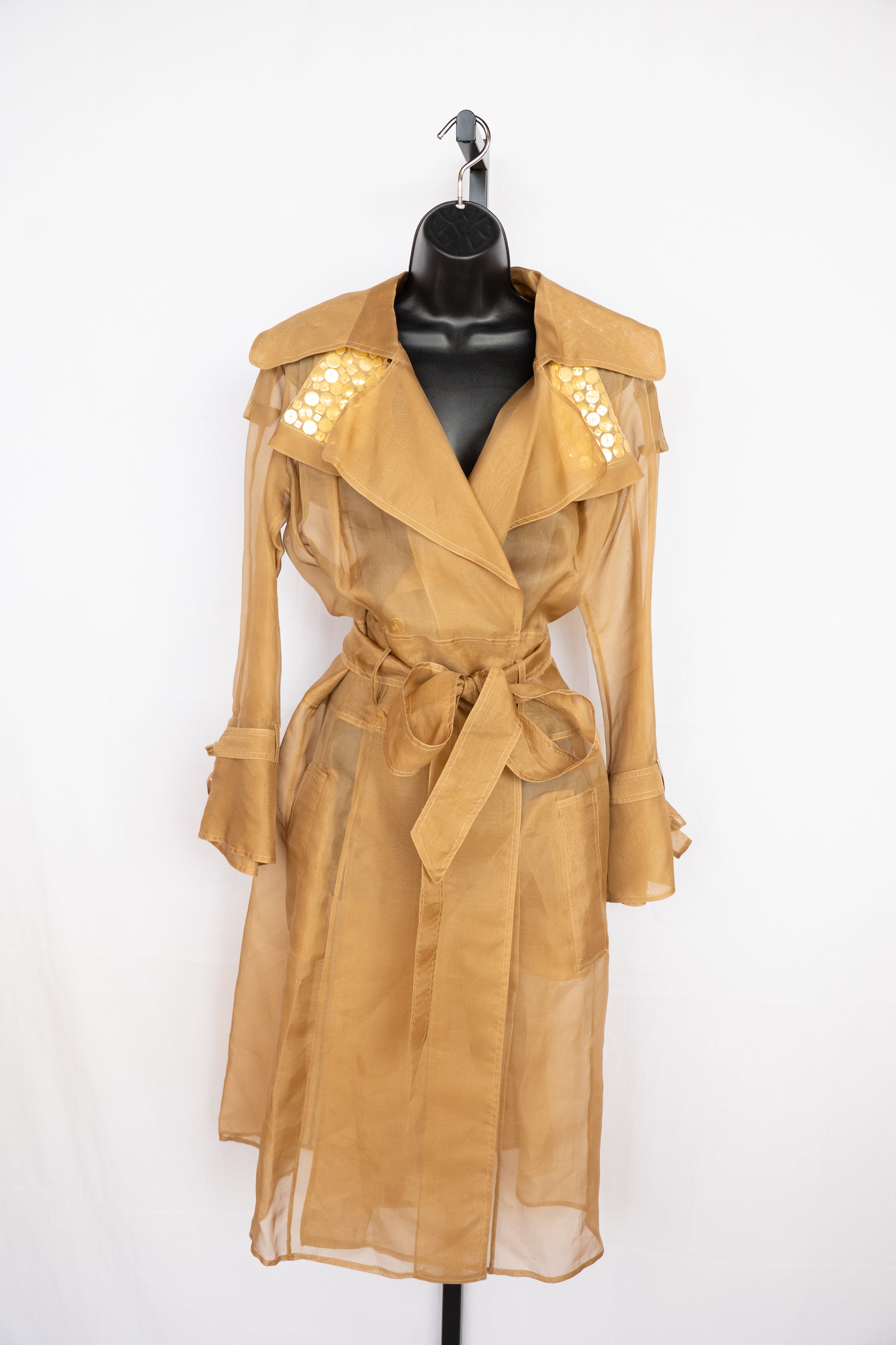 Rachel Roy Neutral Tan Sheer Long Sleeve Full-Length Jacket w Gold Button Detail NWT