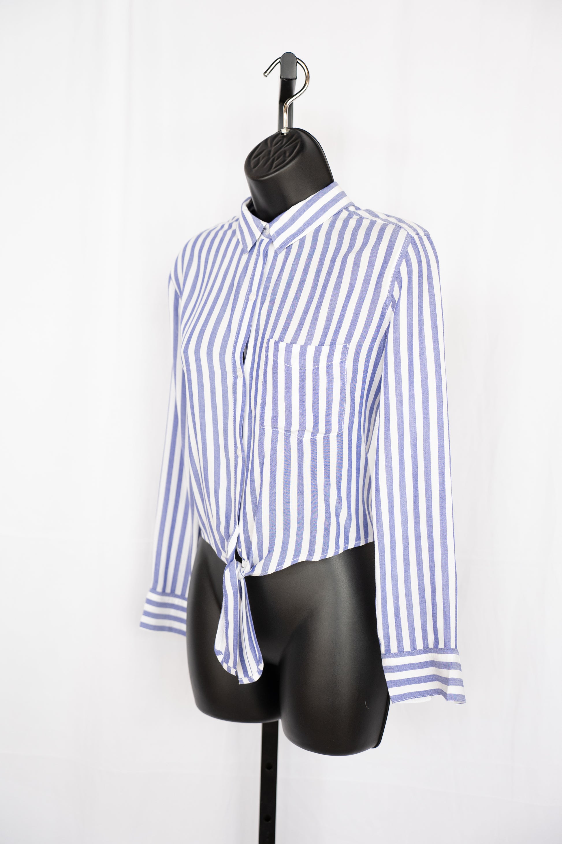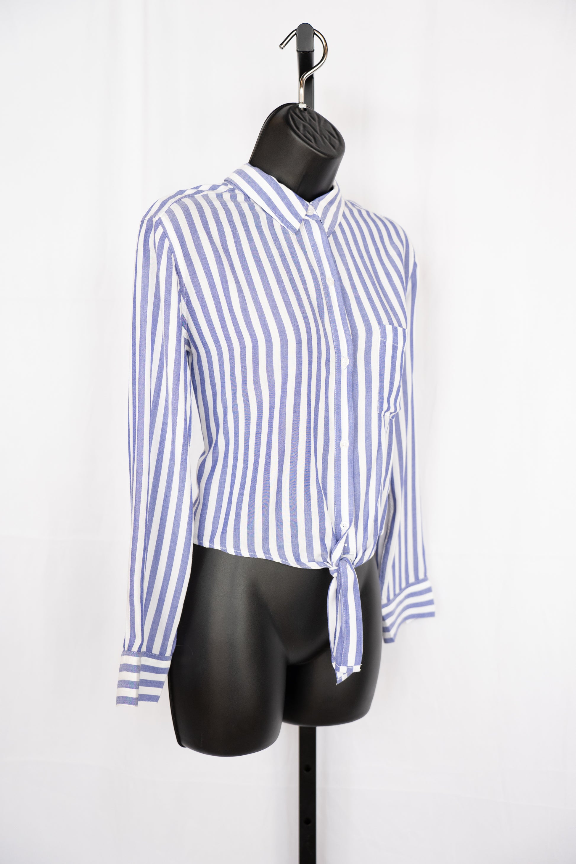 Rails Blue & white Striped Long Sleeve Knot Tie Button Up Blouse