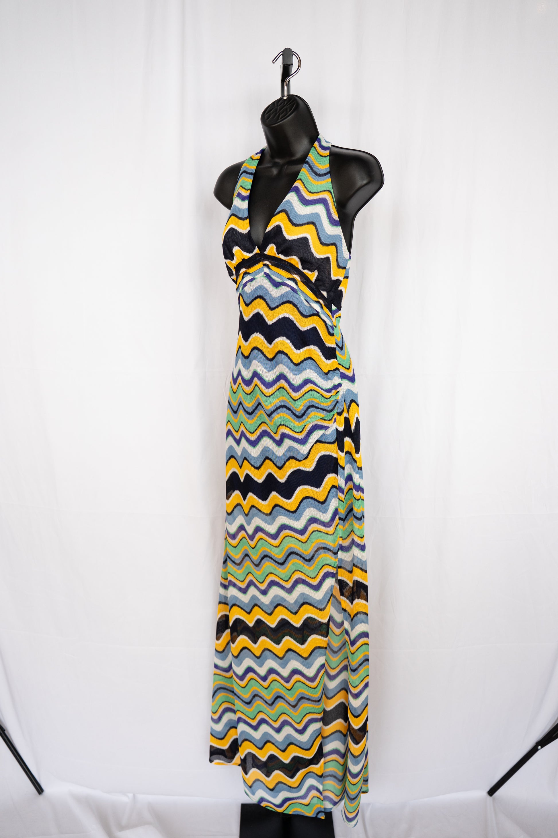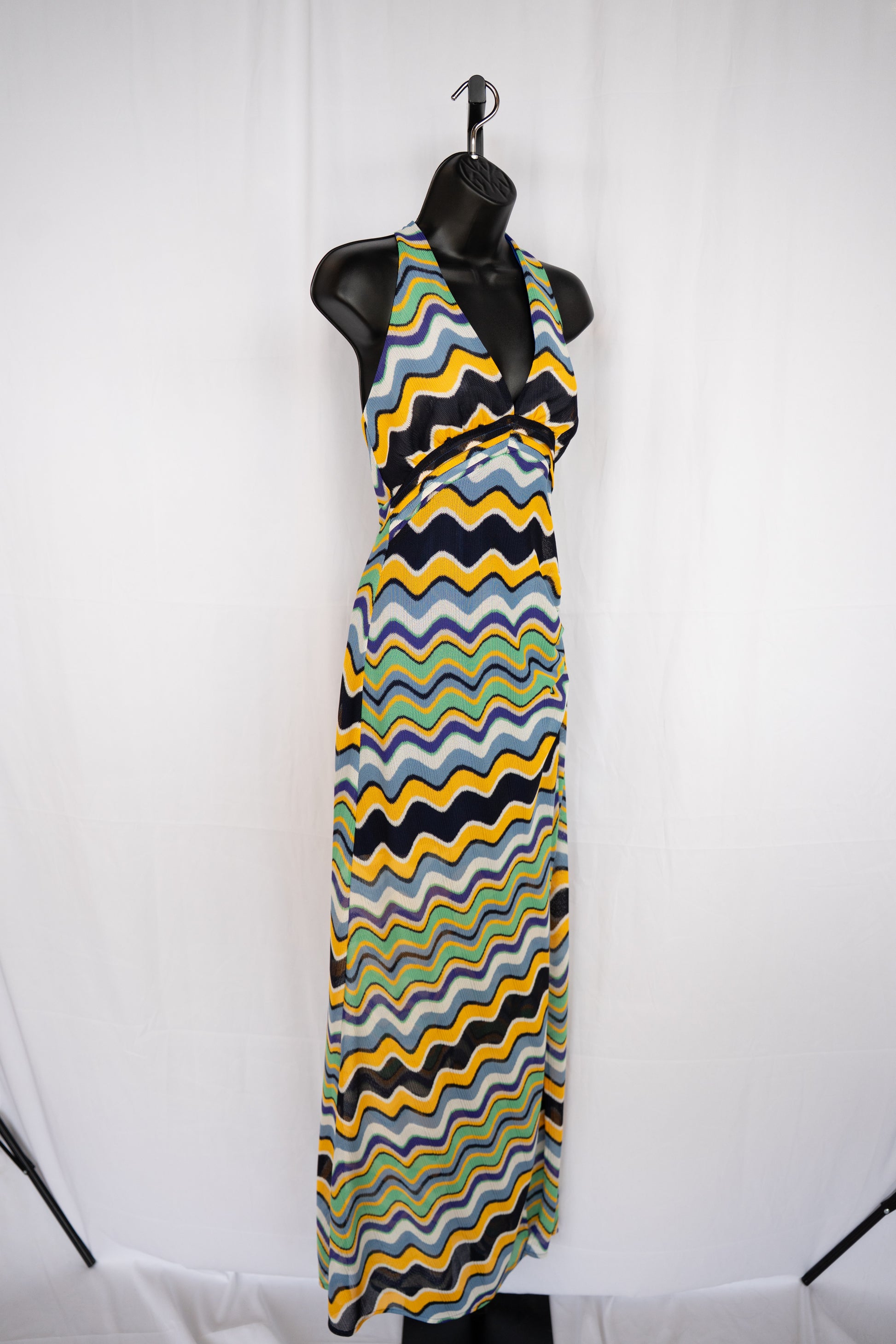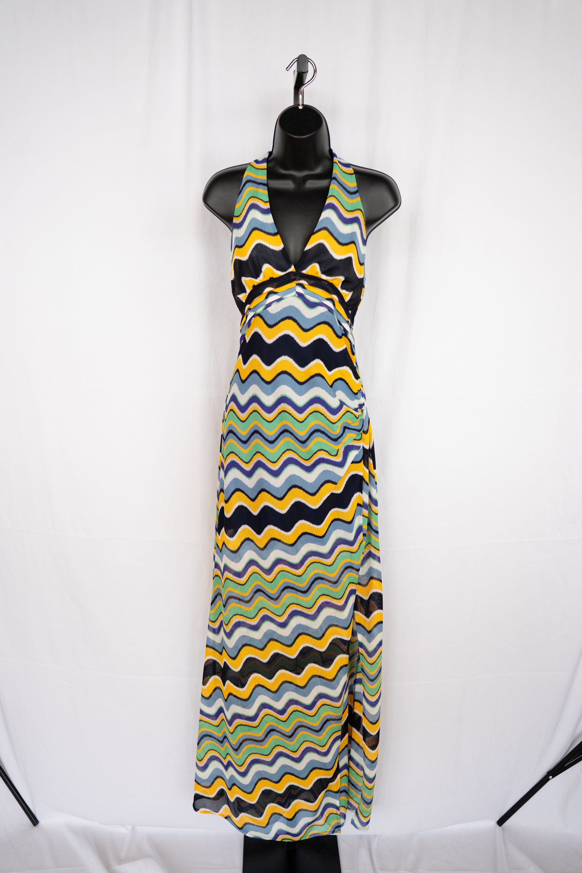 Ramy Brook Blue Green Yellow Wave Print Halter-Neck Maxi Dress NWT