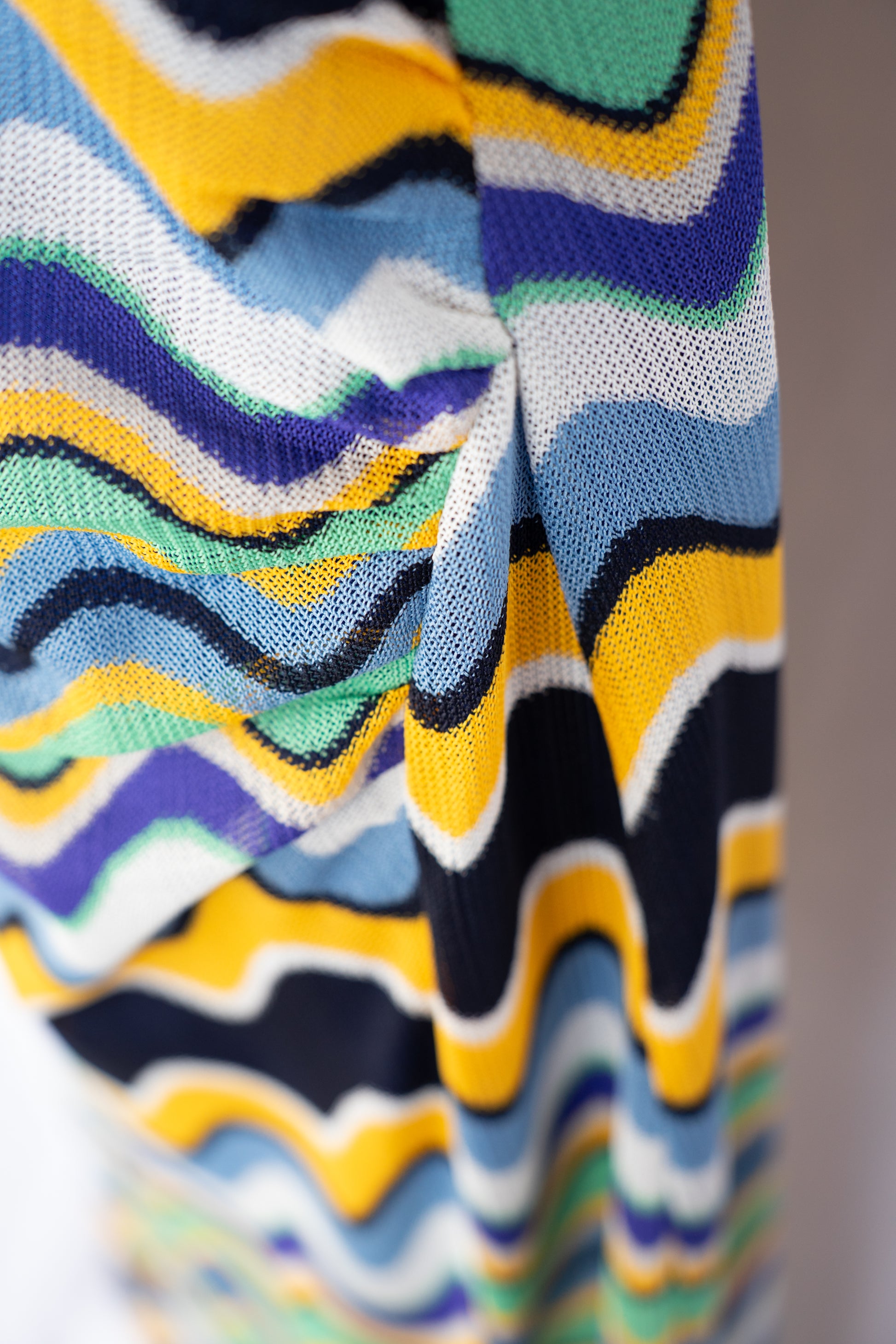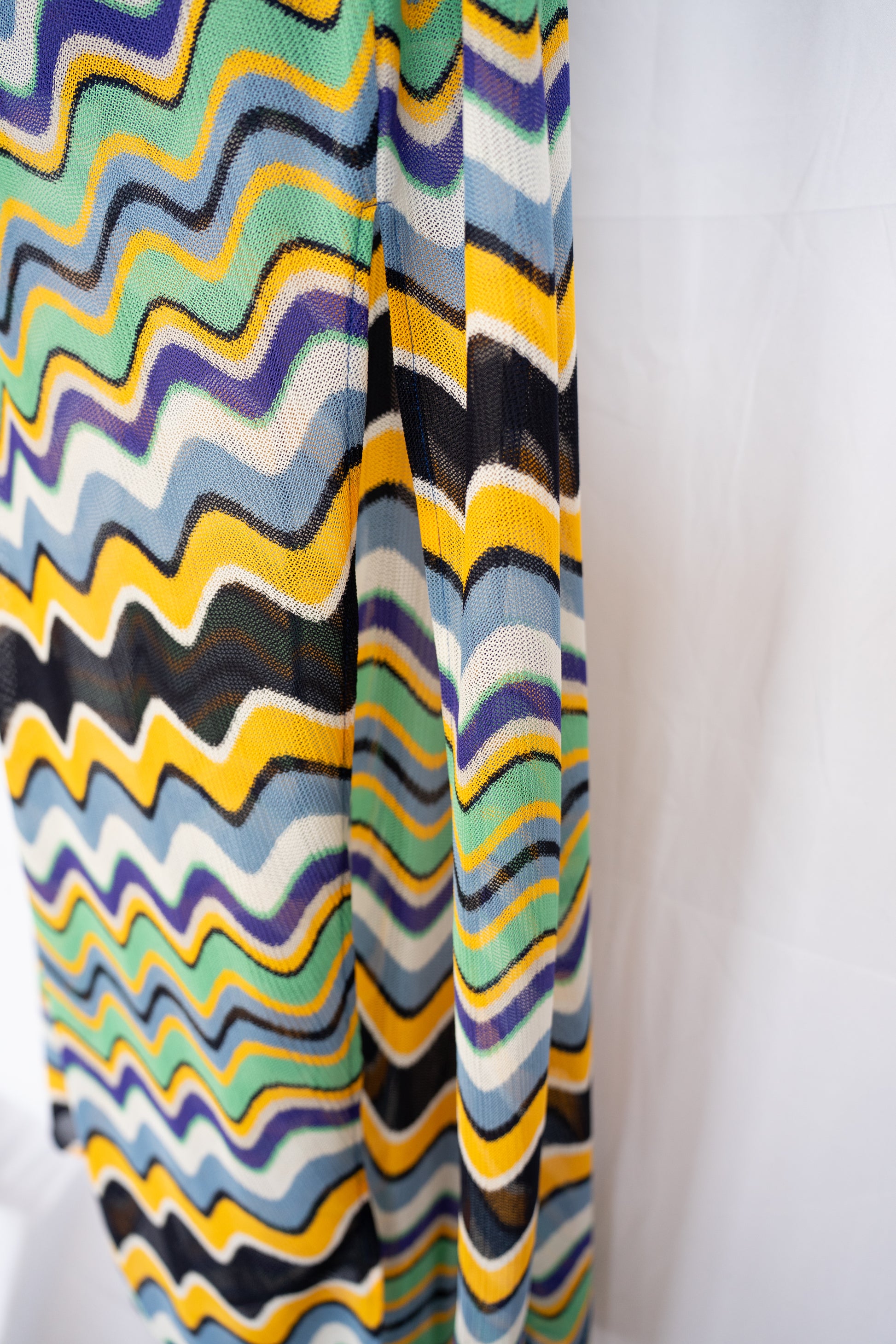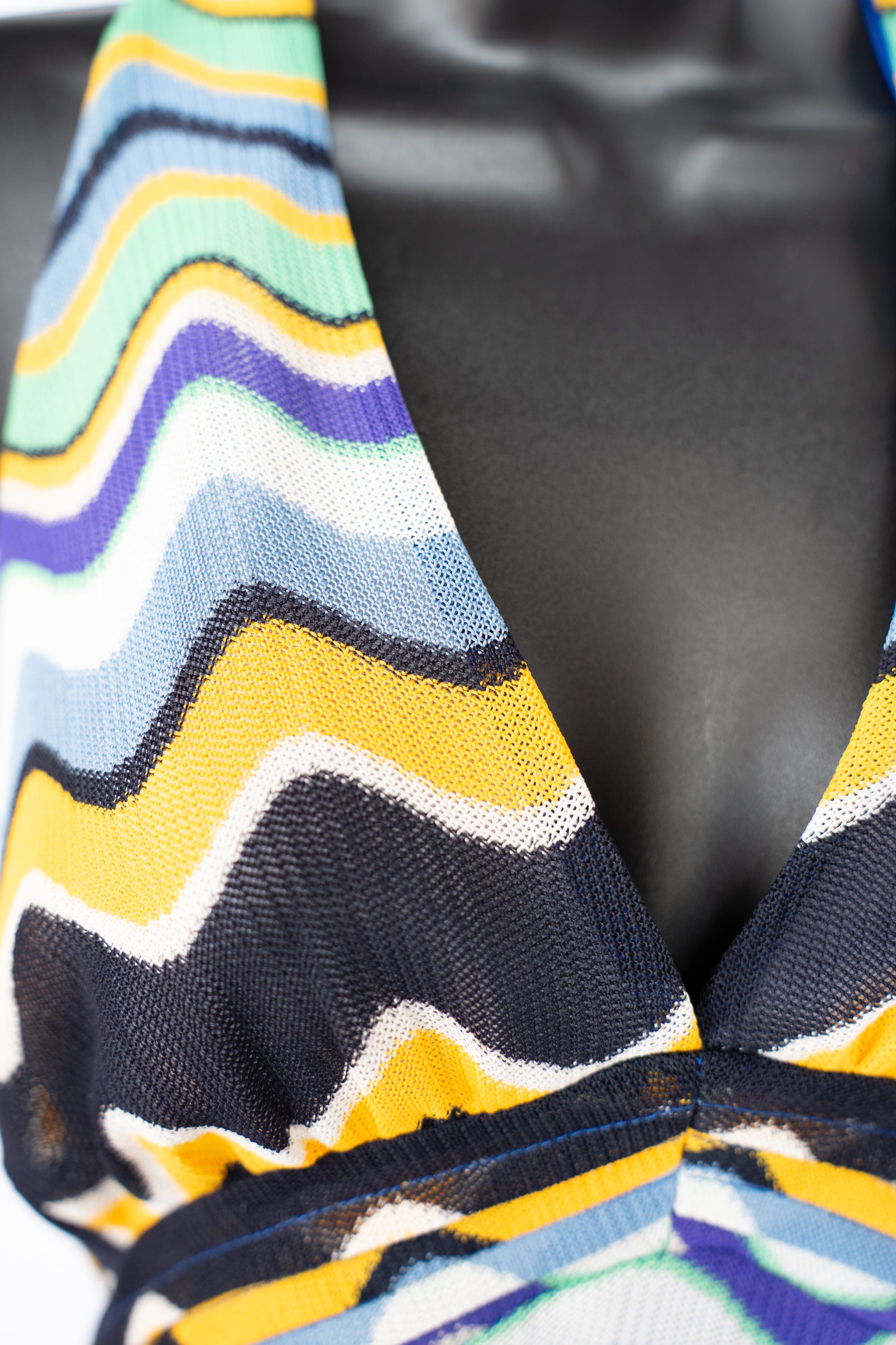 Ramy Brook Blue Green Yellow Wave Print Halter-Neck Maxi Dress NWT