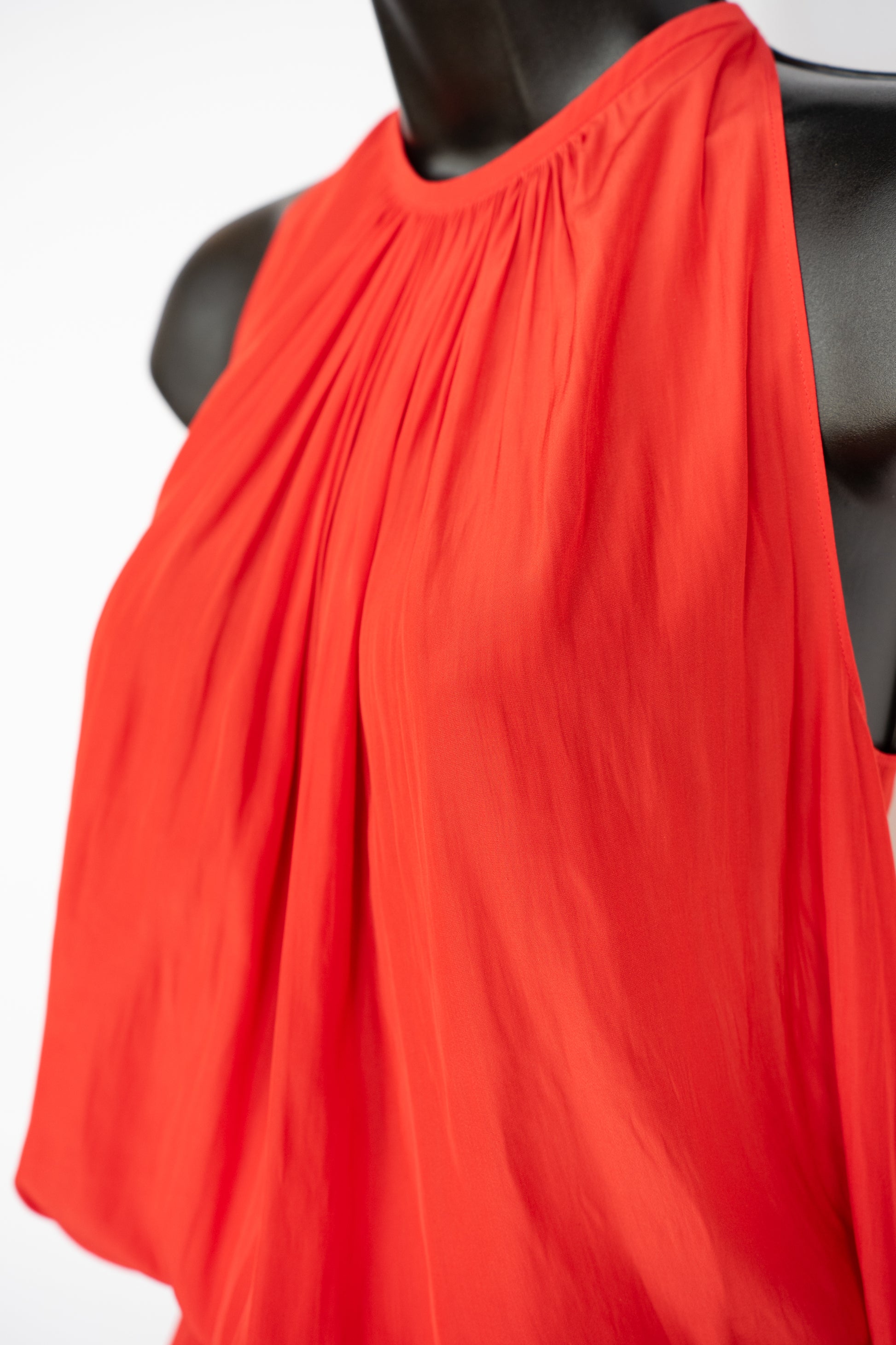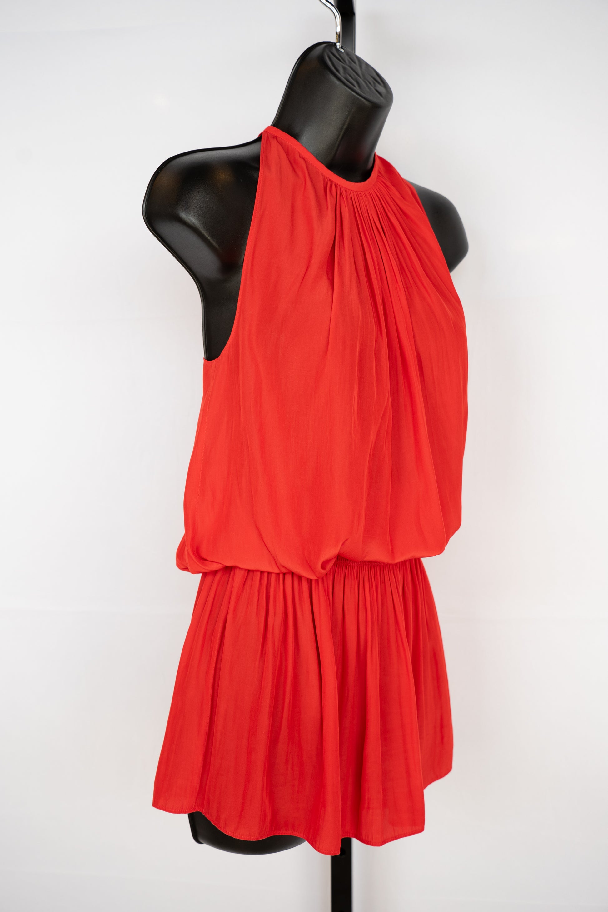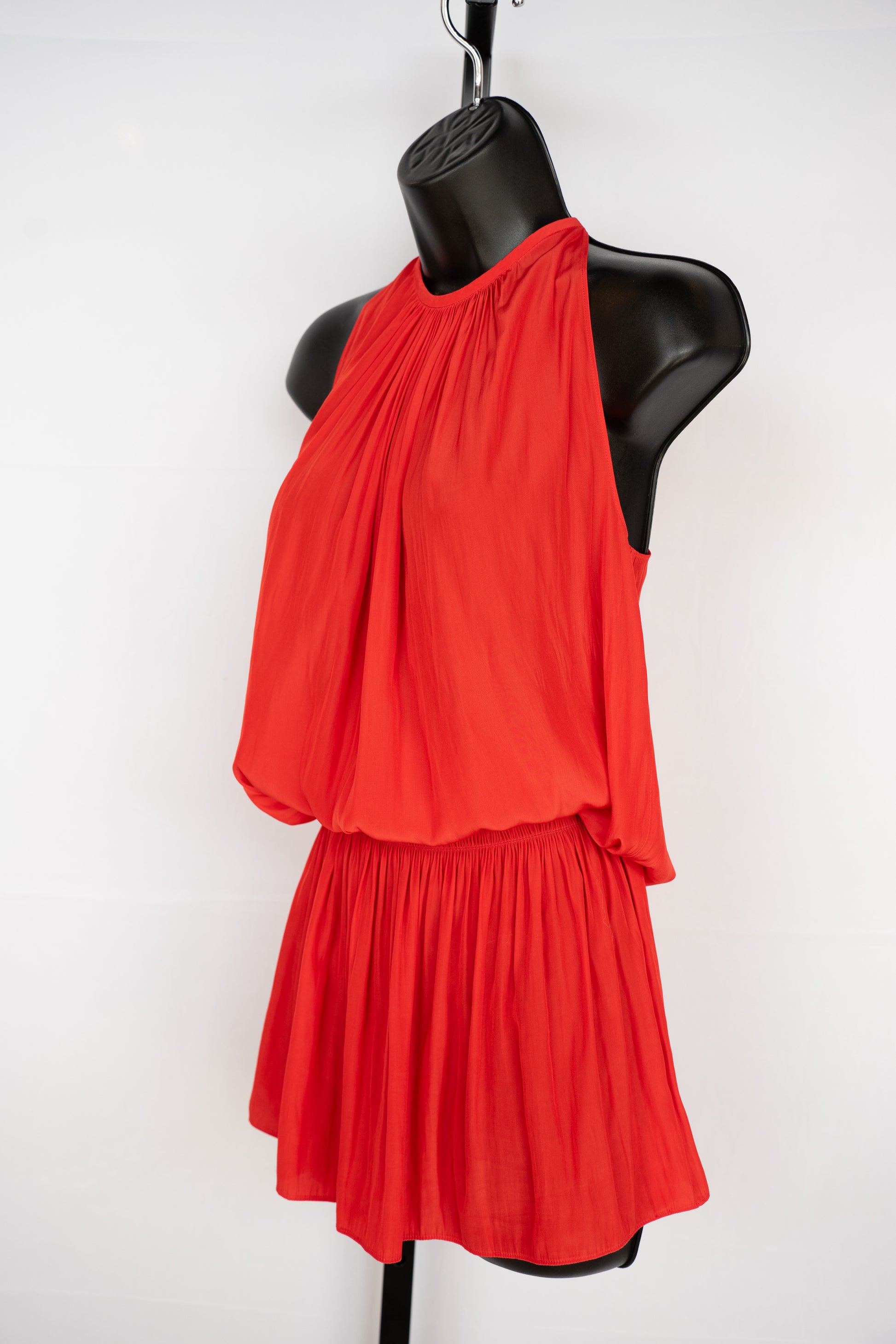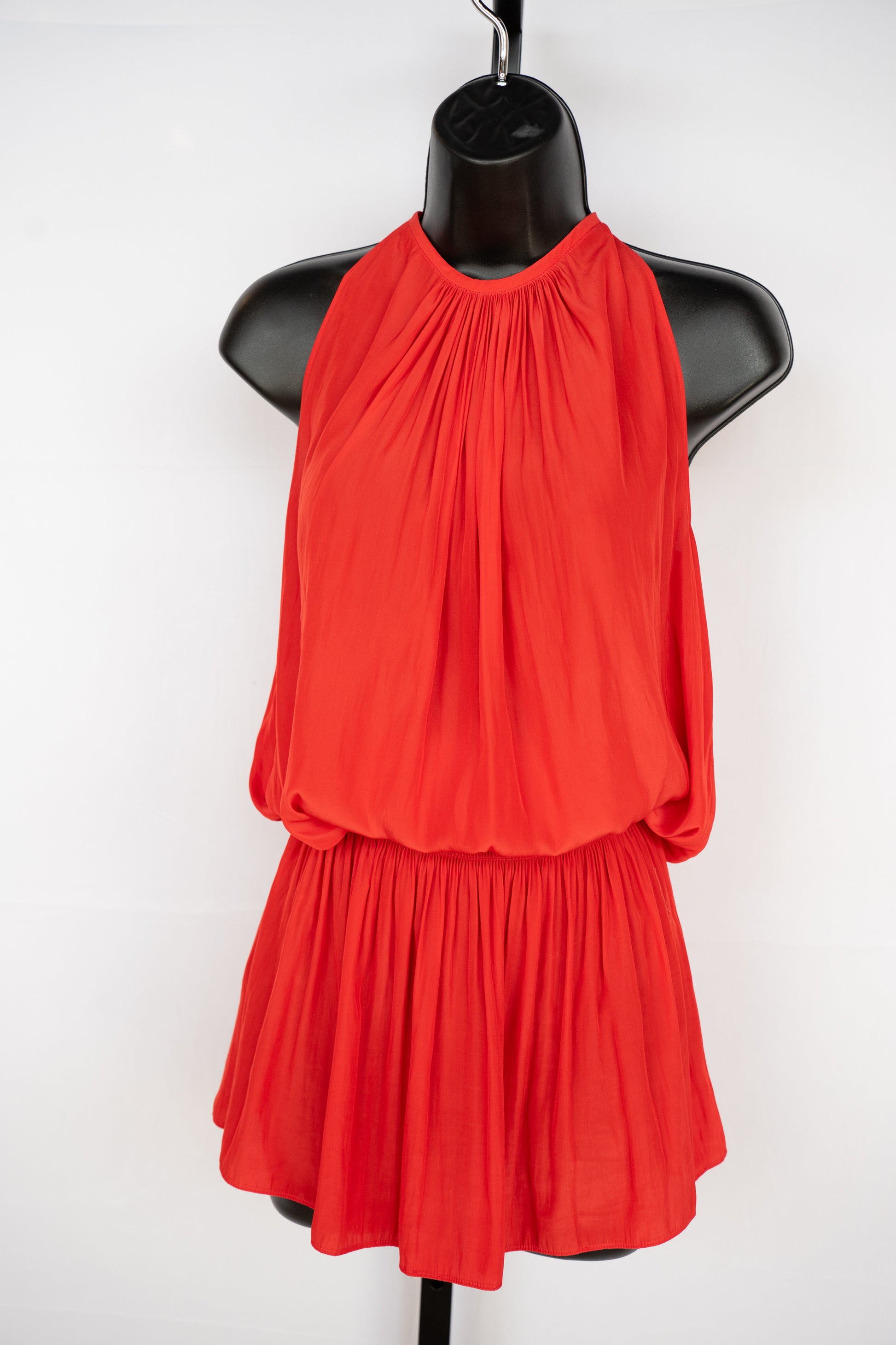 Ramy Brook Silk Red Halter-Neck Sleeveless Smocked Waist Mini Dress