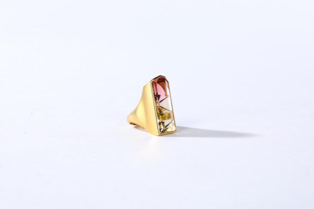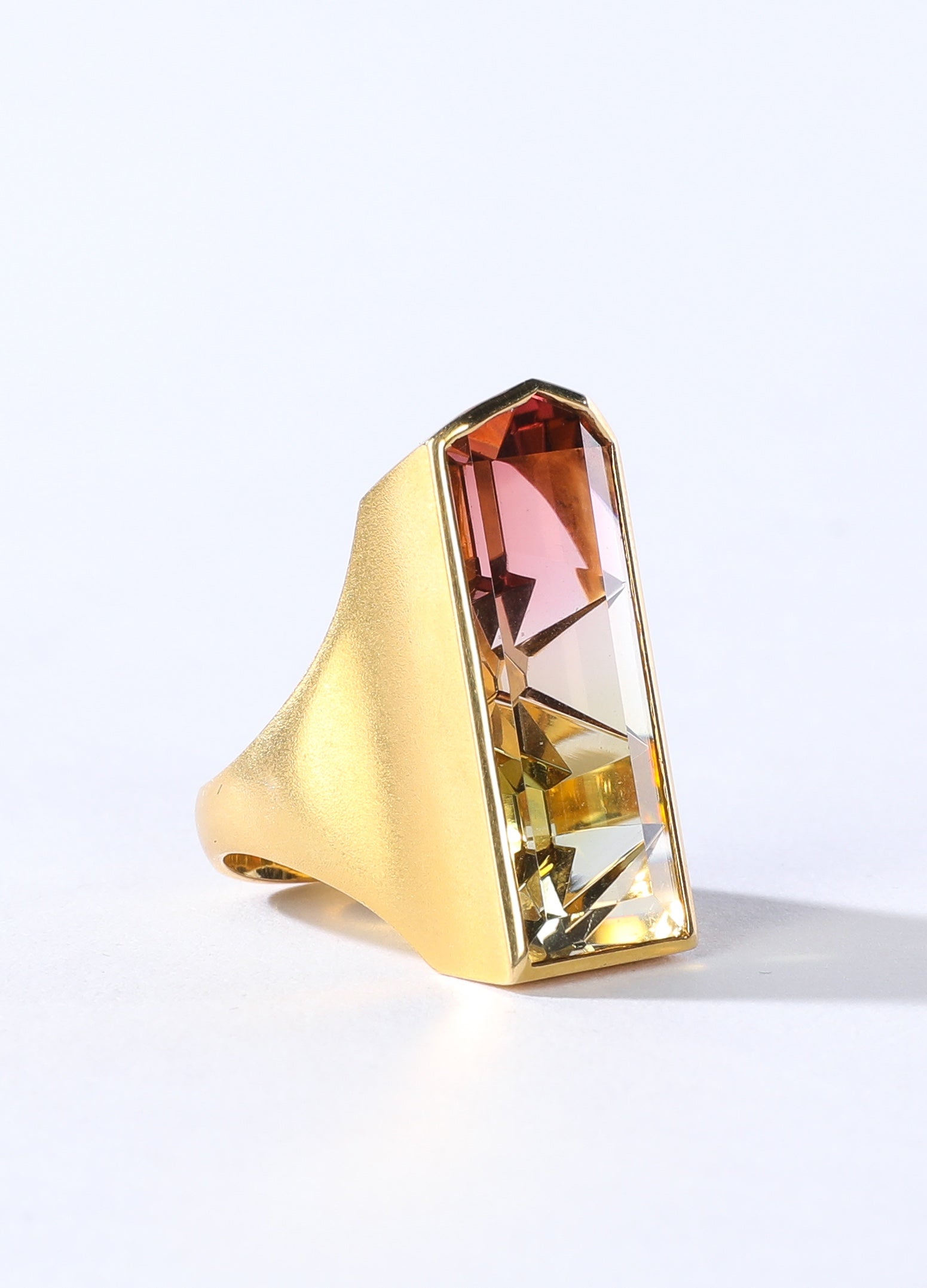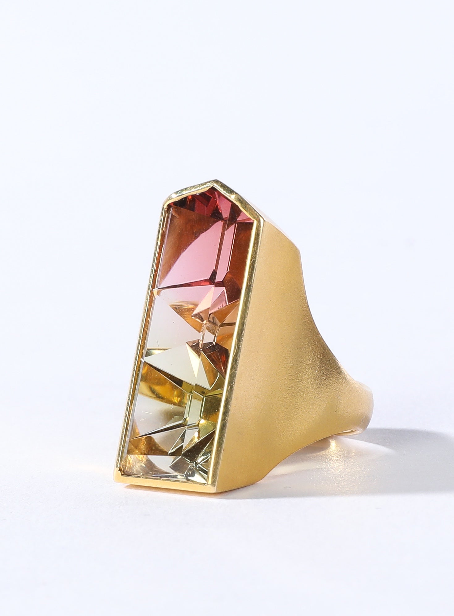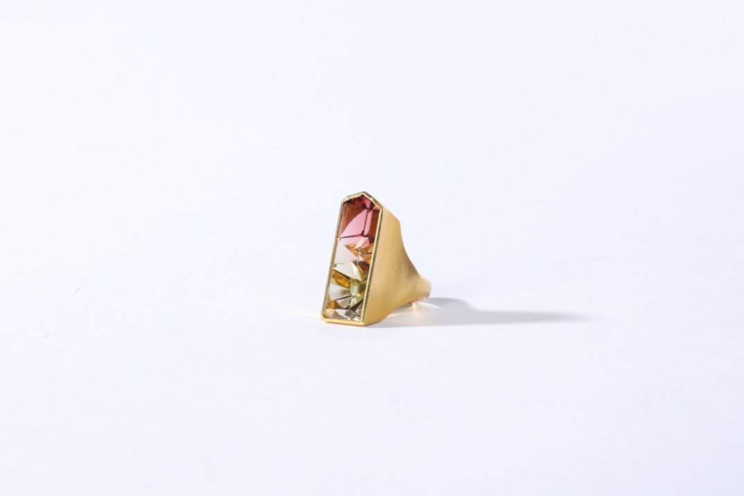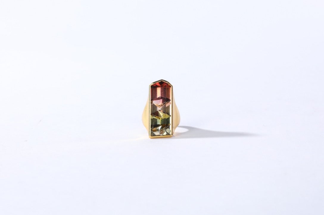 Watermelon Tourmaline 18K Gold Rectangular Ring