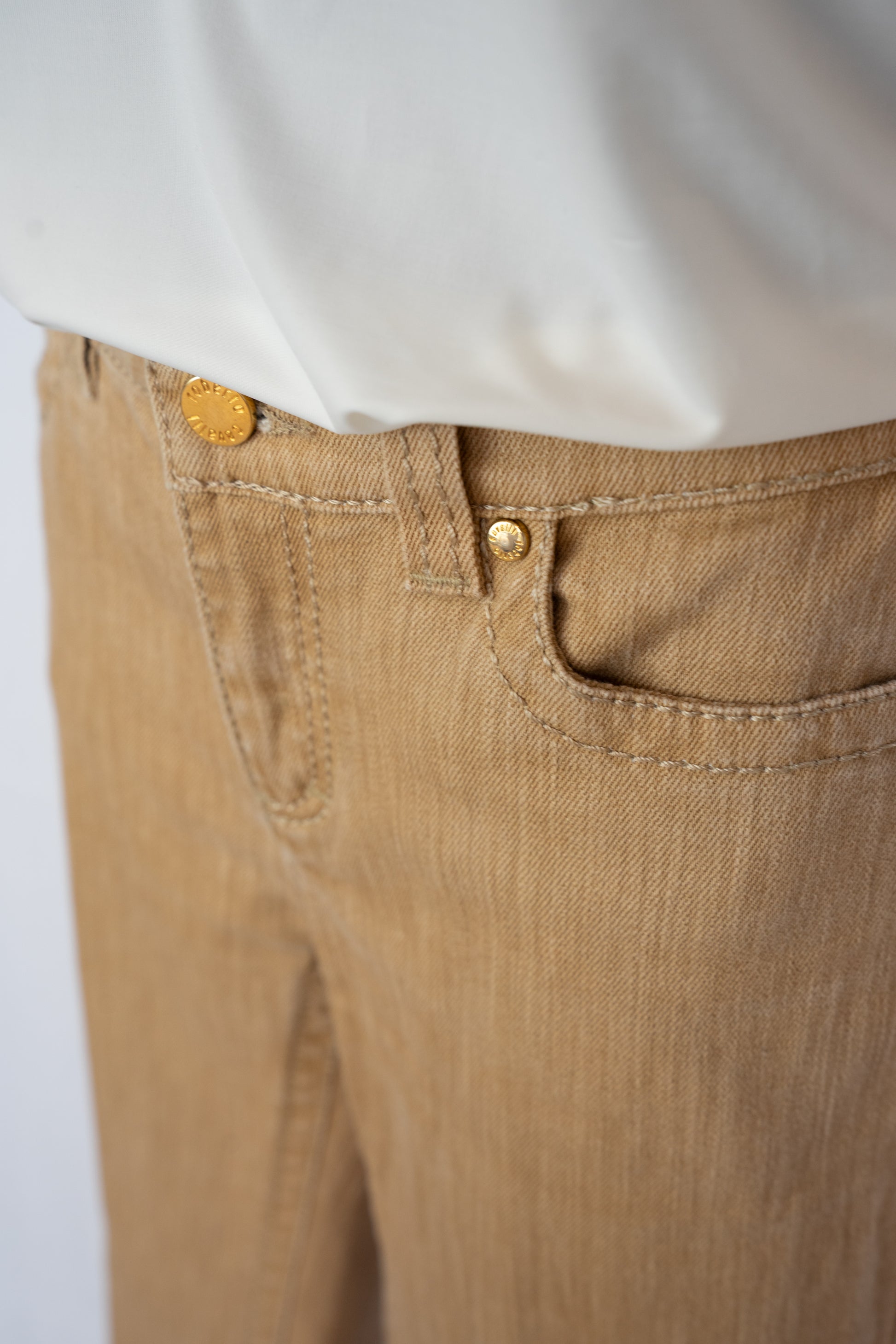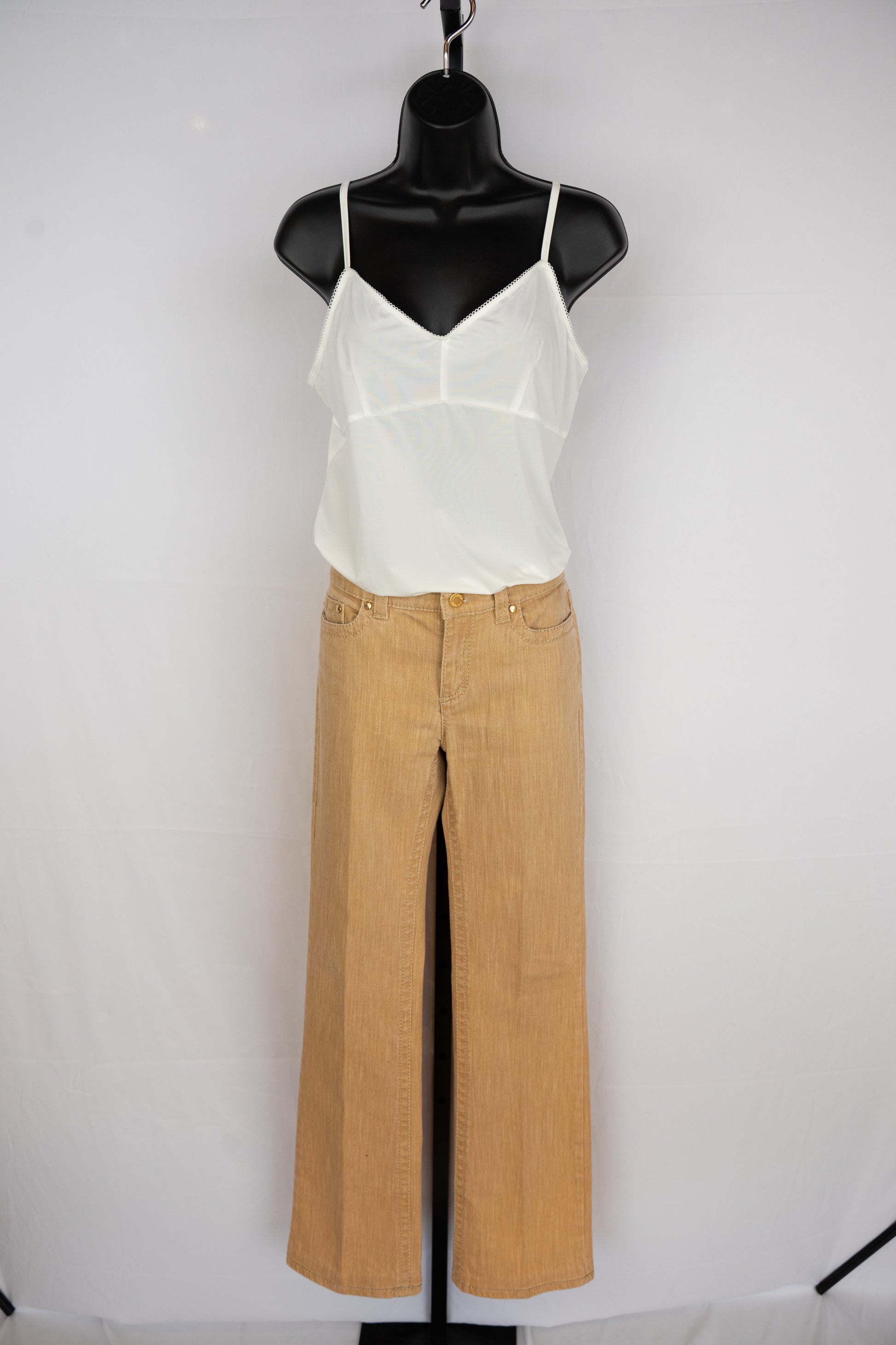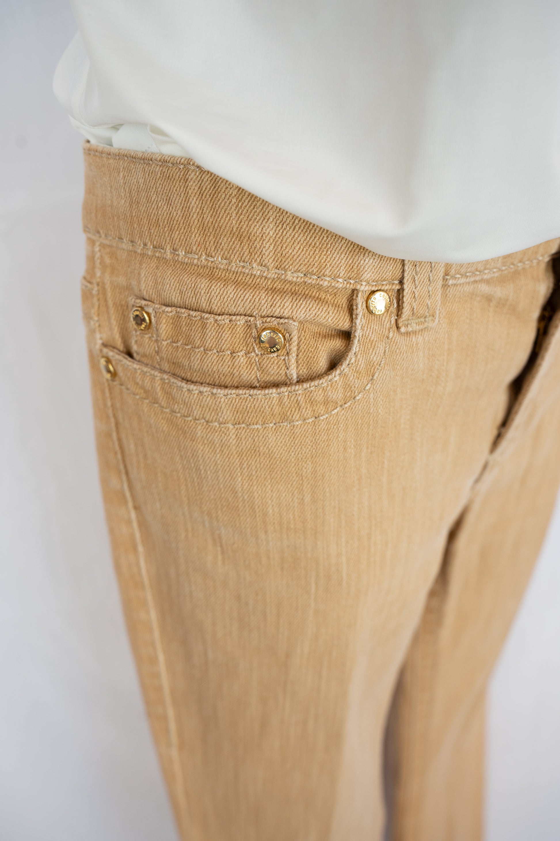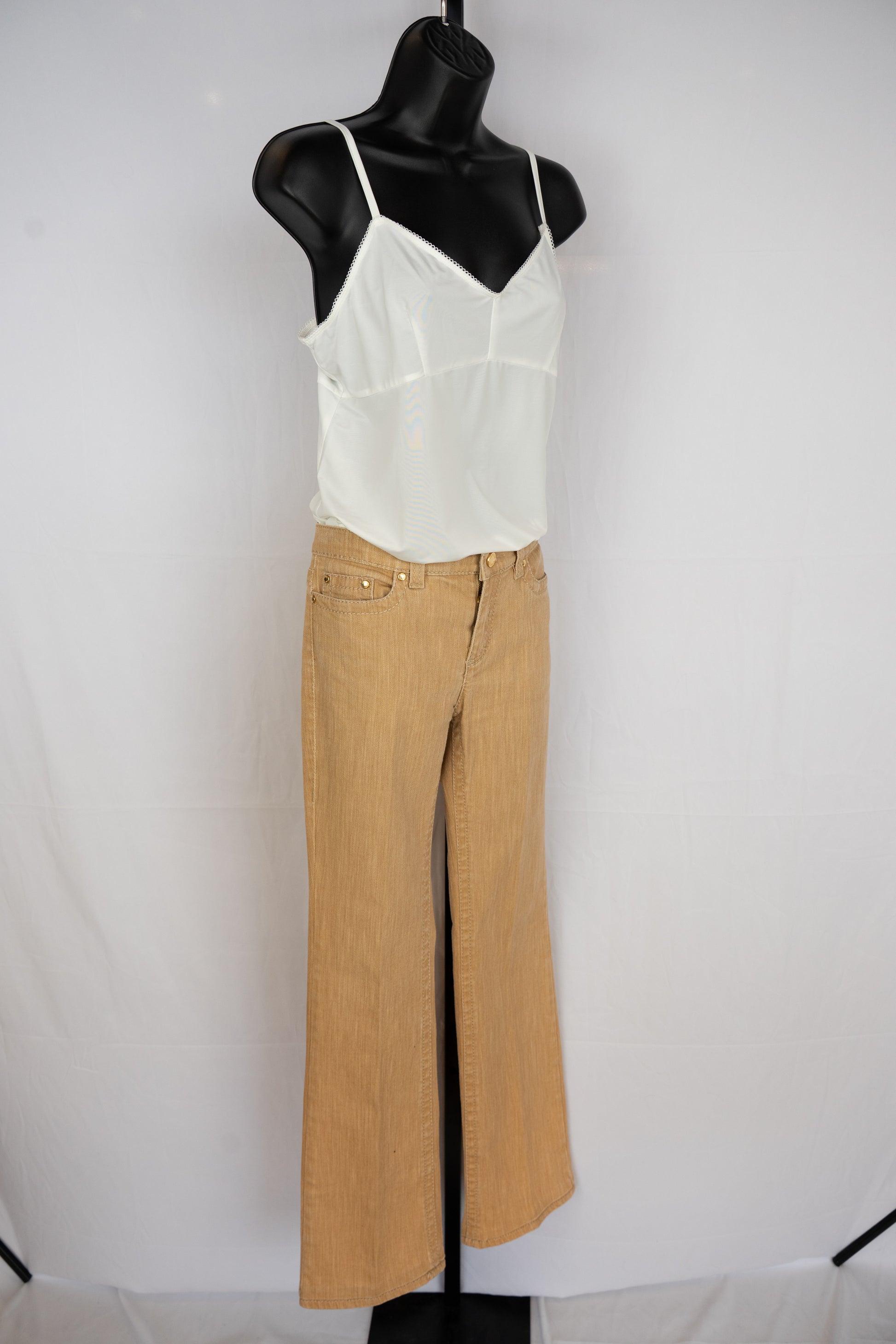 Roberto Cavalli Tan Low-rise Bootcut Pants w/ Gold Rhinestone Plate on Pocket