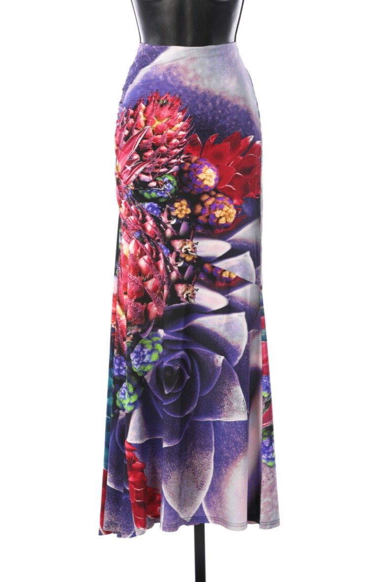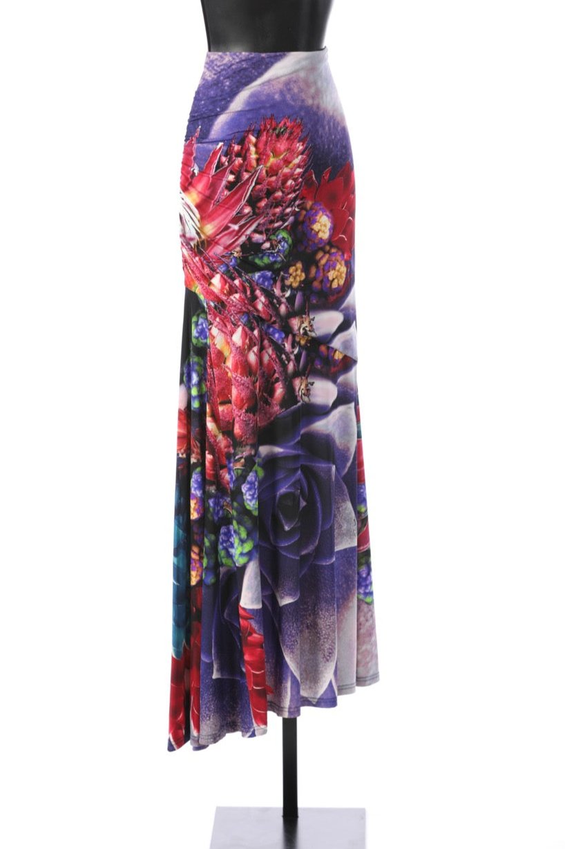 Roberto Cavalli Purple Blue & Red Floral Maxi Skirt (Part of Set)