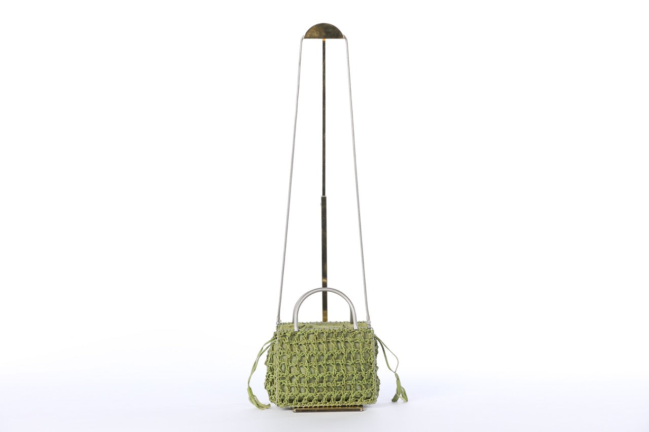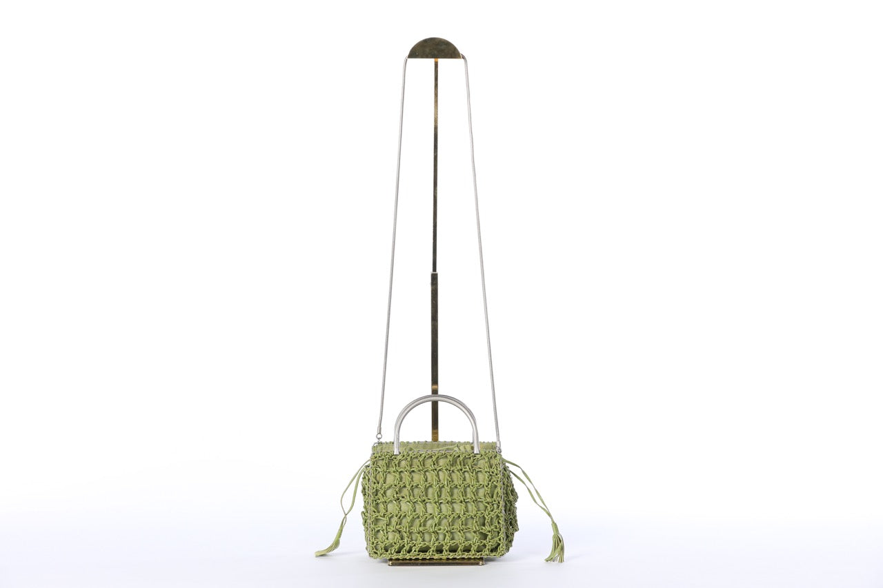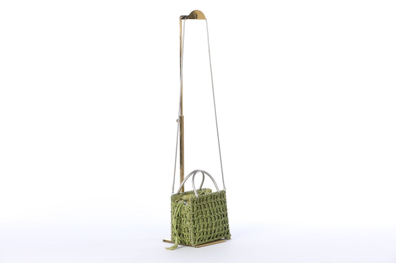 Salvatore Ferragamo Green Woven Leather and Canvas Mini Square Crossbody Tote w Metal Top Handle